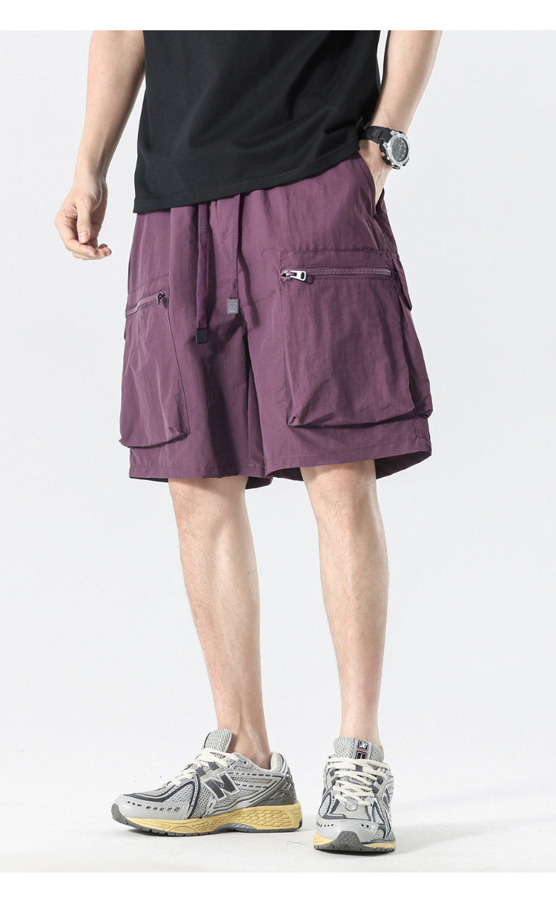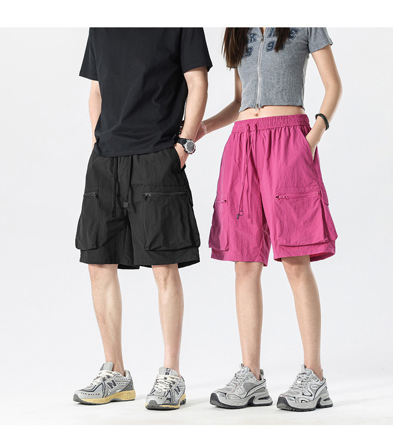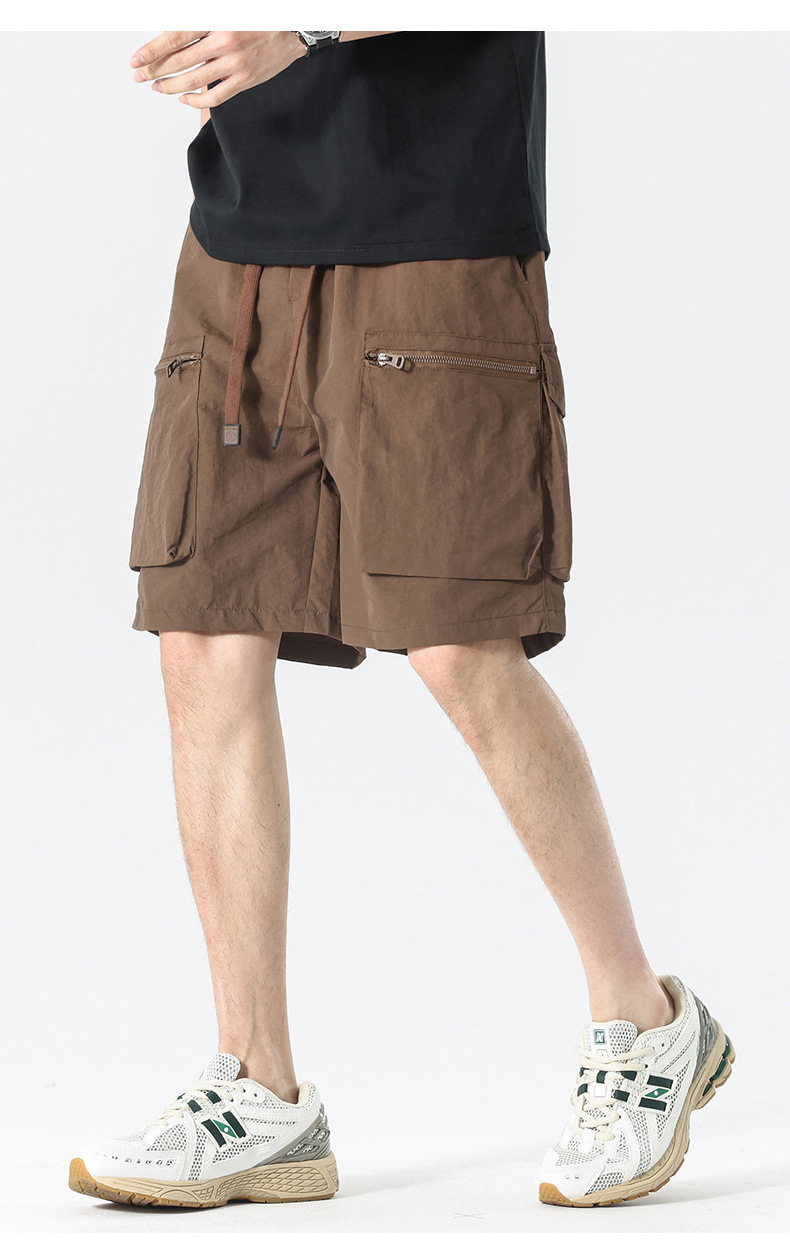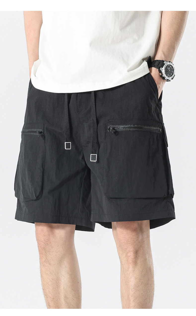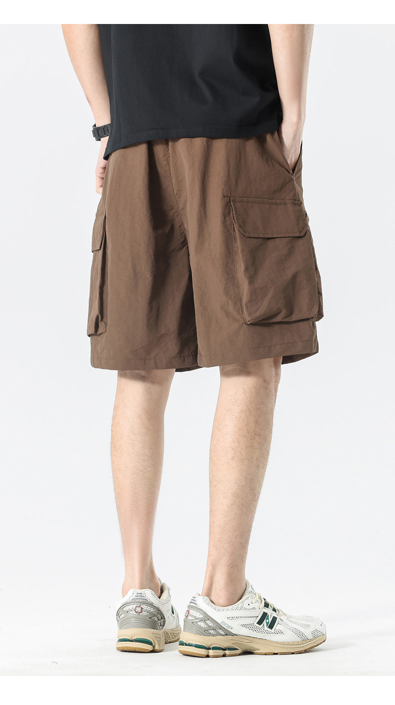 일본 유행 브랜드 대형 포켓 작업복 반바지 남성 여름 유행 플러스 사이즈 느슨한 스트레이트 얇은 캐주얼 바지