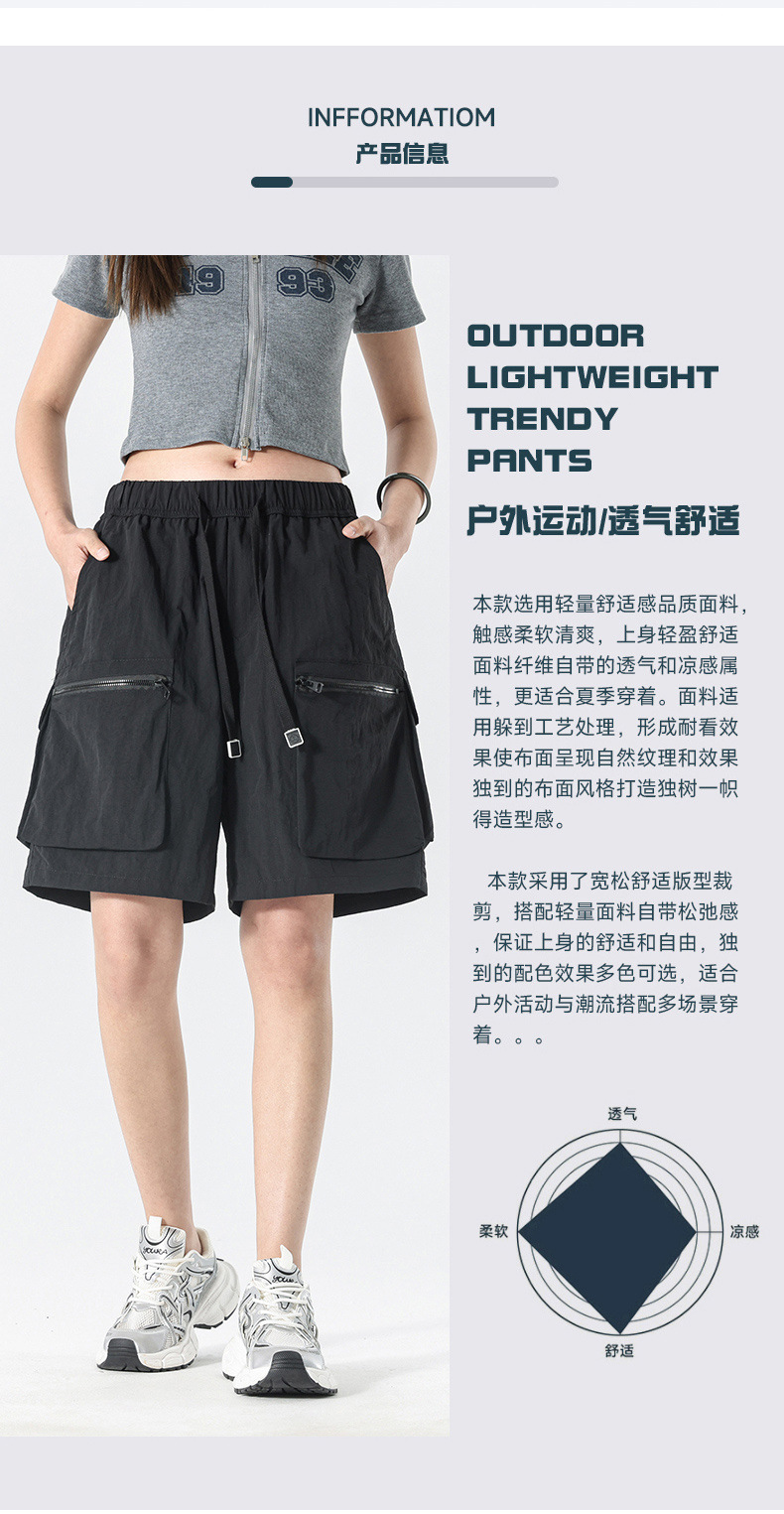 일본 유행 브랜드 대형 포켓 작업복 반바지 남성 여름 유행 플러스 사이즈 느슨한 스트레이트 얇은 캐주얼 바지스토어 가기