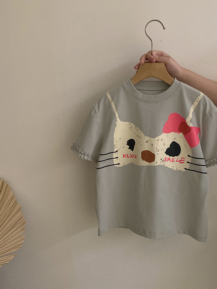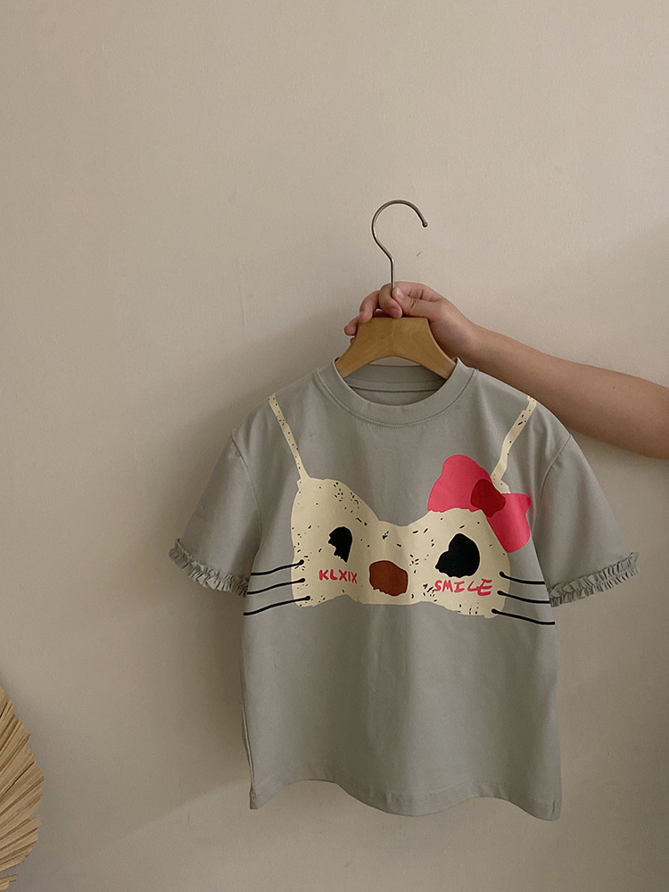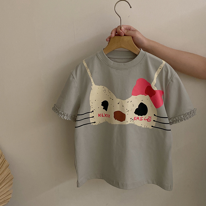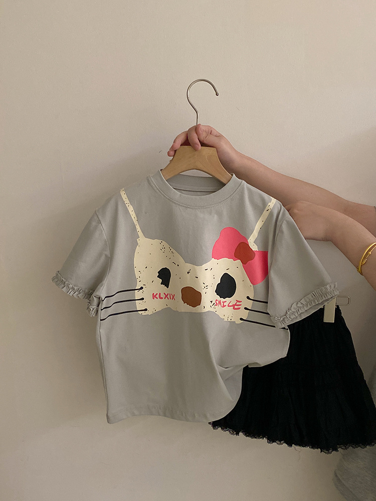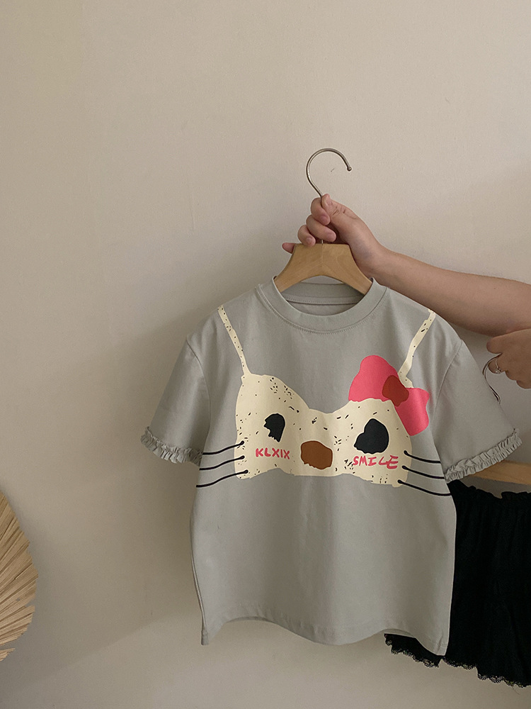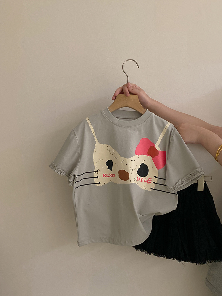 한국 스타일 소녀 디자인 센스 만화 야옹 미 반팔 티셔츠 2025 여름 새로운 올 매치 레이스 스커트 투피스 세트스토어 가기
