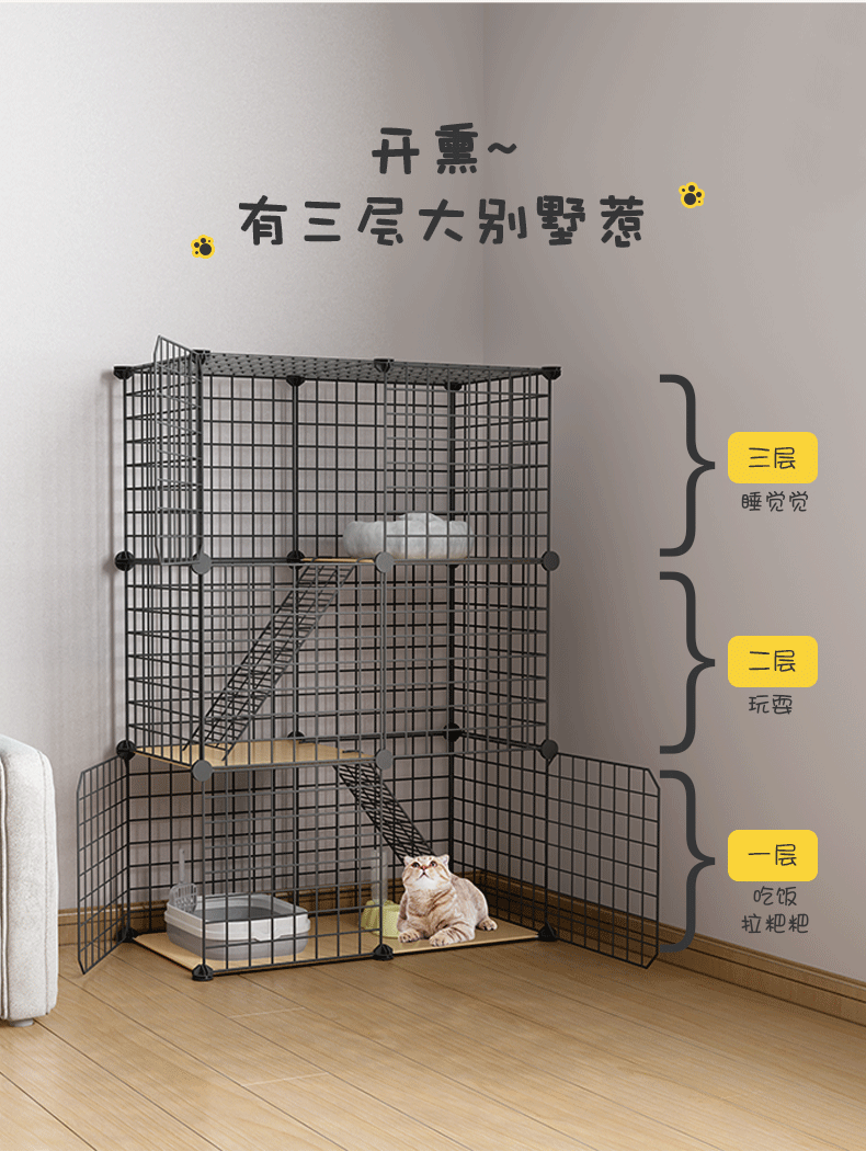 고양이 케이지 하우스, 가정용 실내 토끼 빌라, 대형 공간, 3층 애완동물 화장실, 개집스토어 가기