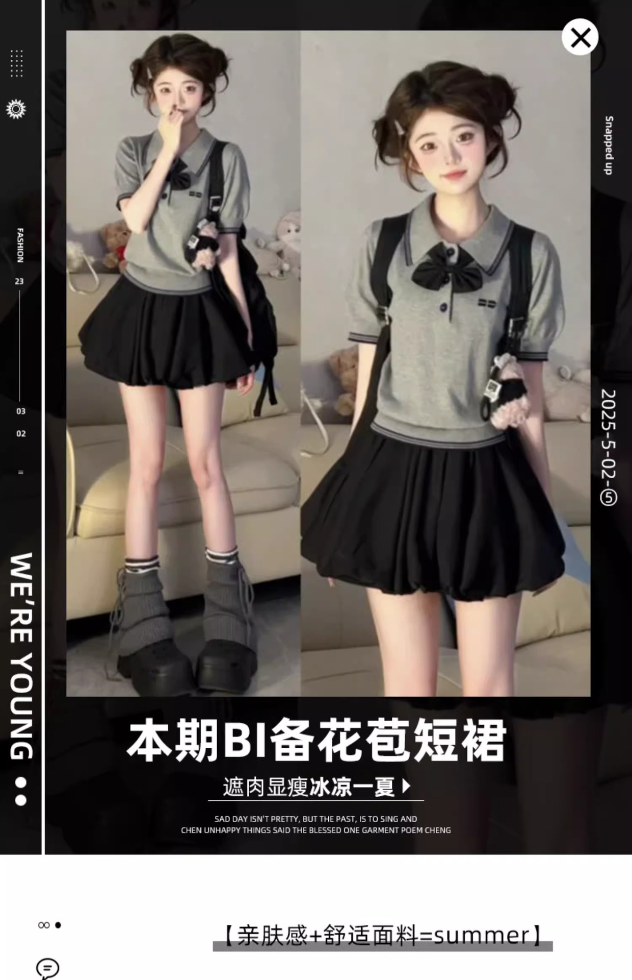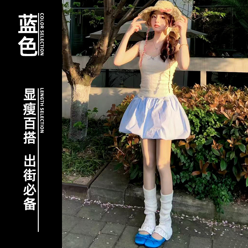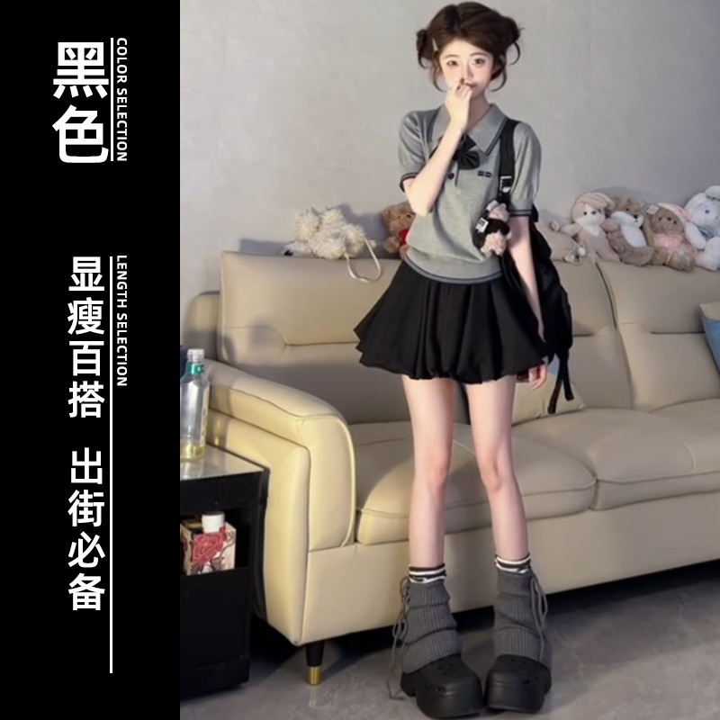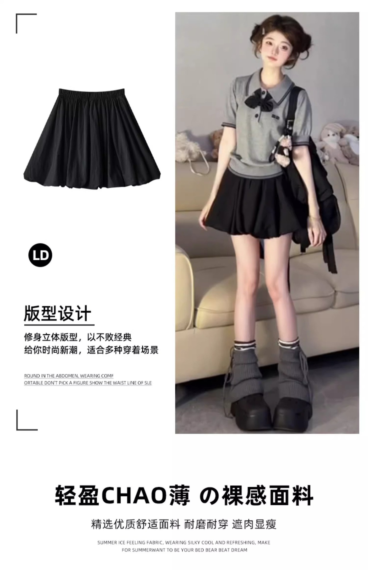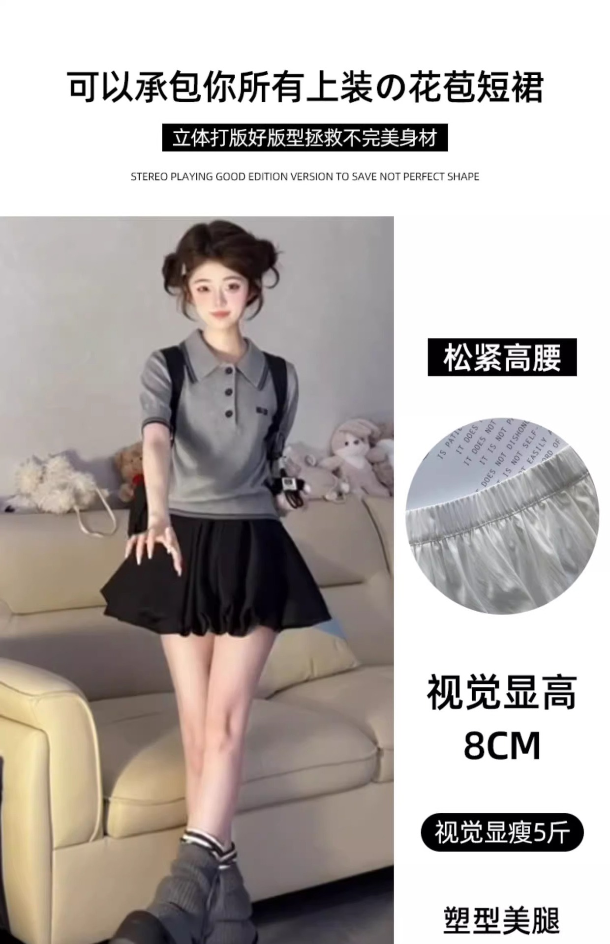 검은 꽃 버드 짧은 치마 여성 여름 2025 새로운 높은 허리 슬림 A-라인 투투 스커트 프랑스 아이스 실크 랜턴 컬롯스토어 가기