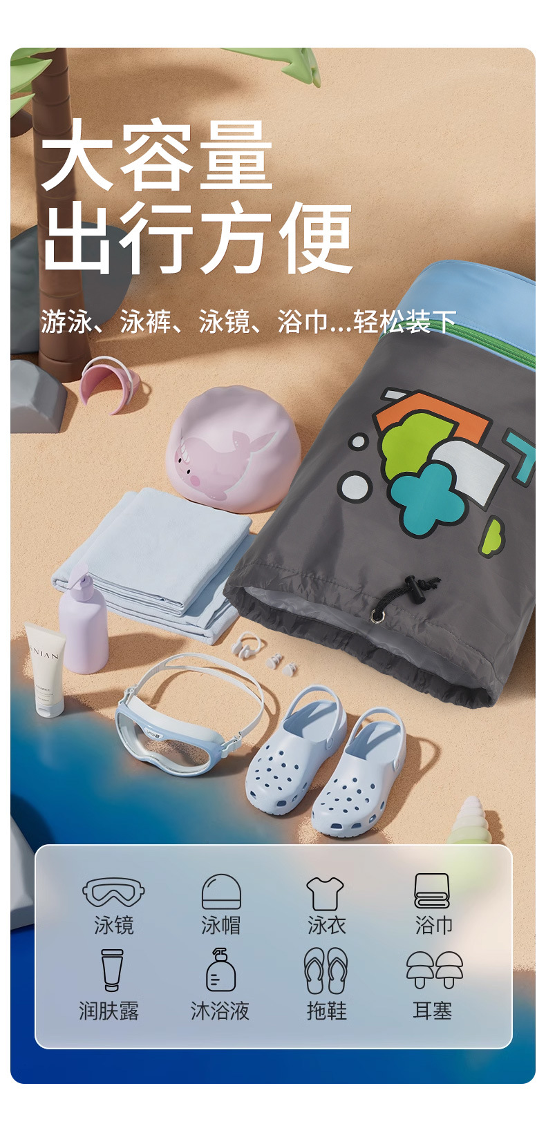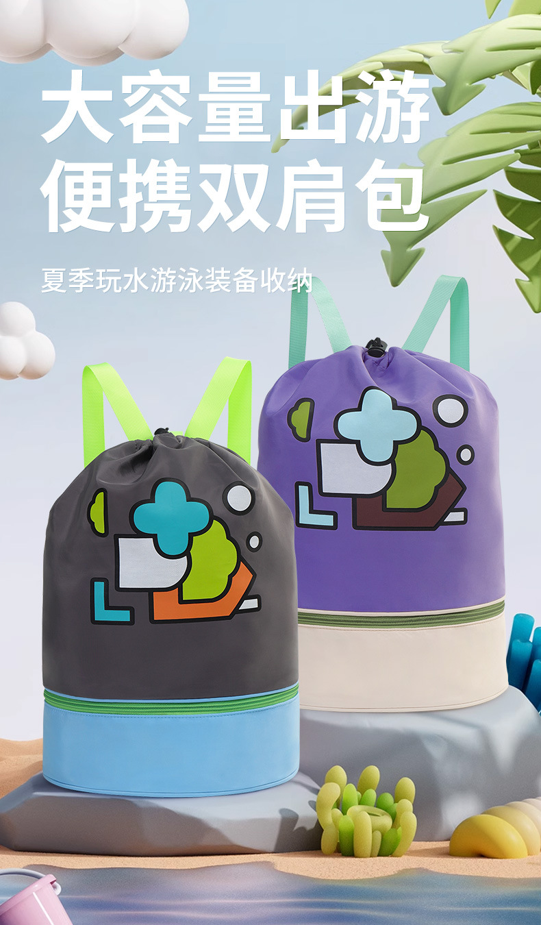 어린이 수영 가방, 신발 수납 공간이 있는 습식 및 건식 분리, 방수 배낭, 수영 수납 가방, 비치 밀봉 세면 용품 가방