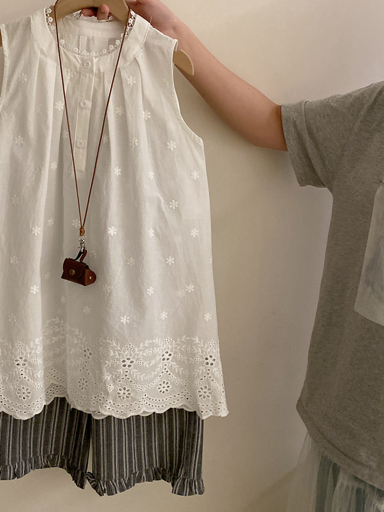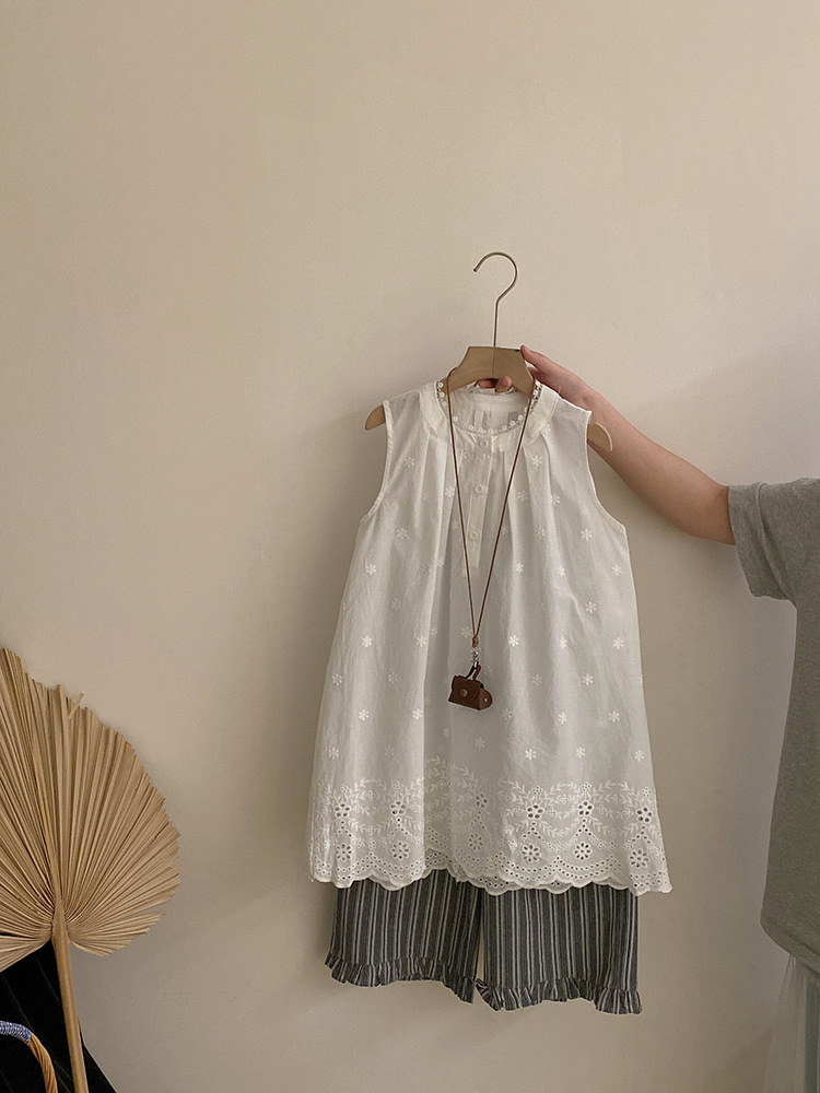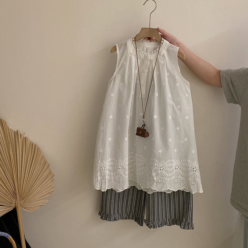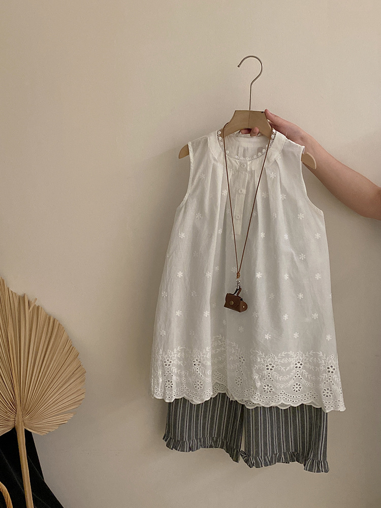 여자 한국 스타일 여름 민소매 레이스 원피스 2025 모든 경기 서양 스타일 스트라이프 느슨한 넓은 다리 바지 투피스 세트 트렌디스토어 가기