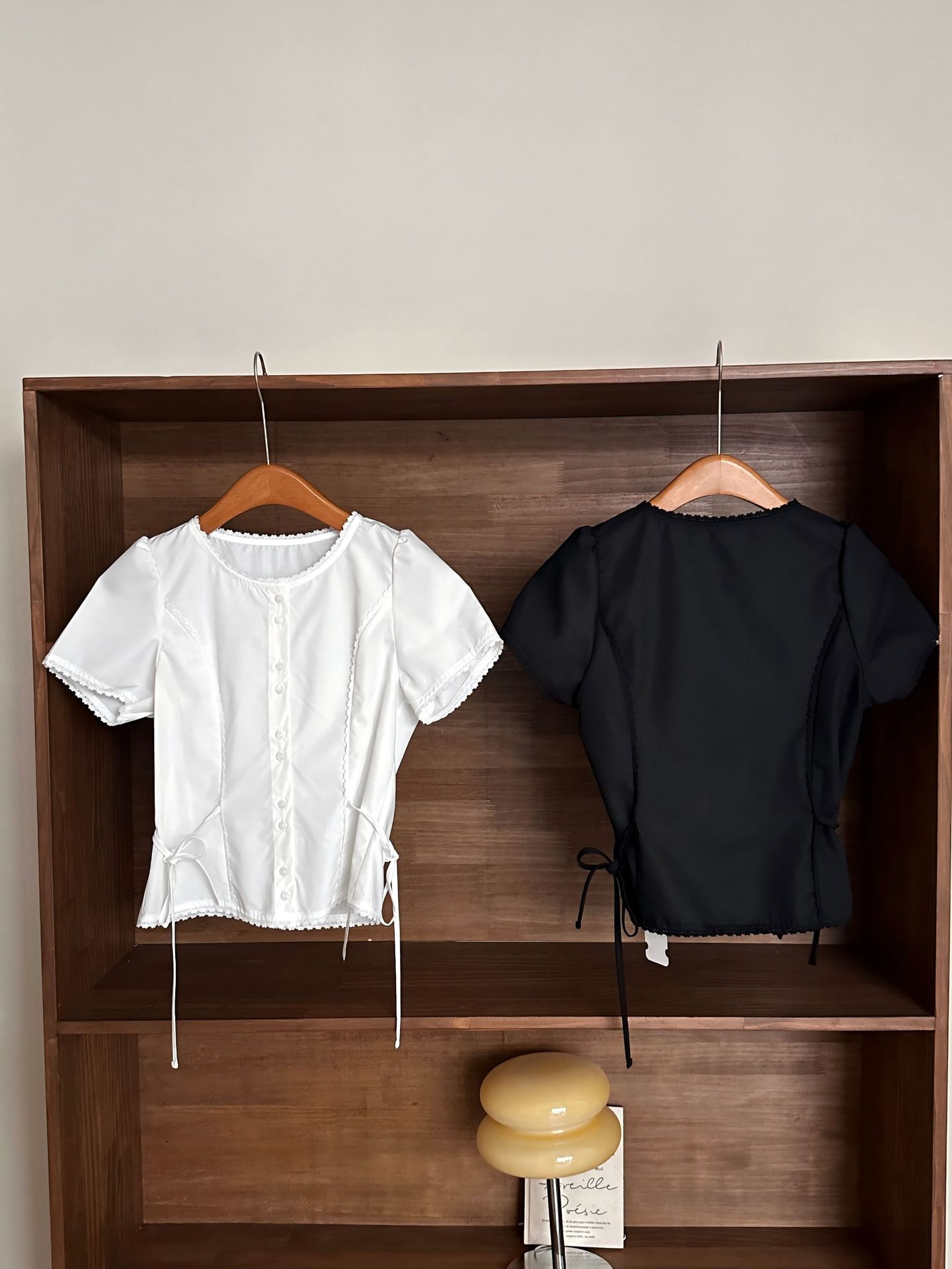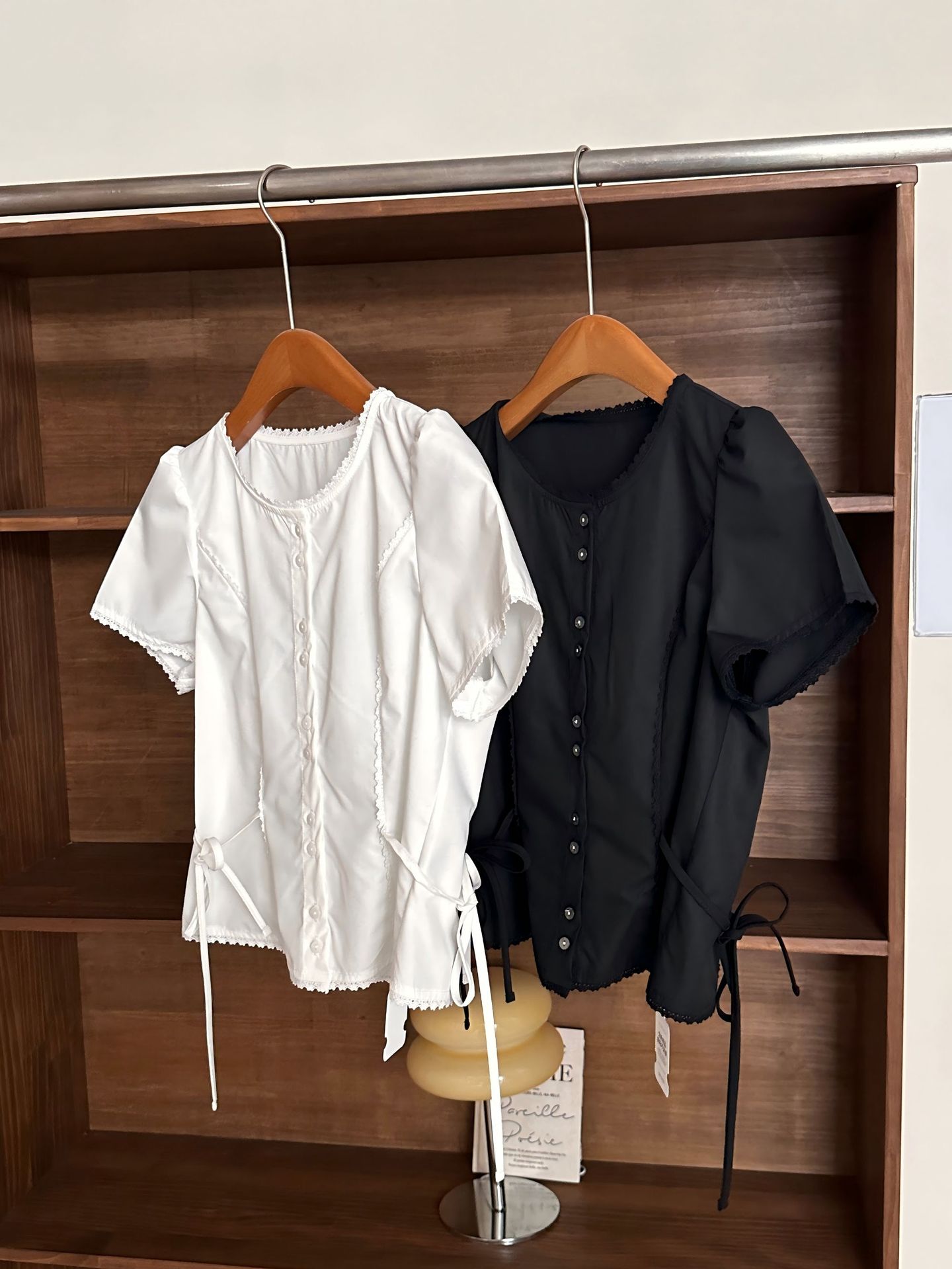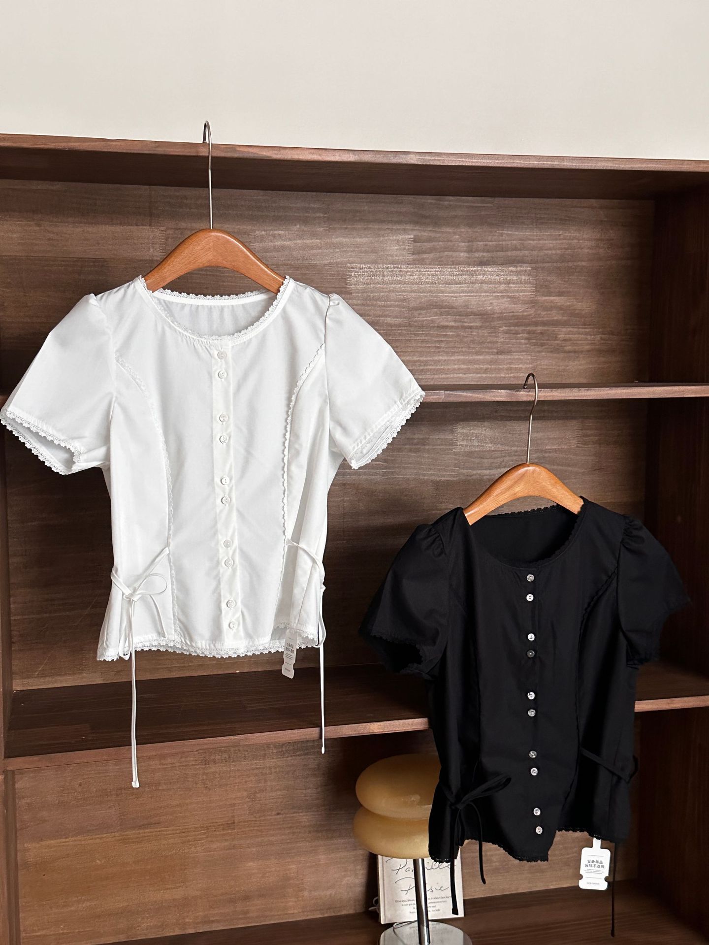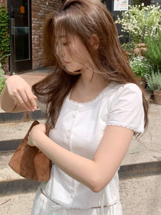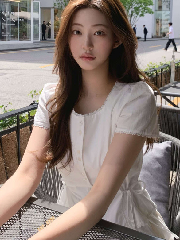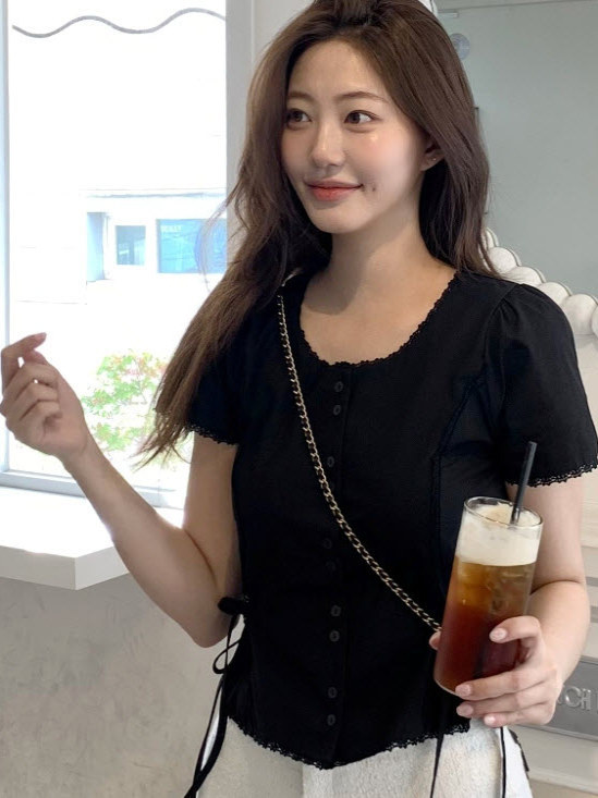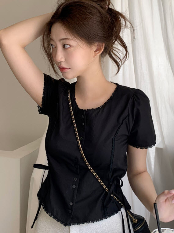 Now H 솔리드 컬러 레이스 반팔 허리 여성 셔츠 2025 여름 한국 스타일 동대문 디자인 탑스토어 가기