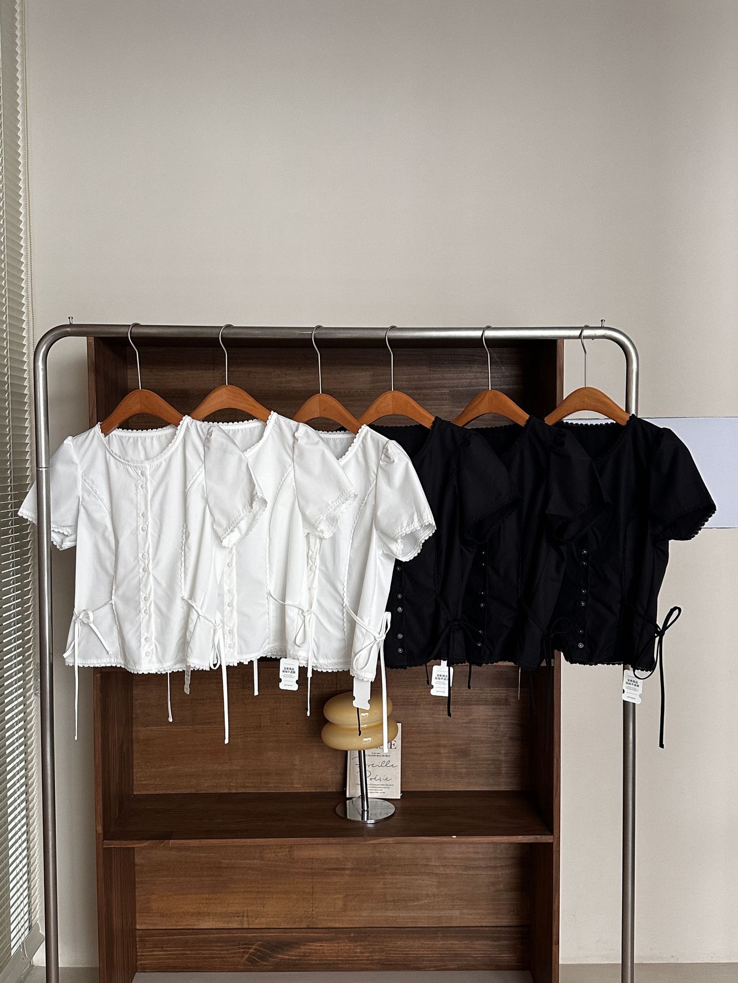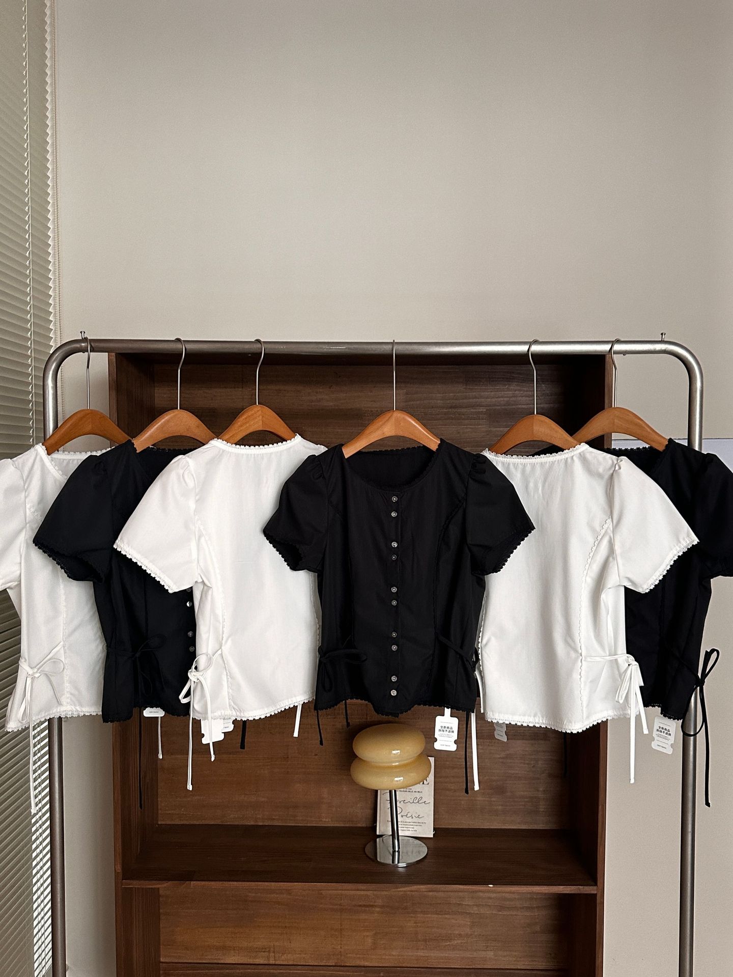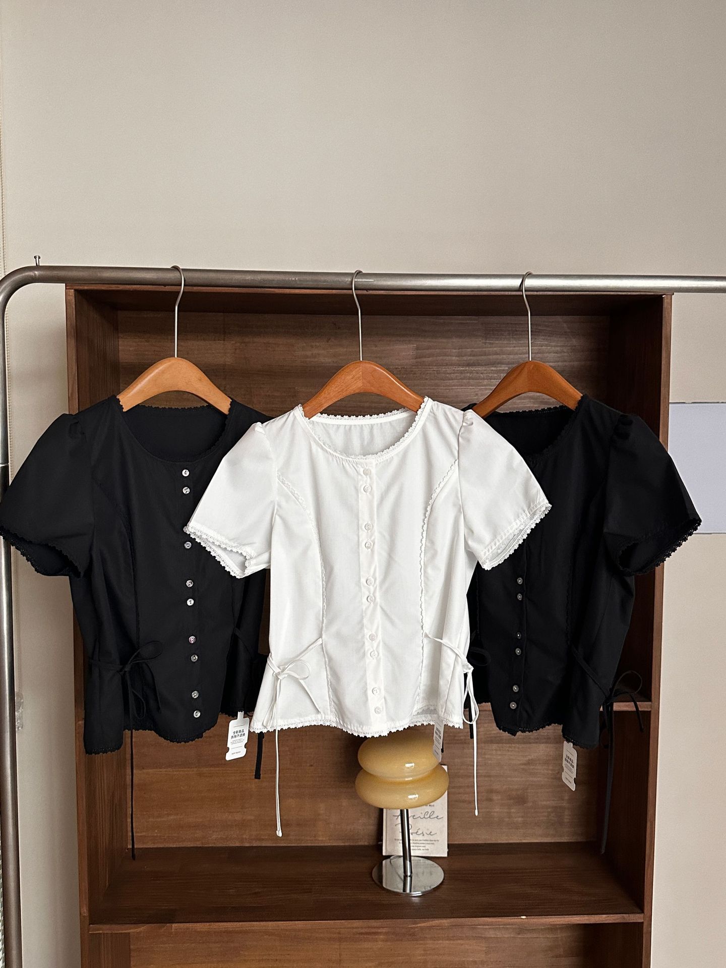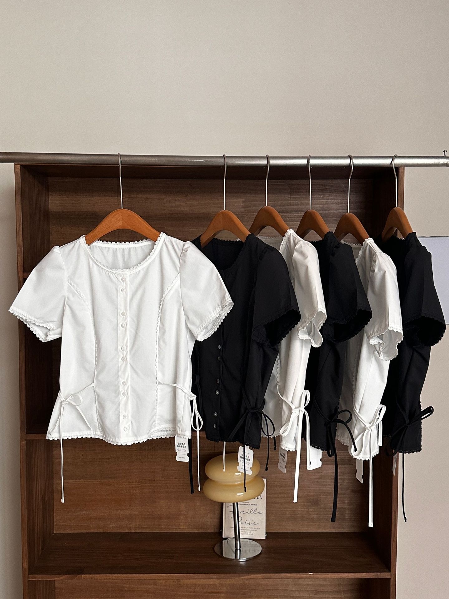 Now H 솔리드 컬러 레이스 반팔 허리 여성 셔츠 2025 여름 한국 스타일 동대문 디자인 탑스토어 가기