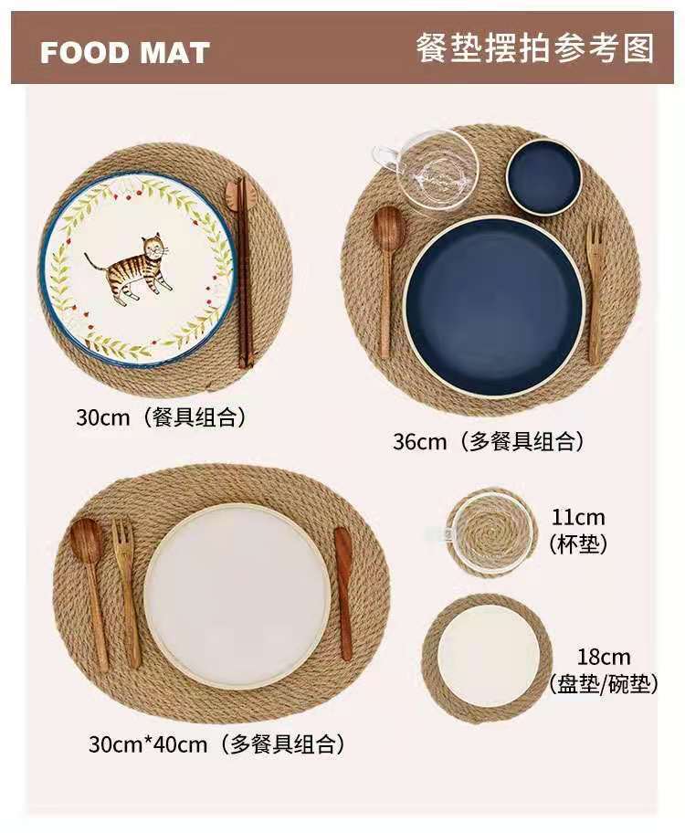 북유럽 린넨 땋은 플레이스 매트, 밀짚 컵 받침, 일본식 면 및 린넨 그릇 매트, 냄비 매트, 식탁 가정용 단열 매트