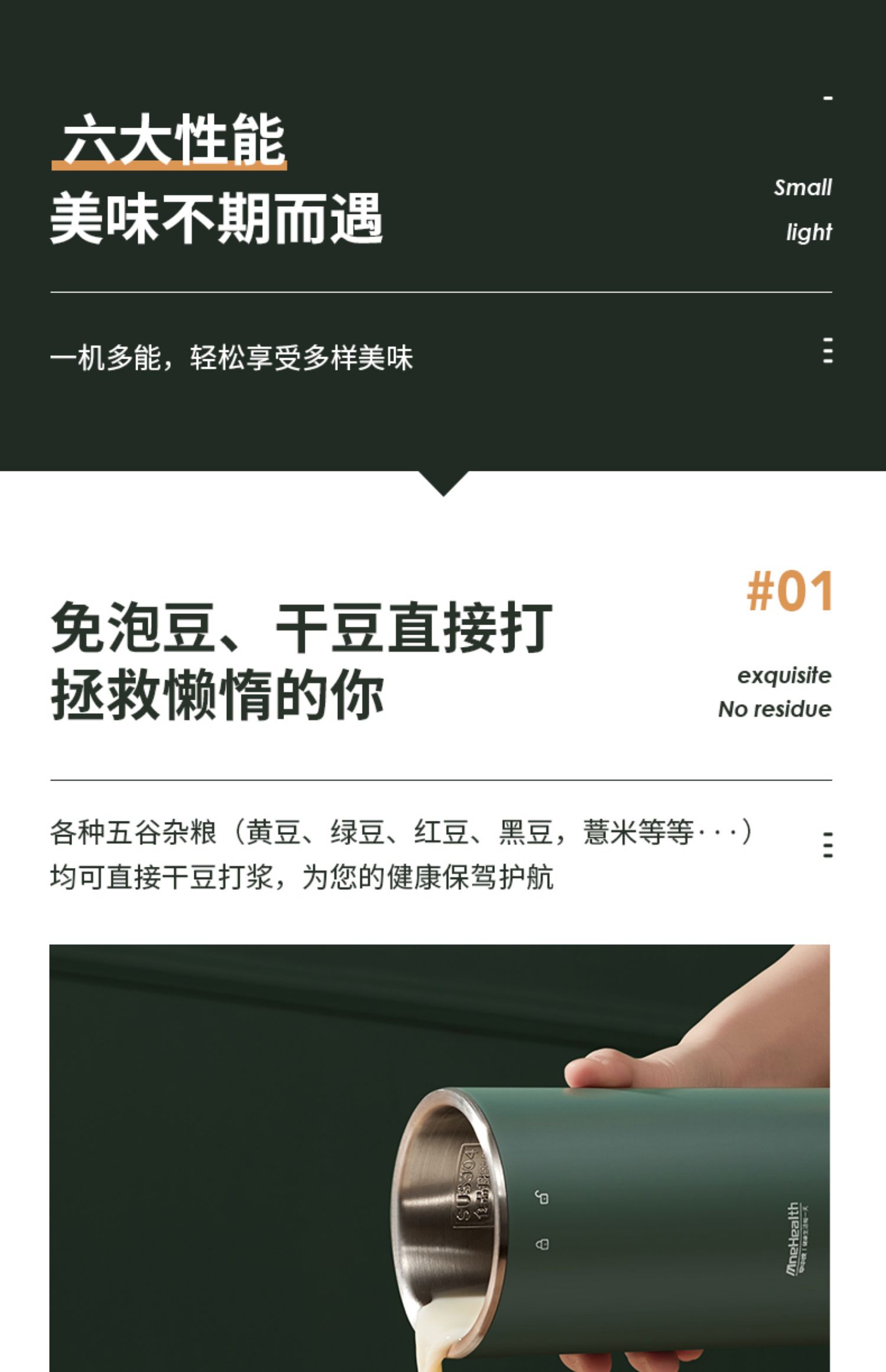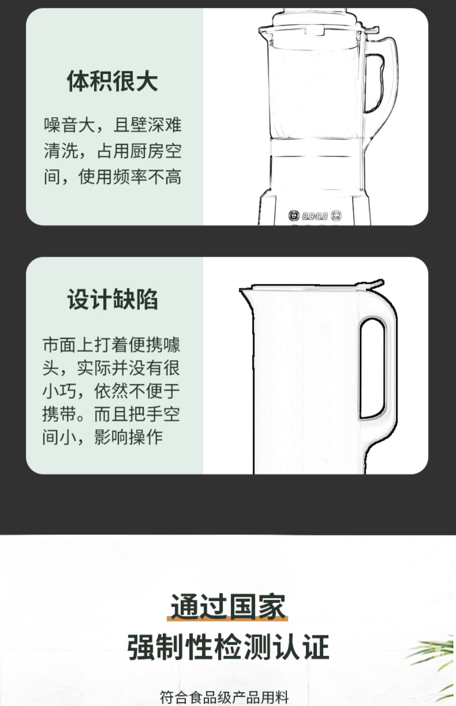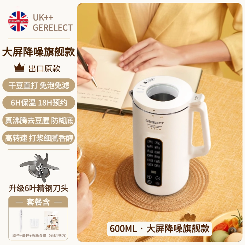 • [대형 스크린 확장 모델] 600ml + 6잎 드래곤 투스 커터 헤드 세트 + 8겹 NORD 소음 감소 기술 + 304 식품 등급 스테인레스 스틸 라이너 + 고성능 영구 자석