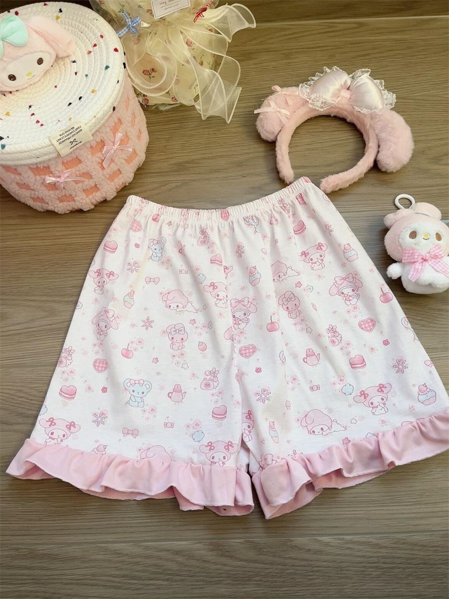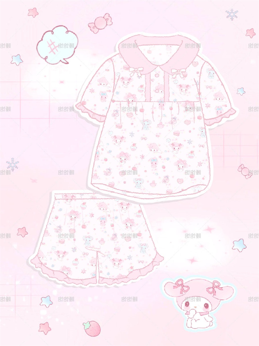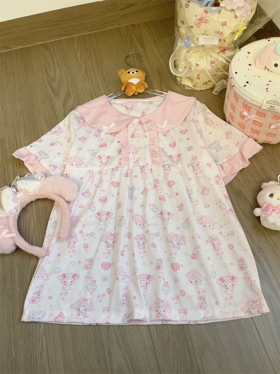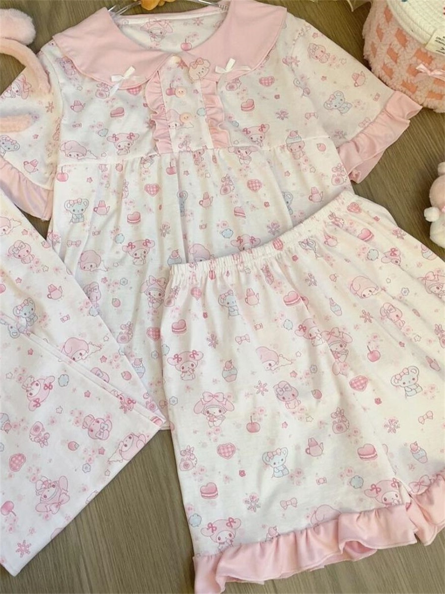 만화 귀여운 인형 칼라 Merleti 파자마 여성의 새로운 반팔 반바지 여름 한국 스타일 홈 의류 세트 외부 착용스토어 가기