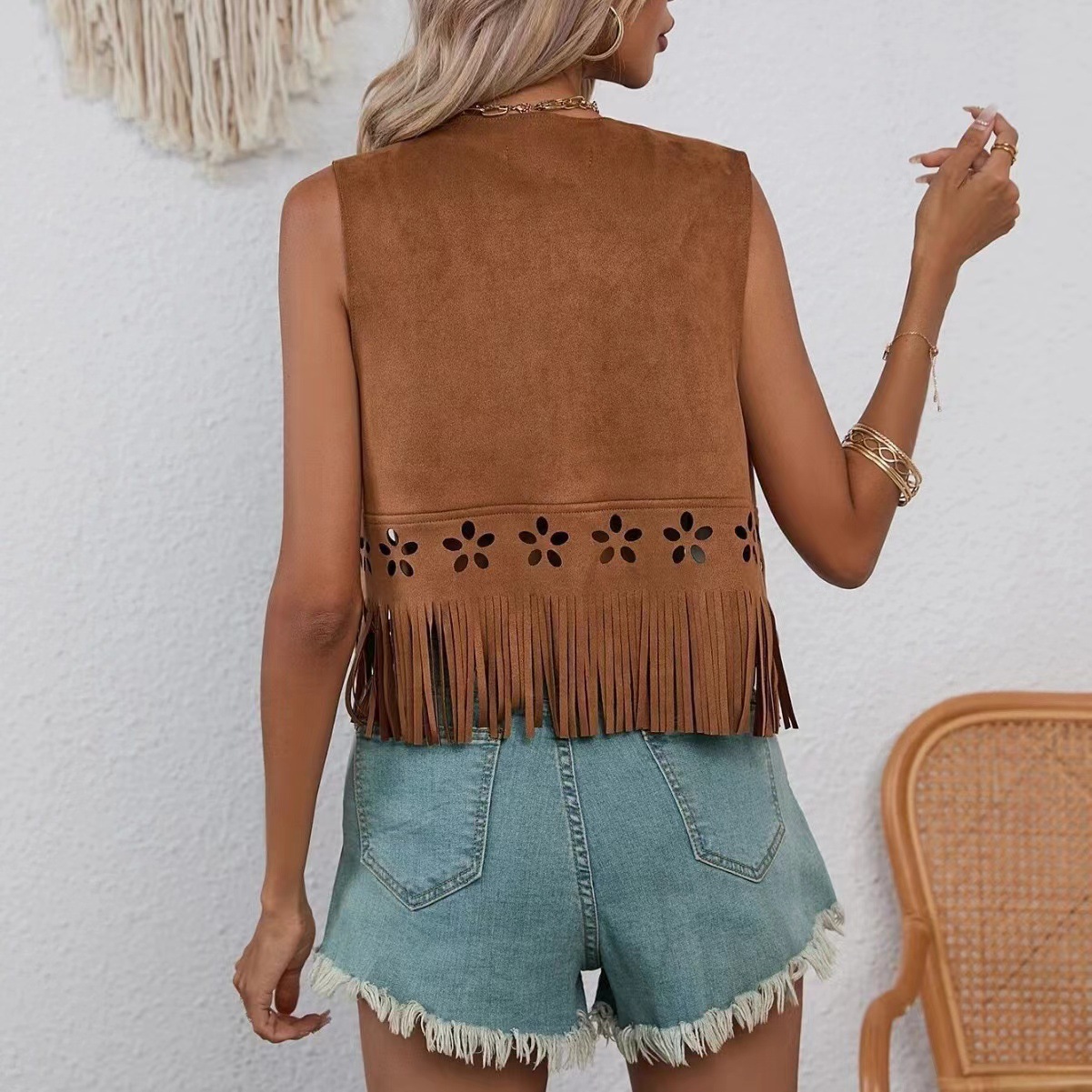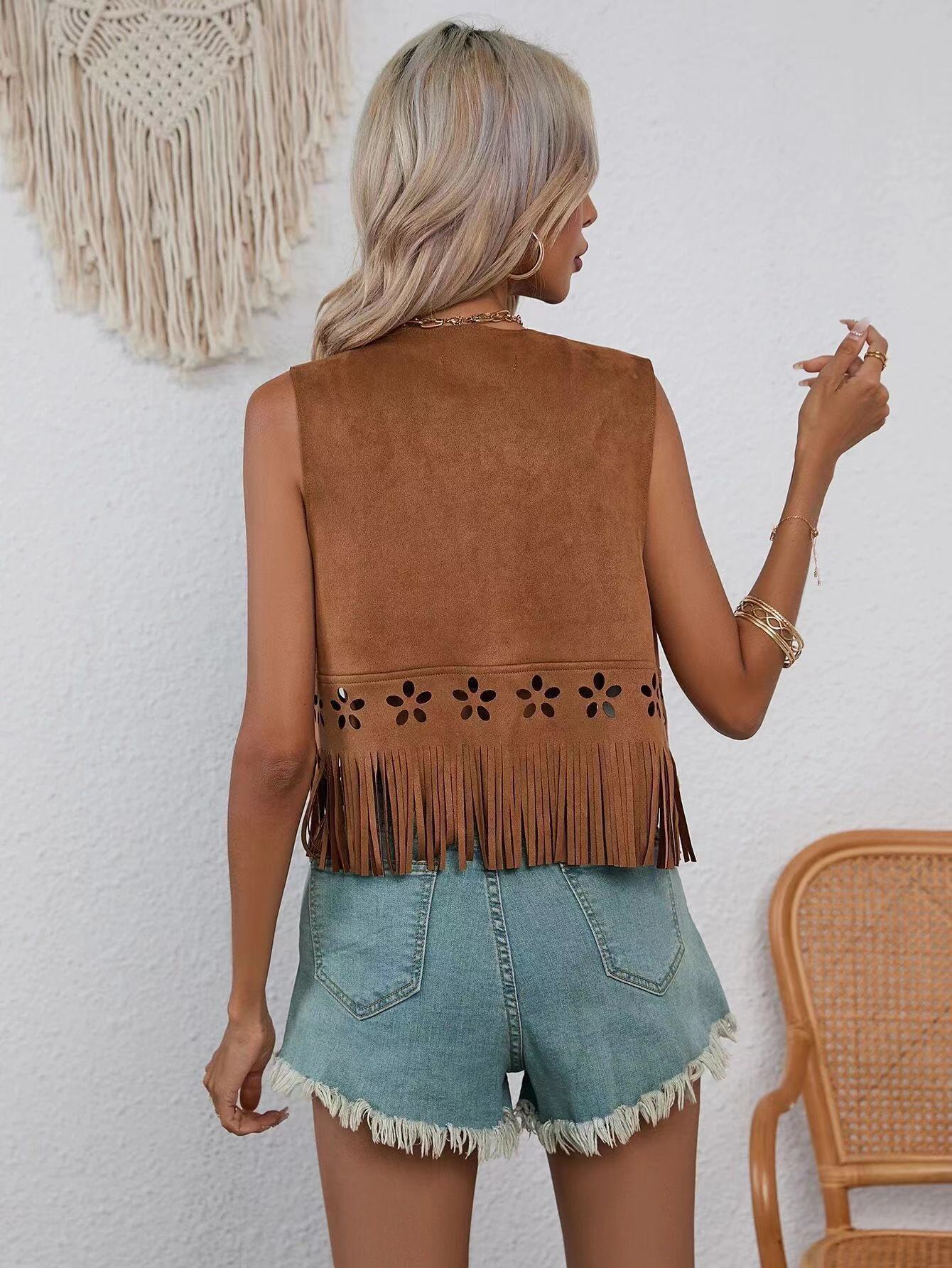 2025 유럽과 미국의 히피 아일렛 태슬 민소매 조끼 여성용 슬릿 태슬 재킷스토어 가기