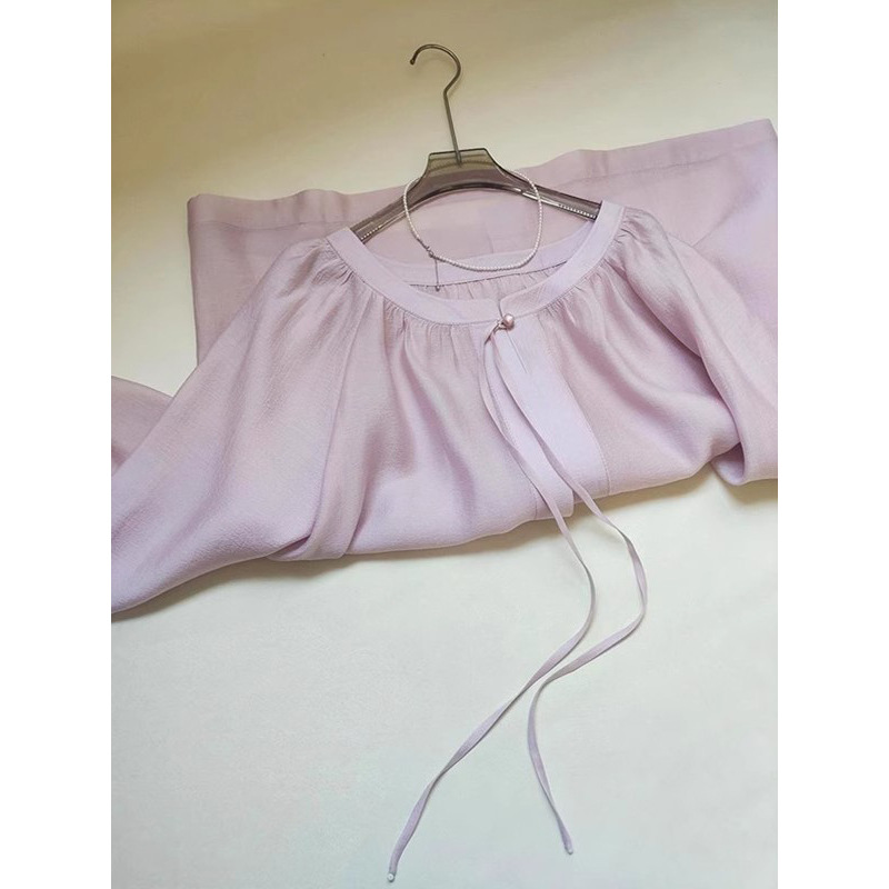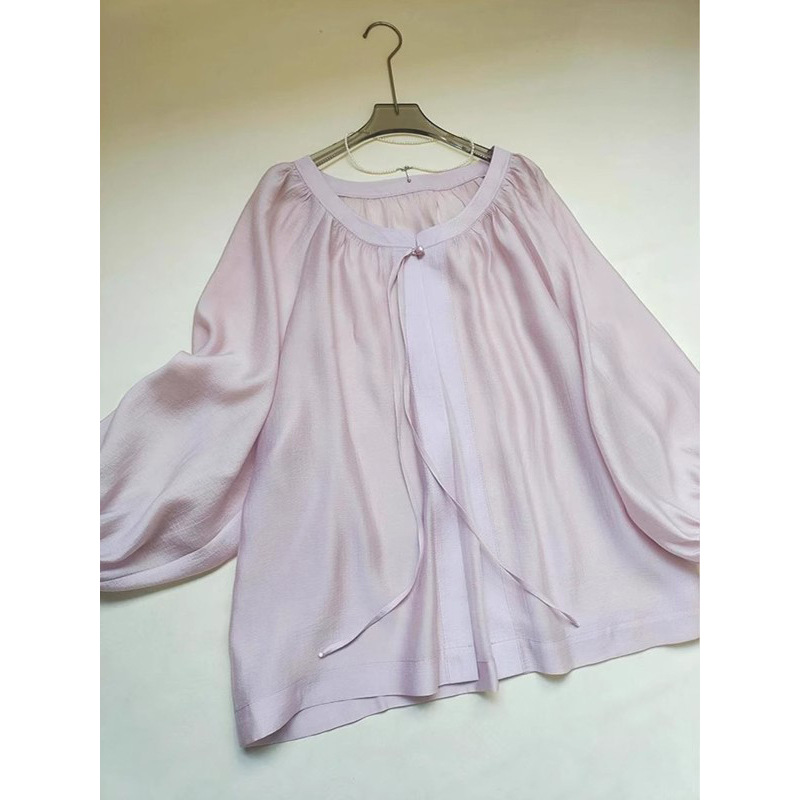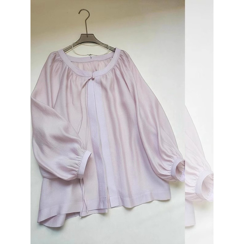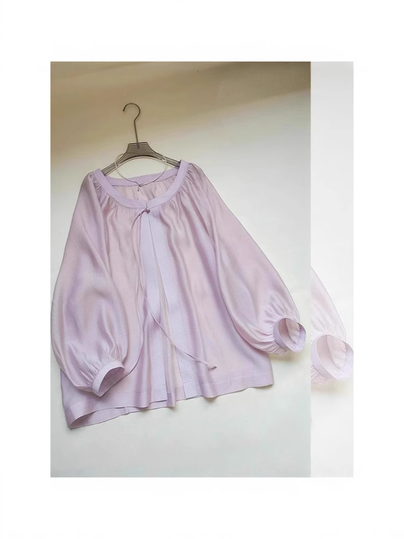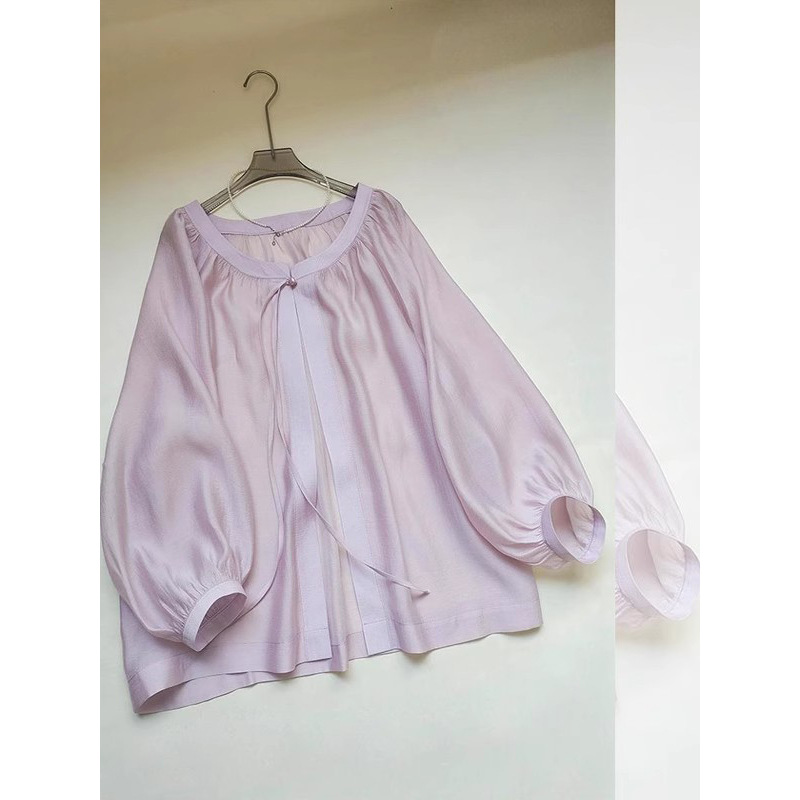 프랑스 스타일 부드러운 스타일 선스크린 셔츠 여성의 2025 년 새로운 달콤한 시대를 줄이는 느슨한 올매치 세븐 슬리브 레이스 업 탑스토어 가기