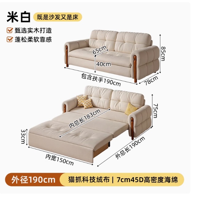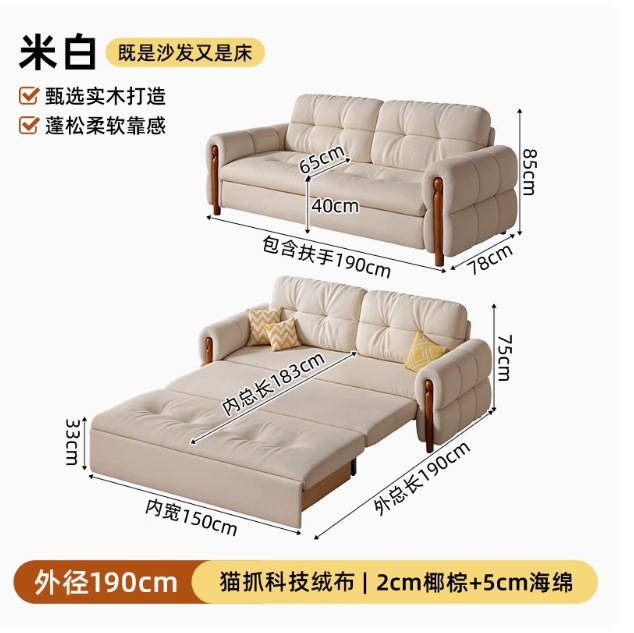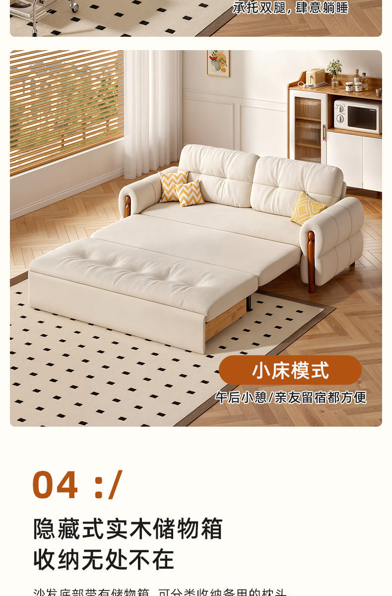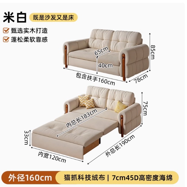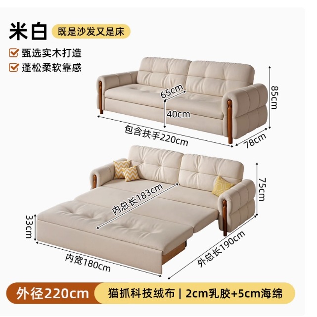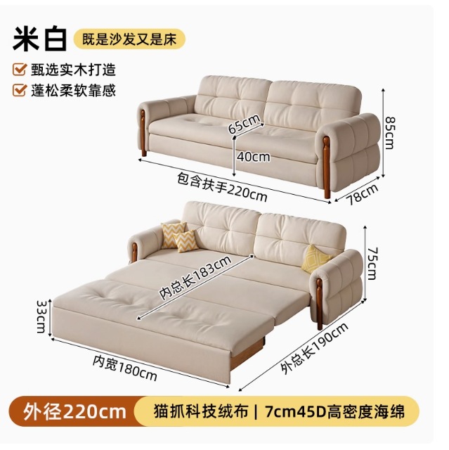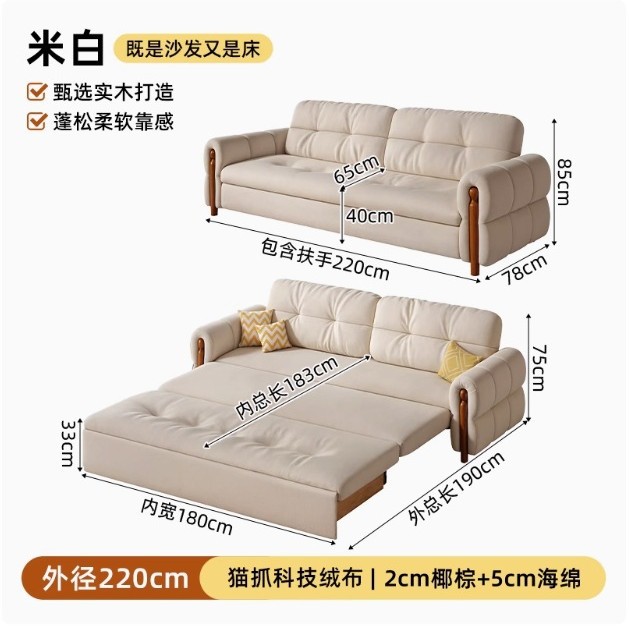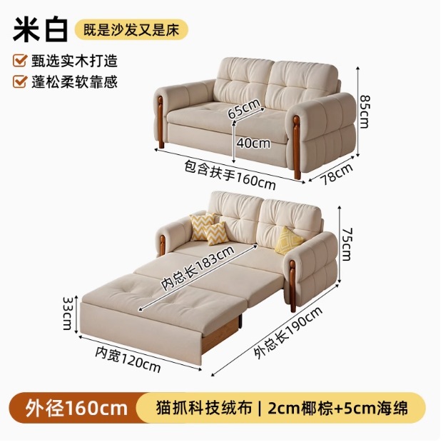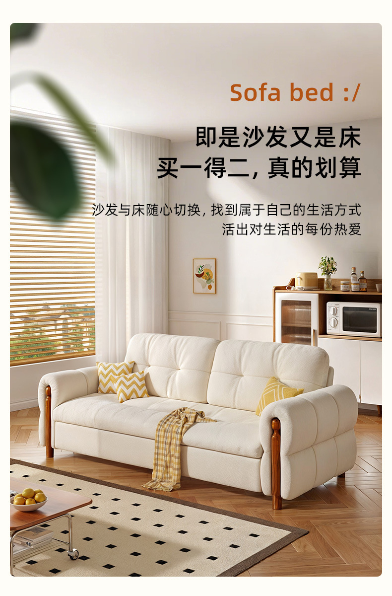 프랑스 복고풍 크림 스타일 단단한 나무 소파 침대 접이식 이중 목적 가정 거실 작은 아파트 2024 새로운 개폐식 침대스토어 가기