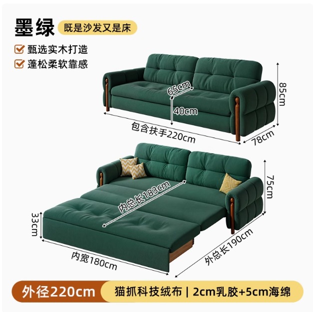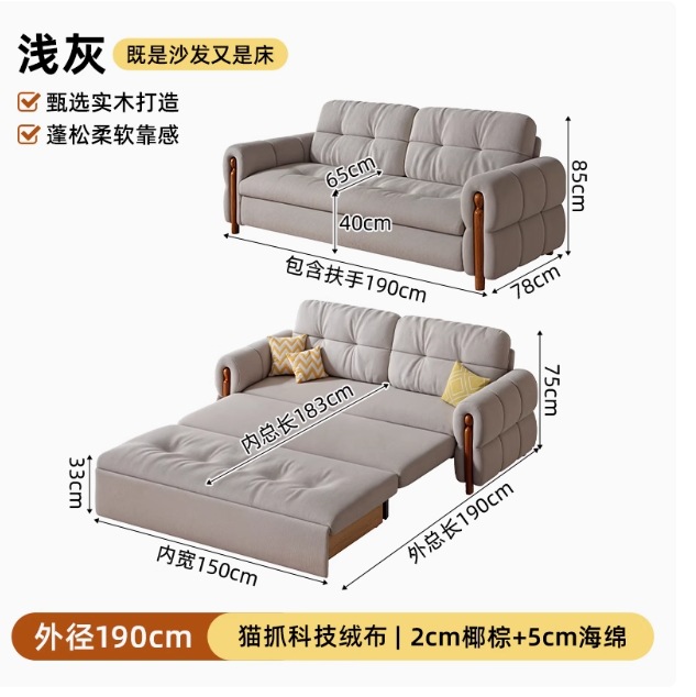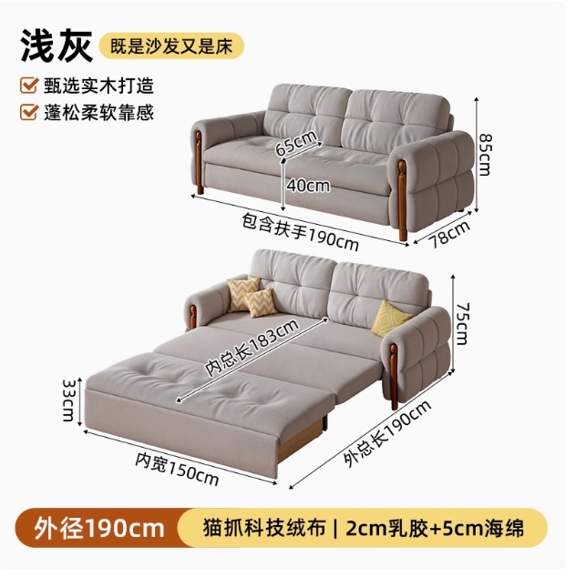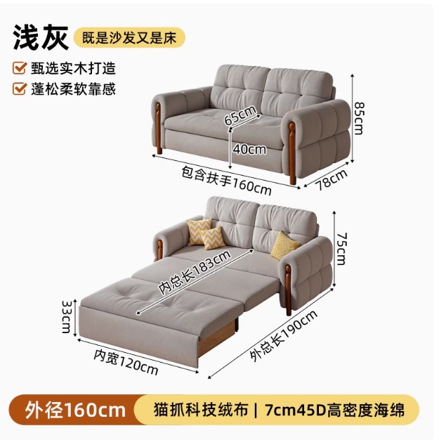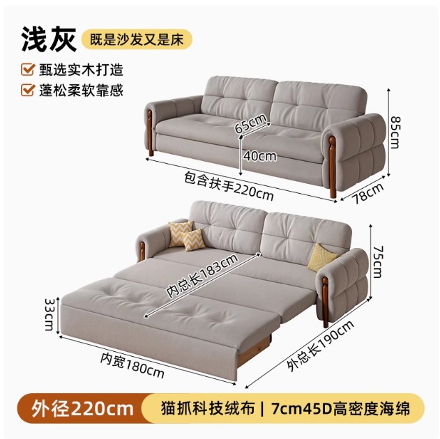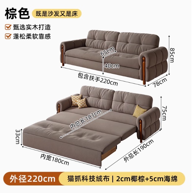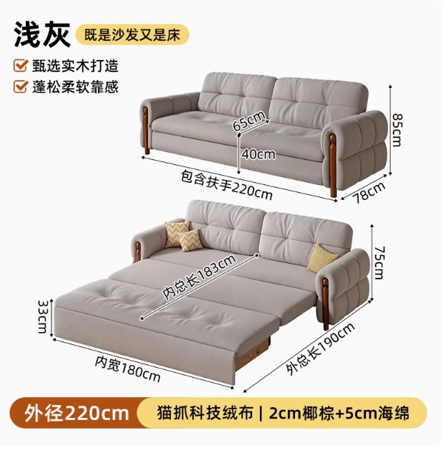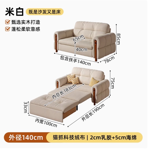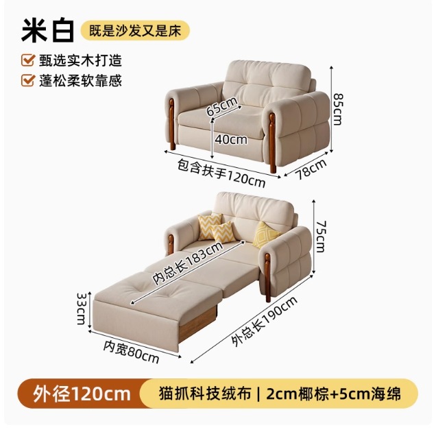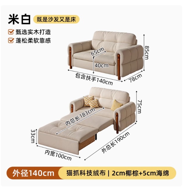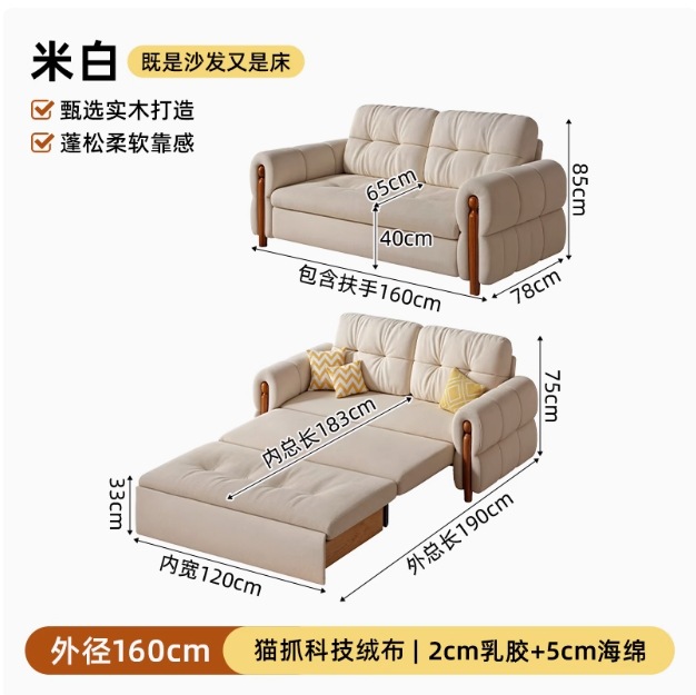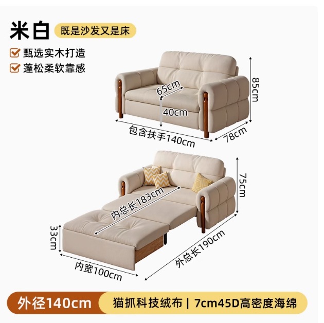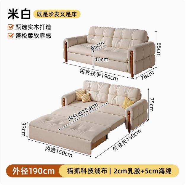 프랑스 복고풍 크림 스타일 단단한 나무 소파 침대 접이식 이중 목적 가정 거실 작은 아파트 2024 새로운 개폐식 침대스토어 가기