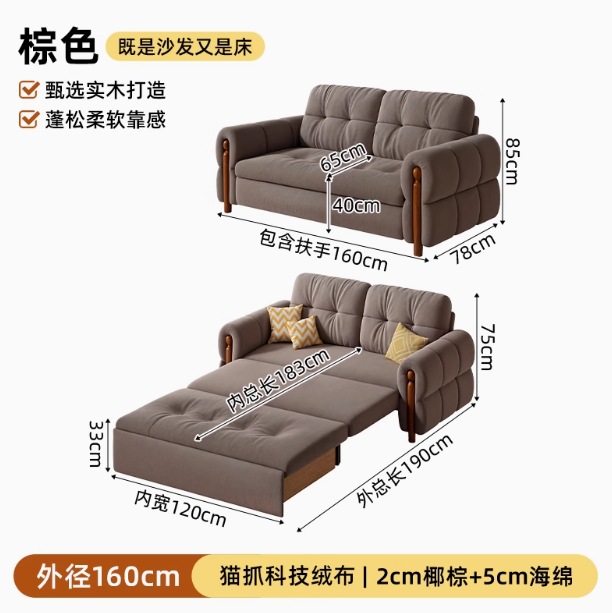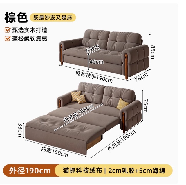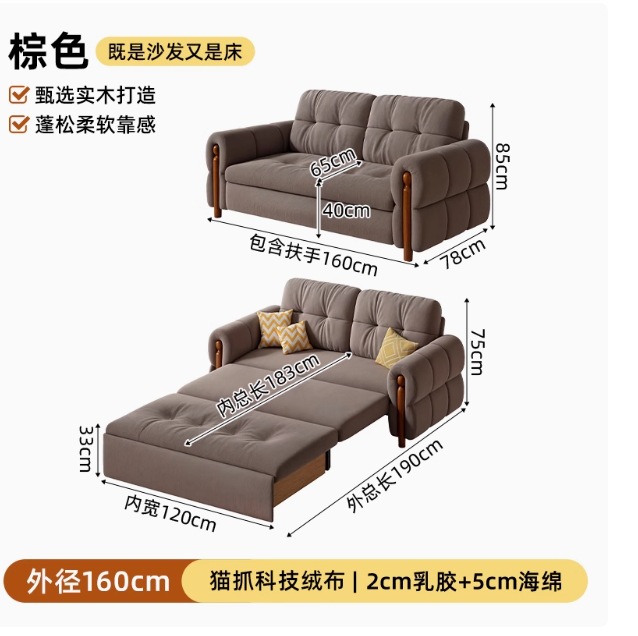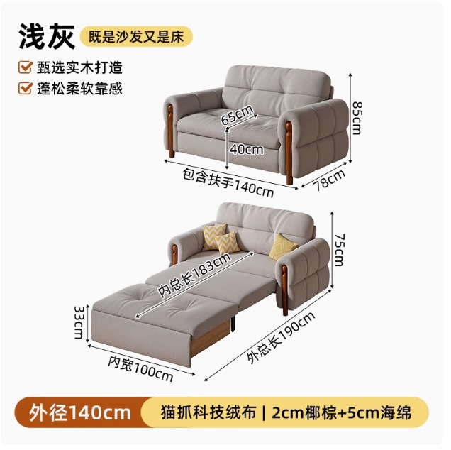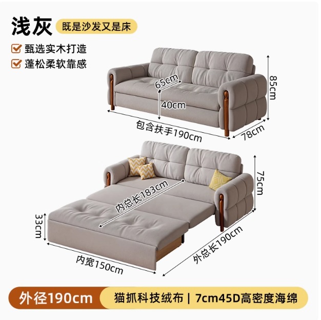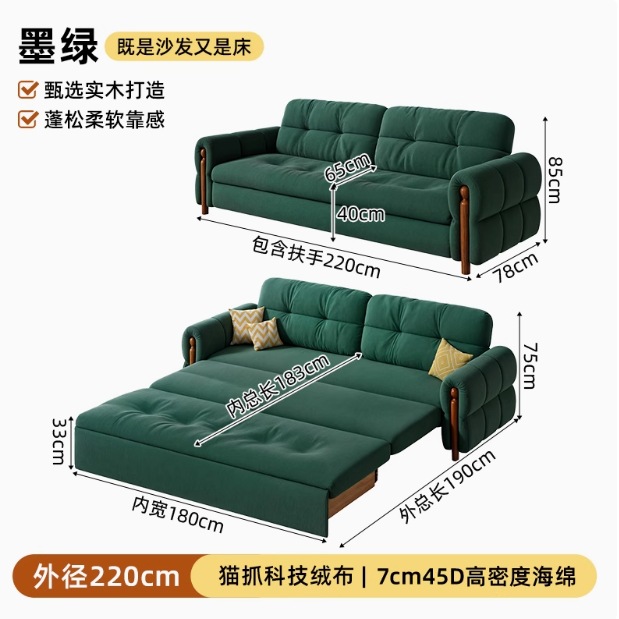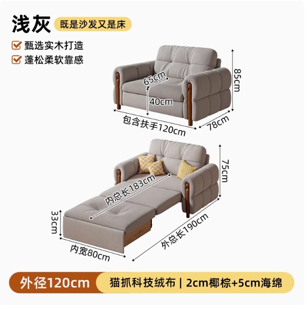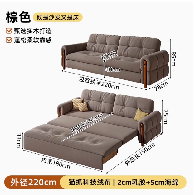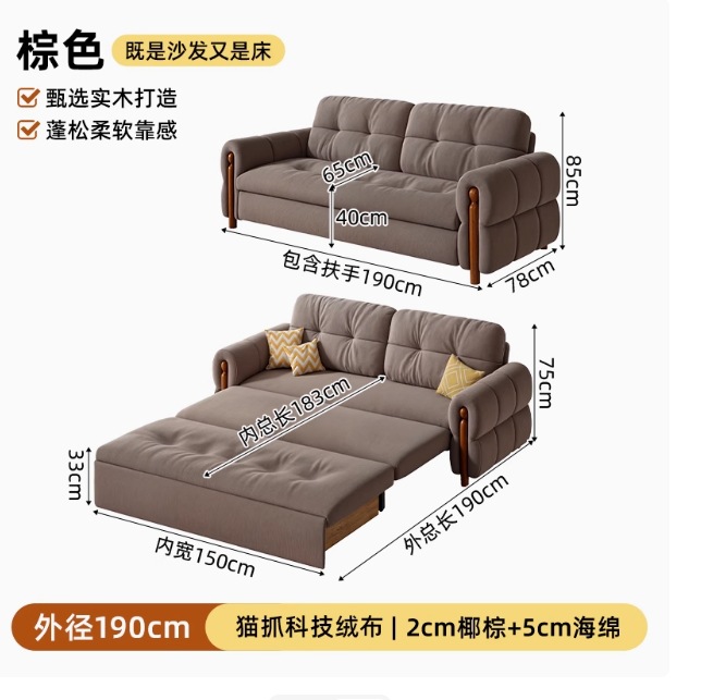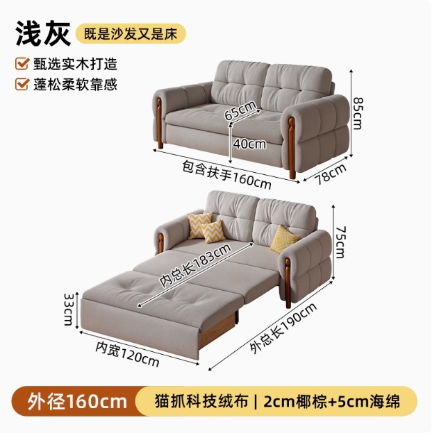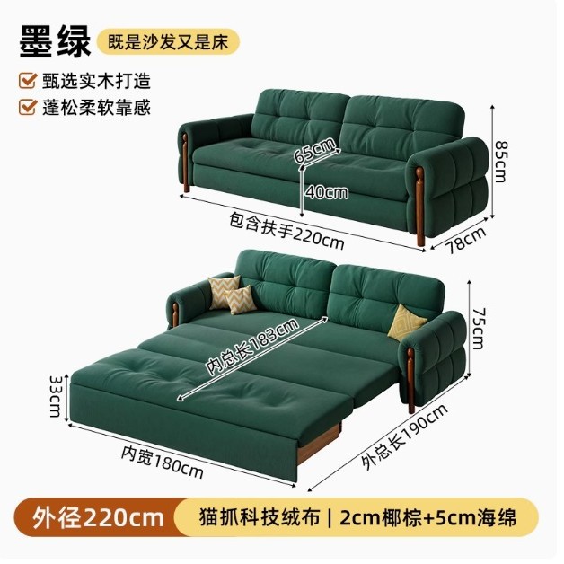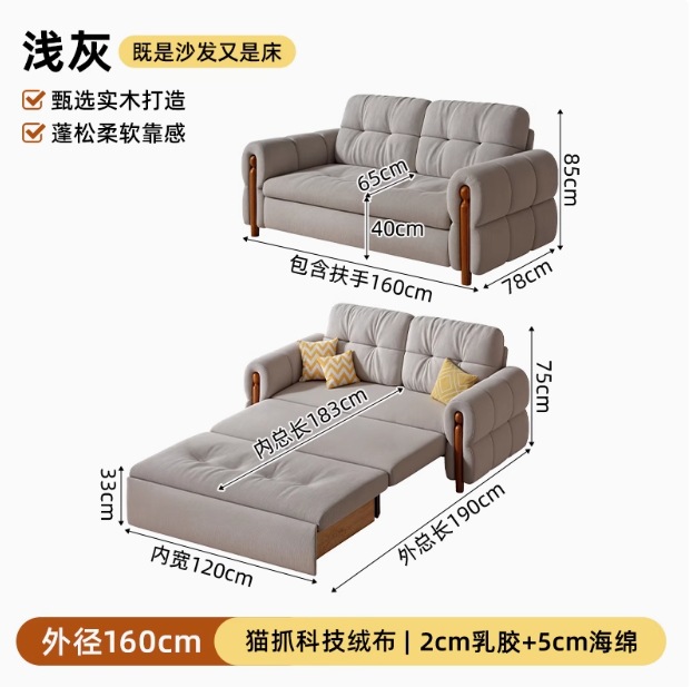 프랑스 복고풍 크림 스타일 단단한 나무 소파 침대 접이식 이중 목적 가정 거실 작은 아파트 2024 새로운 개폐식 침대스토어 가기