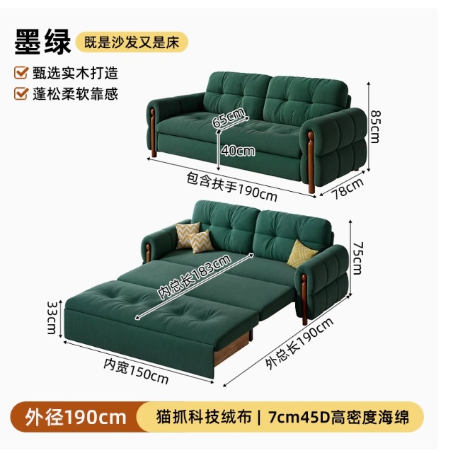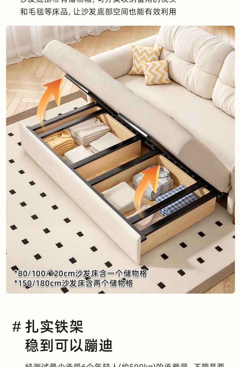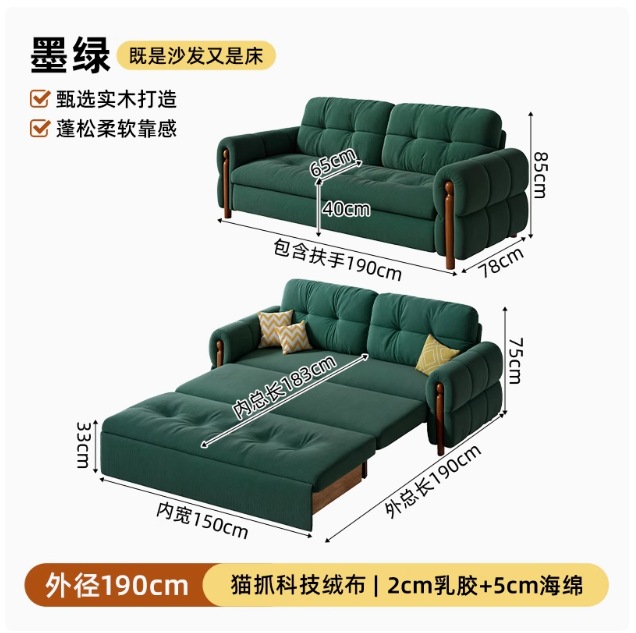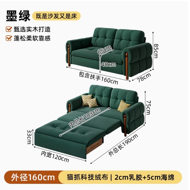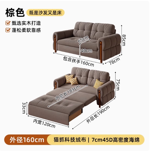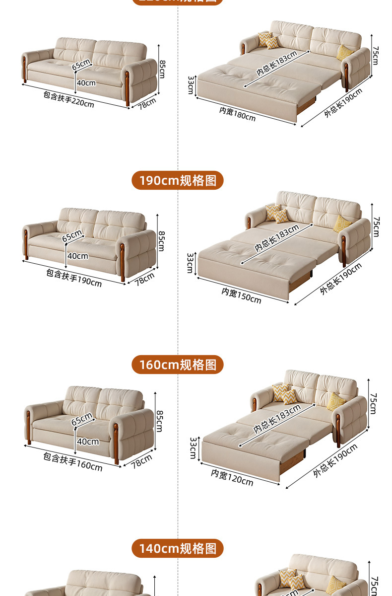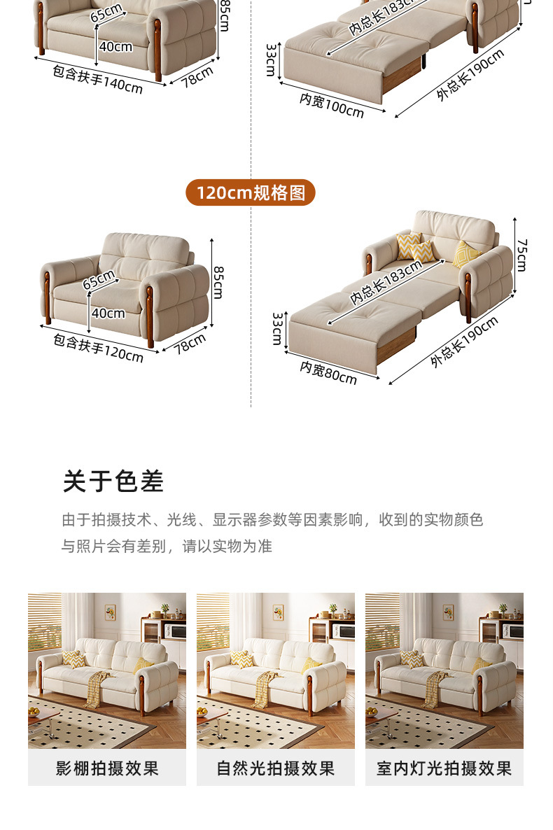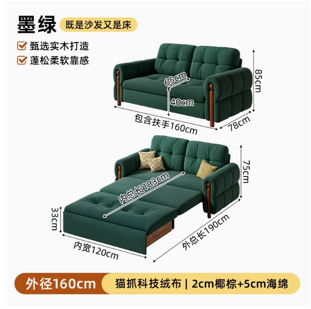 프랑스 복고풍 크림 스타일 단단한 나무 소파 침대 접이식 이중 목적 가정 거실 작은 아파트 2024 새로운 개폐식 침대스토어 가기