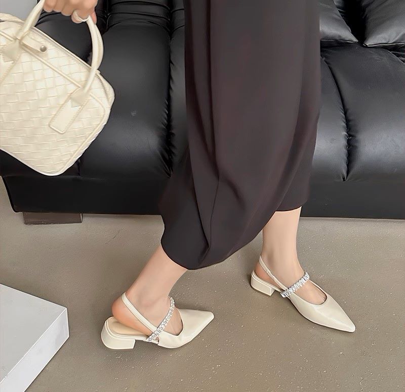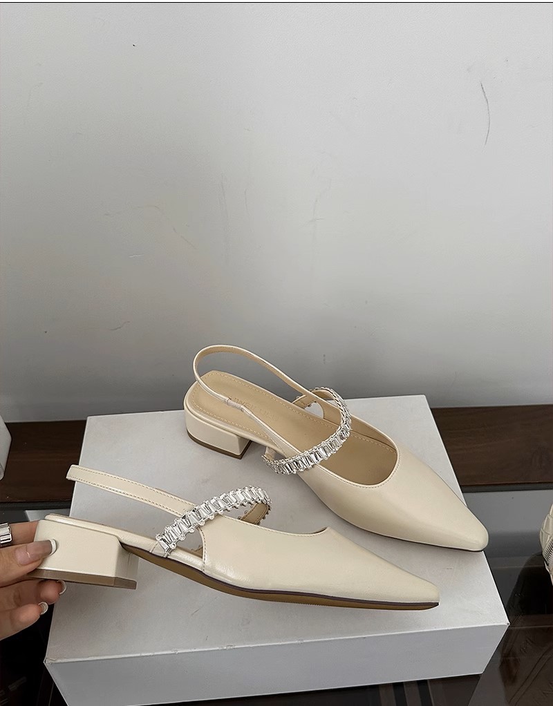 여성을위한 라인 석 발가락 샌들 2025 여름 새로운 두꺼운 굽 뾰족한 프렌치 스트랩 하이힐 요정 스타일 펌프스