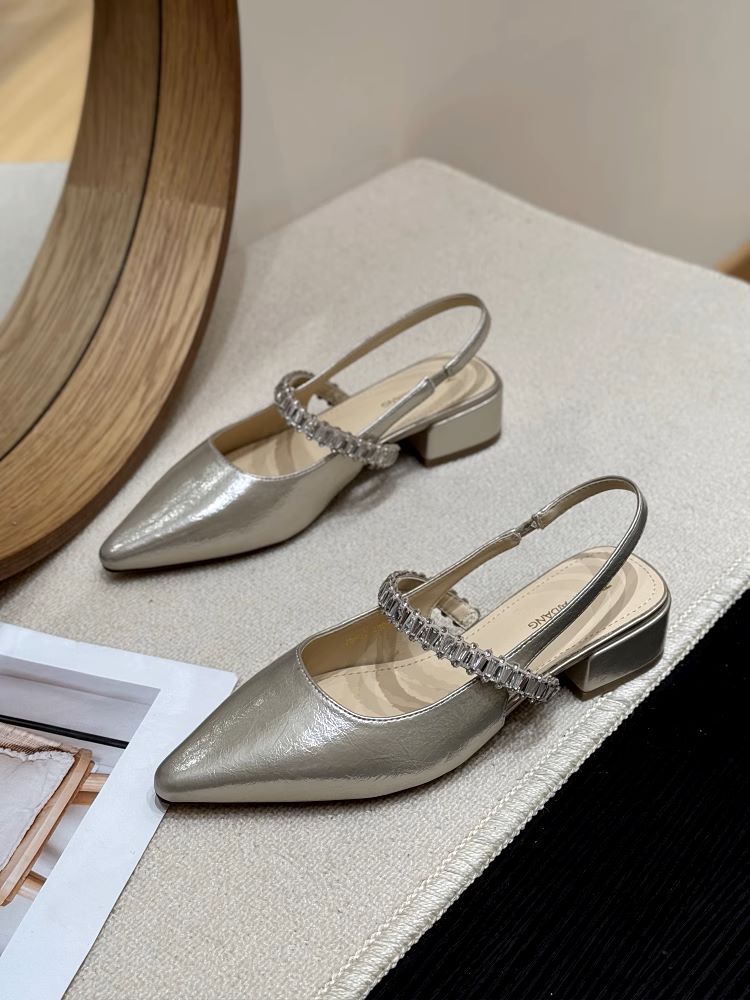 여성을위한 라인 석 발가락 샌들 2025 여름 새로운 두꺼운 굽 뾰족한 프렌치 스트랩 하이힐 요정 스타일 펌프스스토어 가기