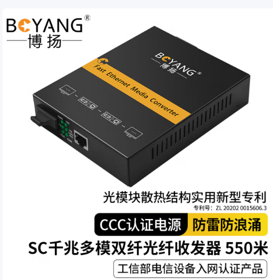 博扬(BOYANG)千兆多模光纤收发器双纤 多模光电转换器 光电收发器 防雷SC接口 550m内置电源 一台BY-NG612D