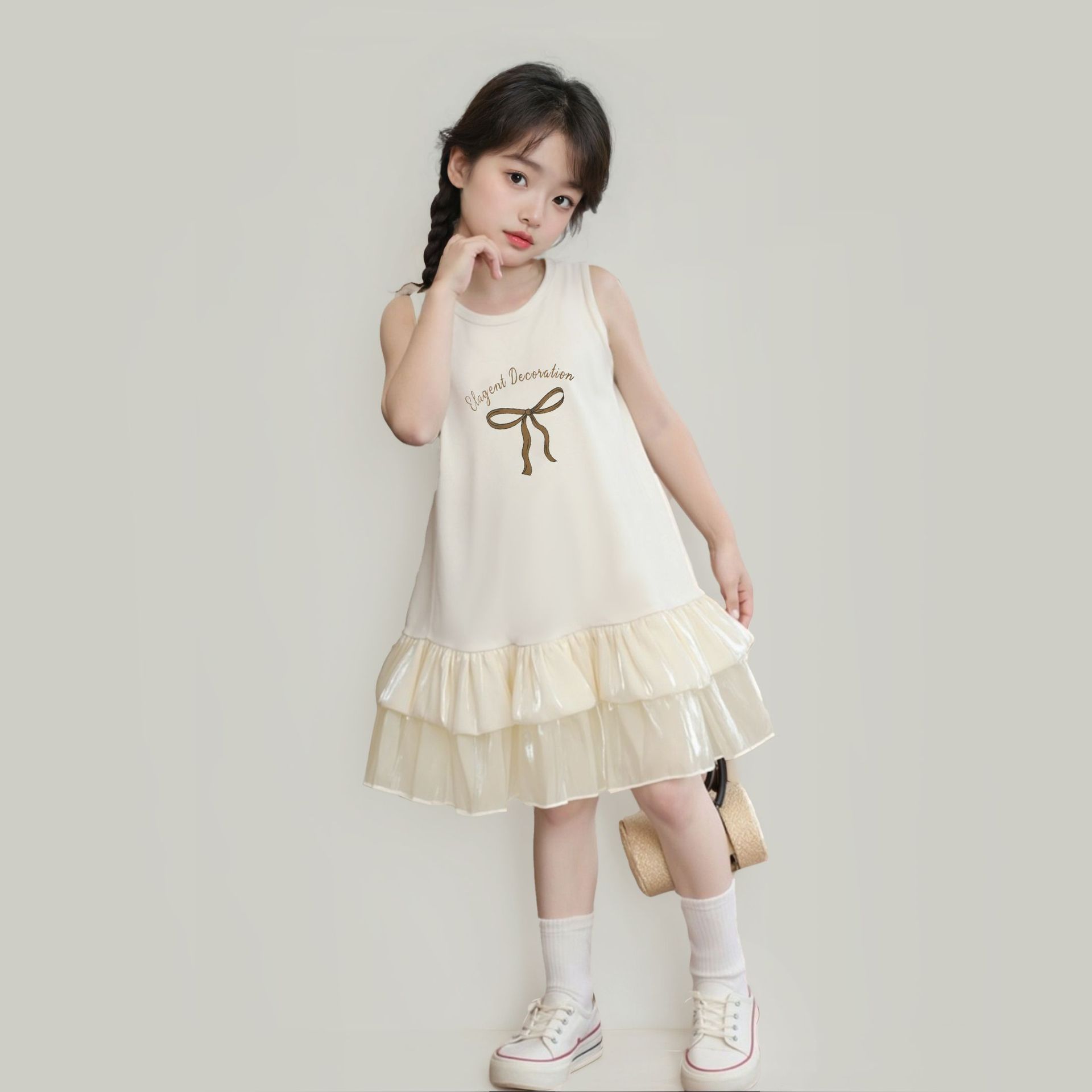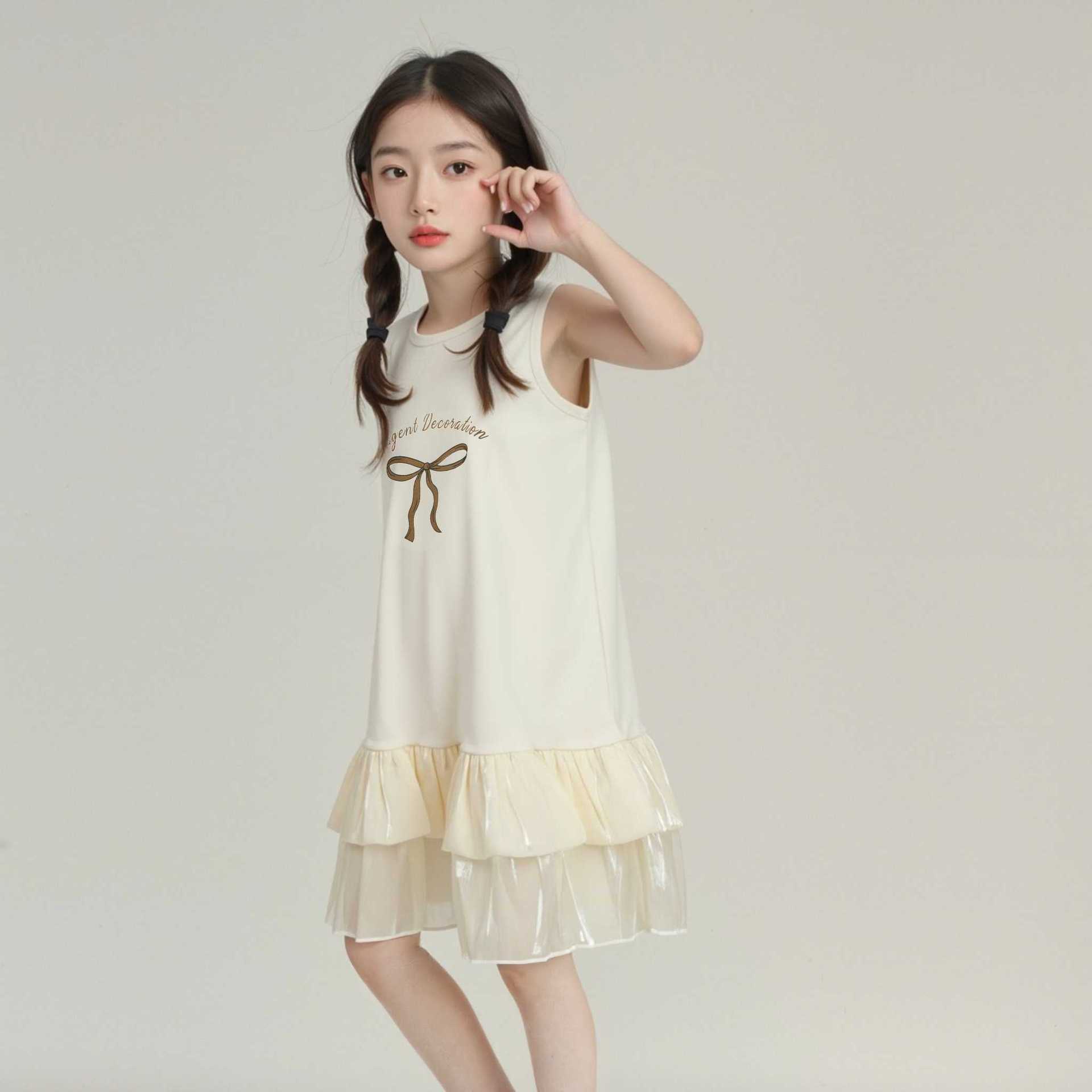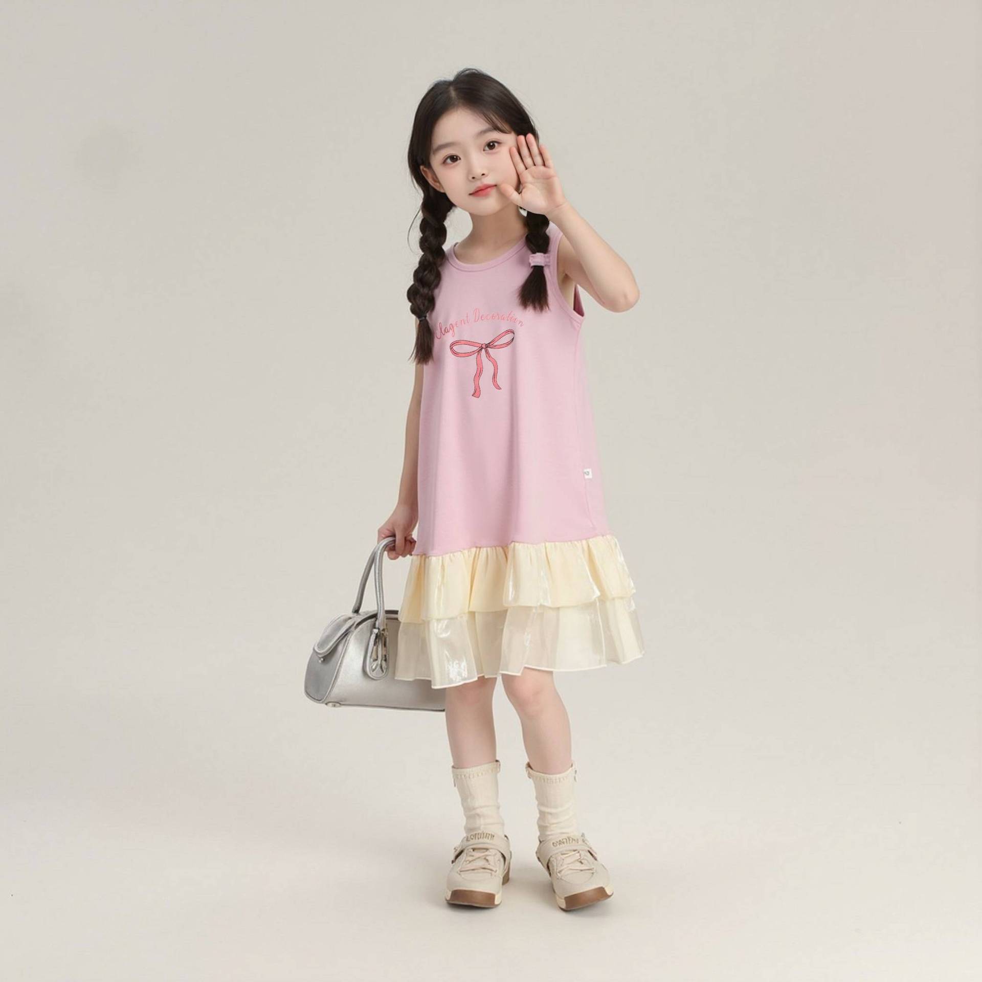 2025 여름 새로운 어린이 활 조끼 원피스 어린이 여름 원피스 소녀 서양식 거즈 꼬리 원피스스토어 가기