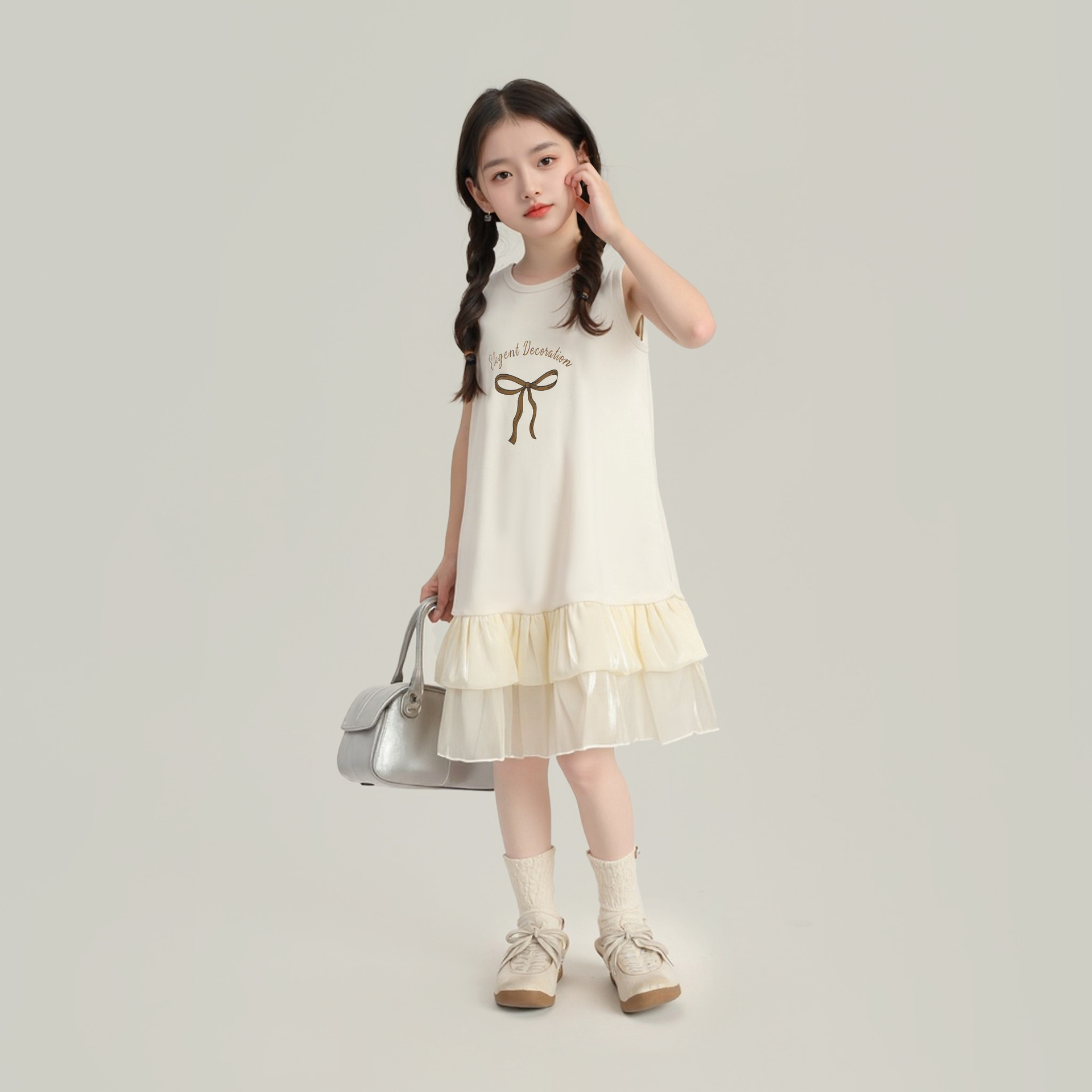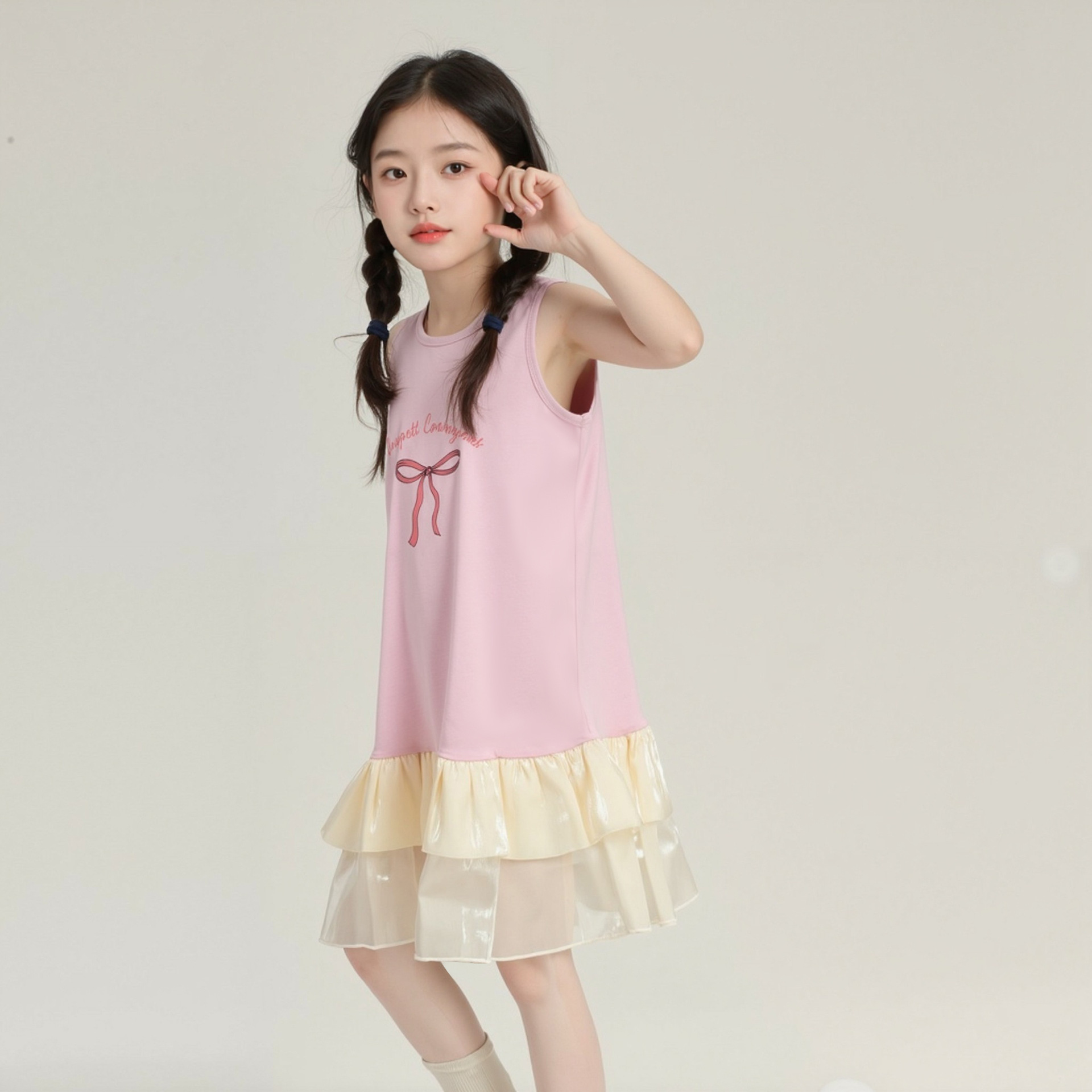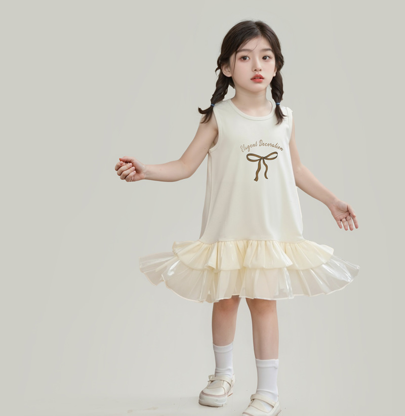 2025 여름 새로운 어린이 활 조끼 원피스 어린이 여름 원피스 소녀 서양식 거즈 꼬리 원피스스토어 가기
