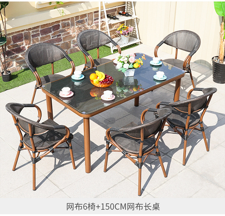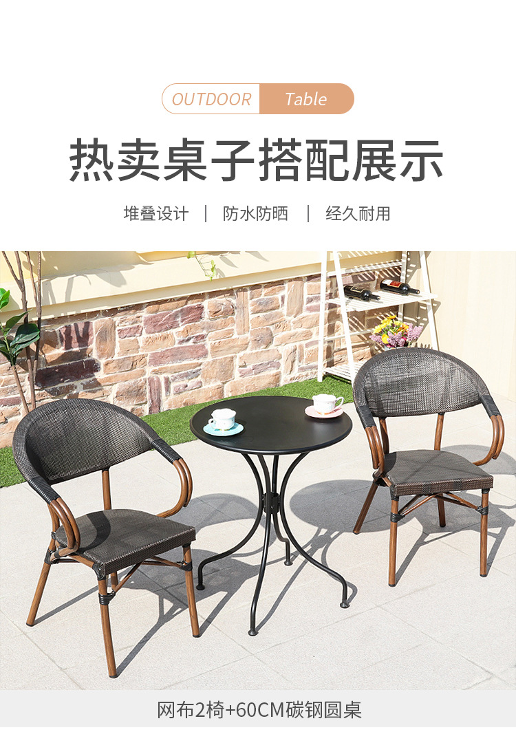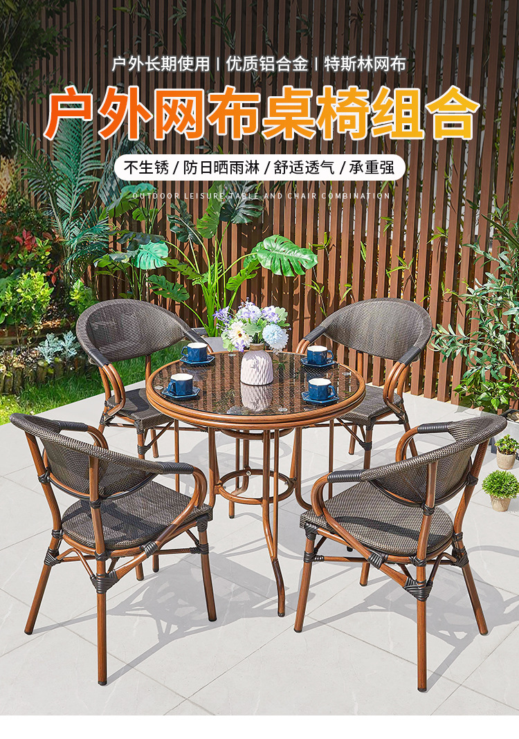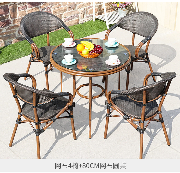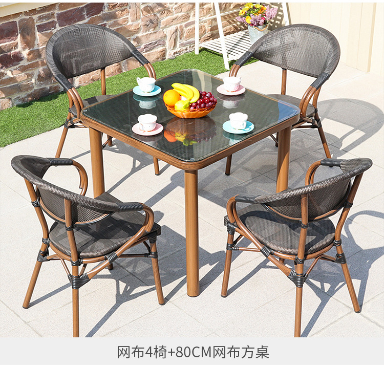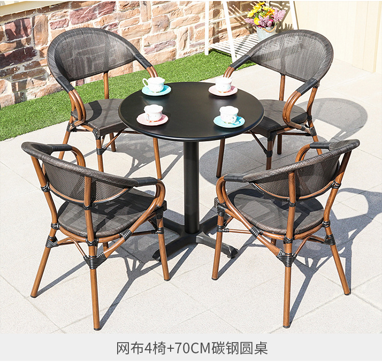 야외 테이블과 의자 발코니 안뜰 정원 커피 우유 차 가게 야외 레저 지역 식사 테이블 메쉬 의자 조합스토어 가기