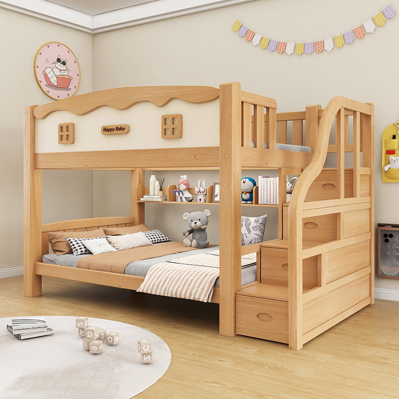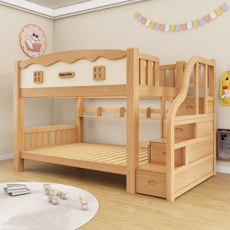 두꺼운 원목 이층침대, 소형 어린이침대, 성인용 이층침대, 기숙사용 높낮이침대, 두꺼운 이층침대