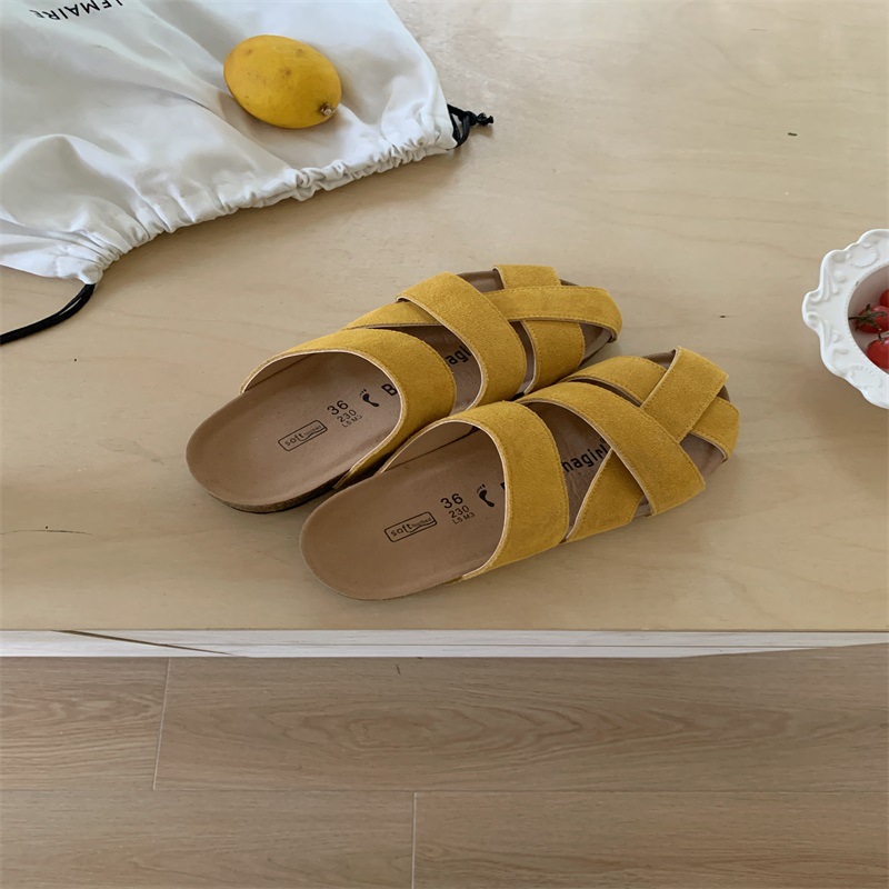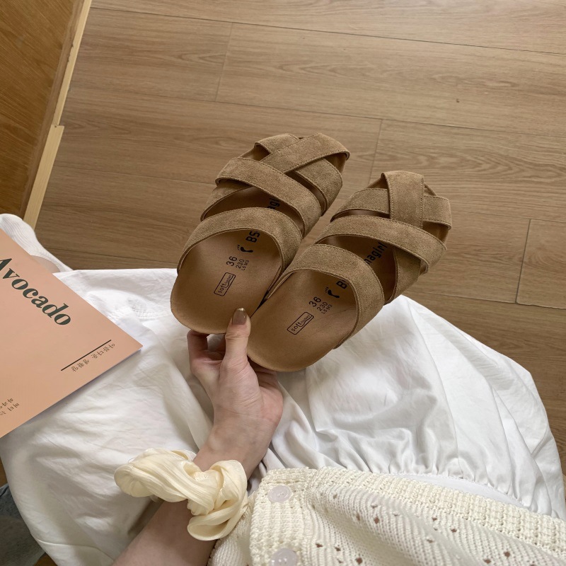 빈티지 모리 스타일 가죽 짠 발가락 하프 슬리퍼 플러스 사이즈 외부 착용 2025 새로운 두꺼운 바닥 할로우 통기성 버켄 네스 신발스토어 가기