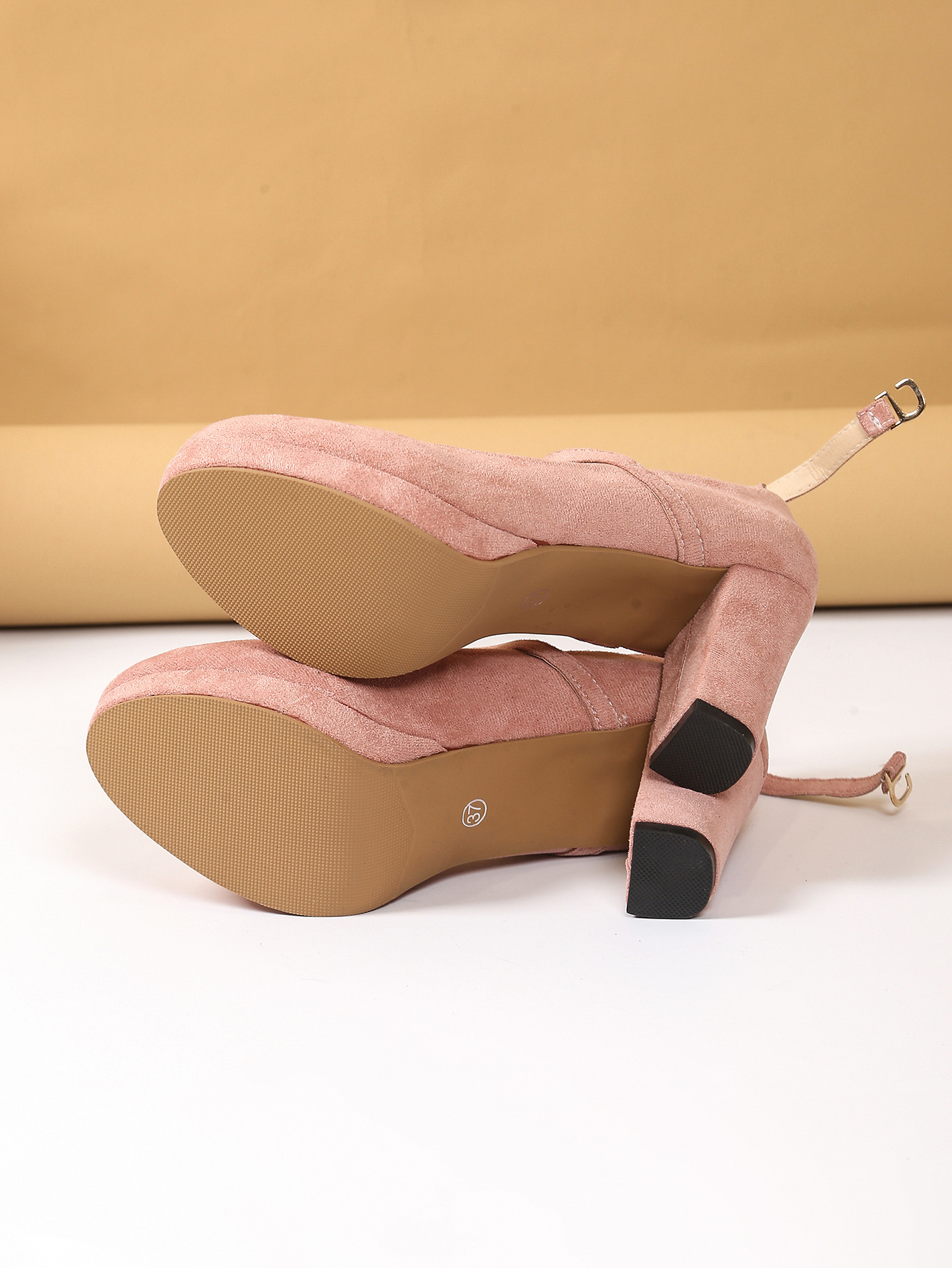 2025 여름 유럽과 미국의 대외 무역 펌프스 하이힐 신발 여성을위한 새로운 대형 두꺼운 굽 스웨이드 크로스 스트랩 크로스 경계 신발스토어 가기