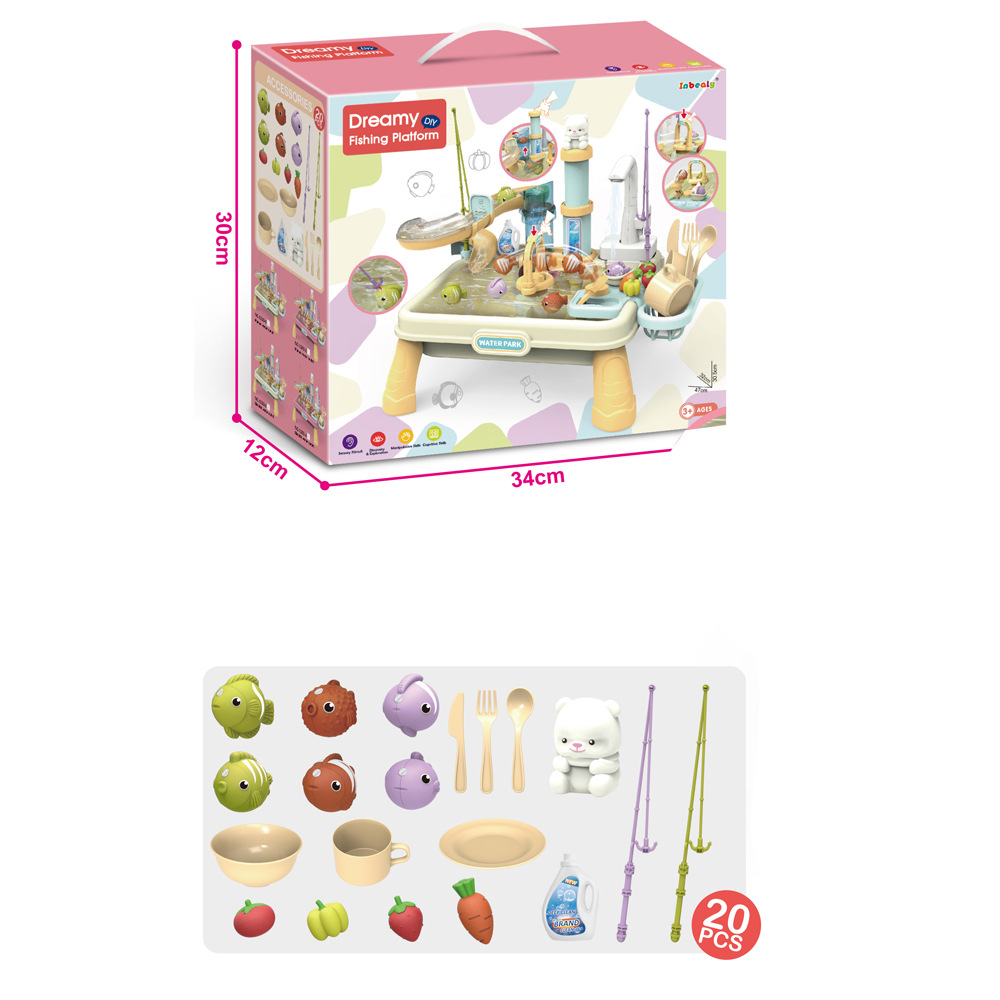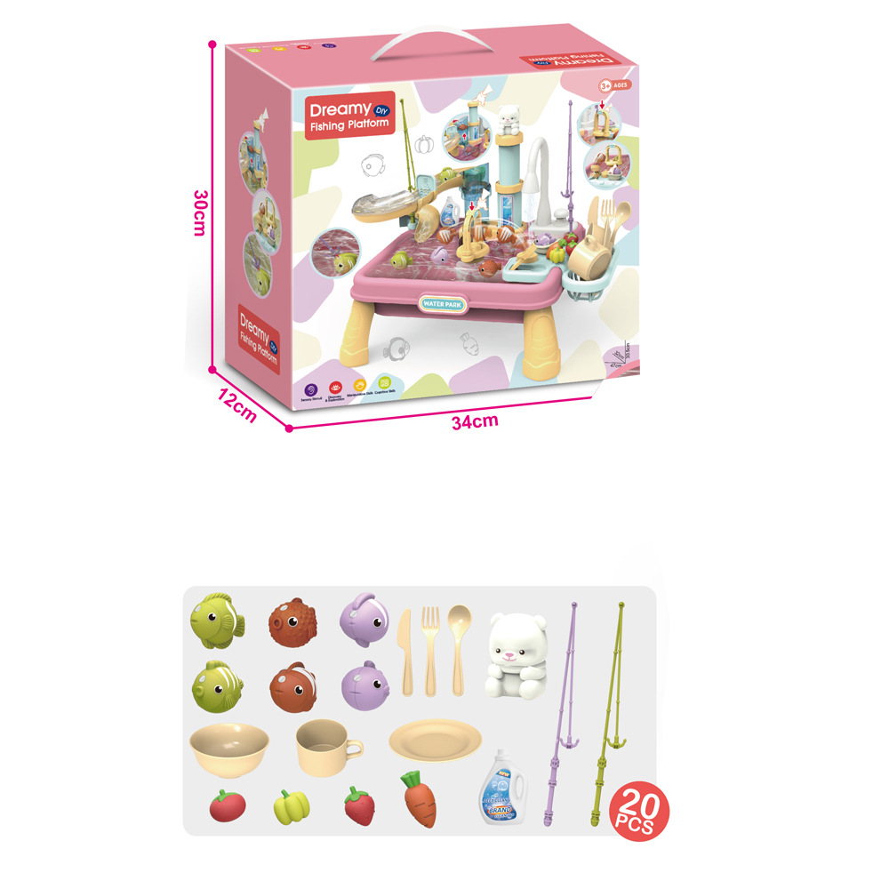 국경 간 놀이 집 어린이 전기 수압 리프팅 식기 세척기 주방 세척 분지 세트 낚시 물 놀이 장난감스토어 가기