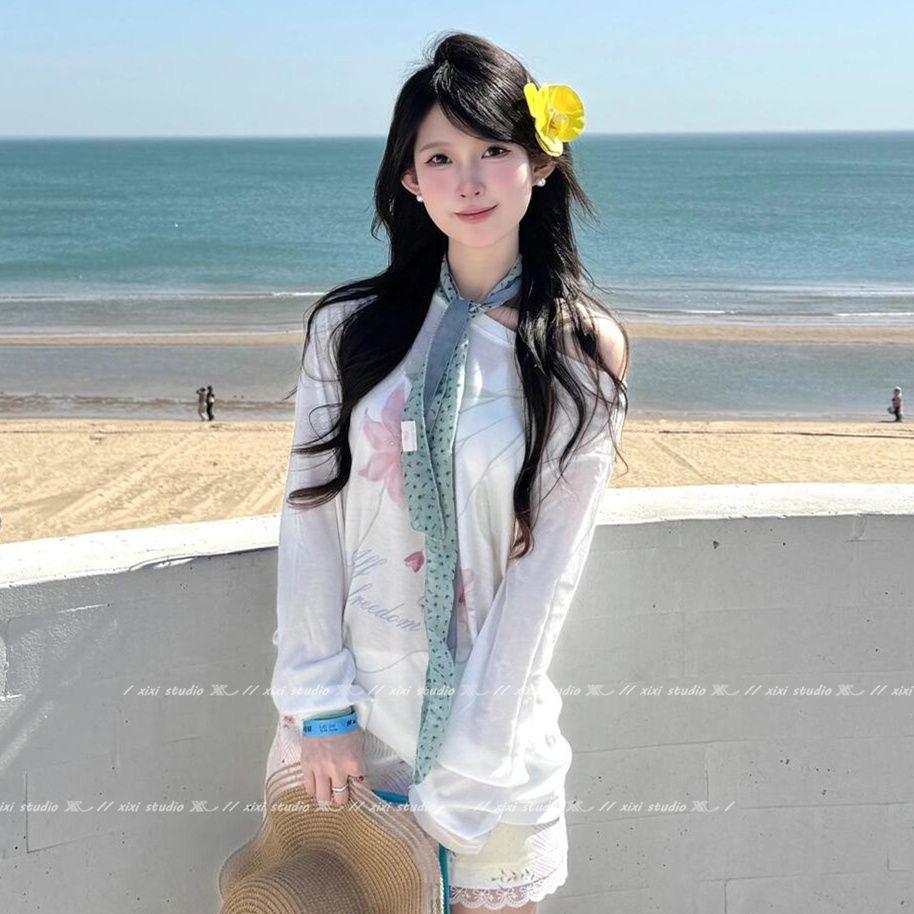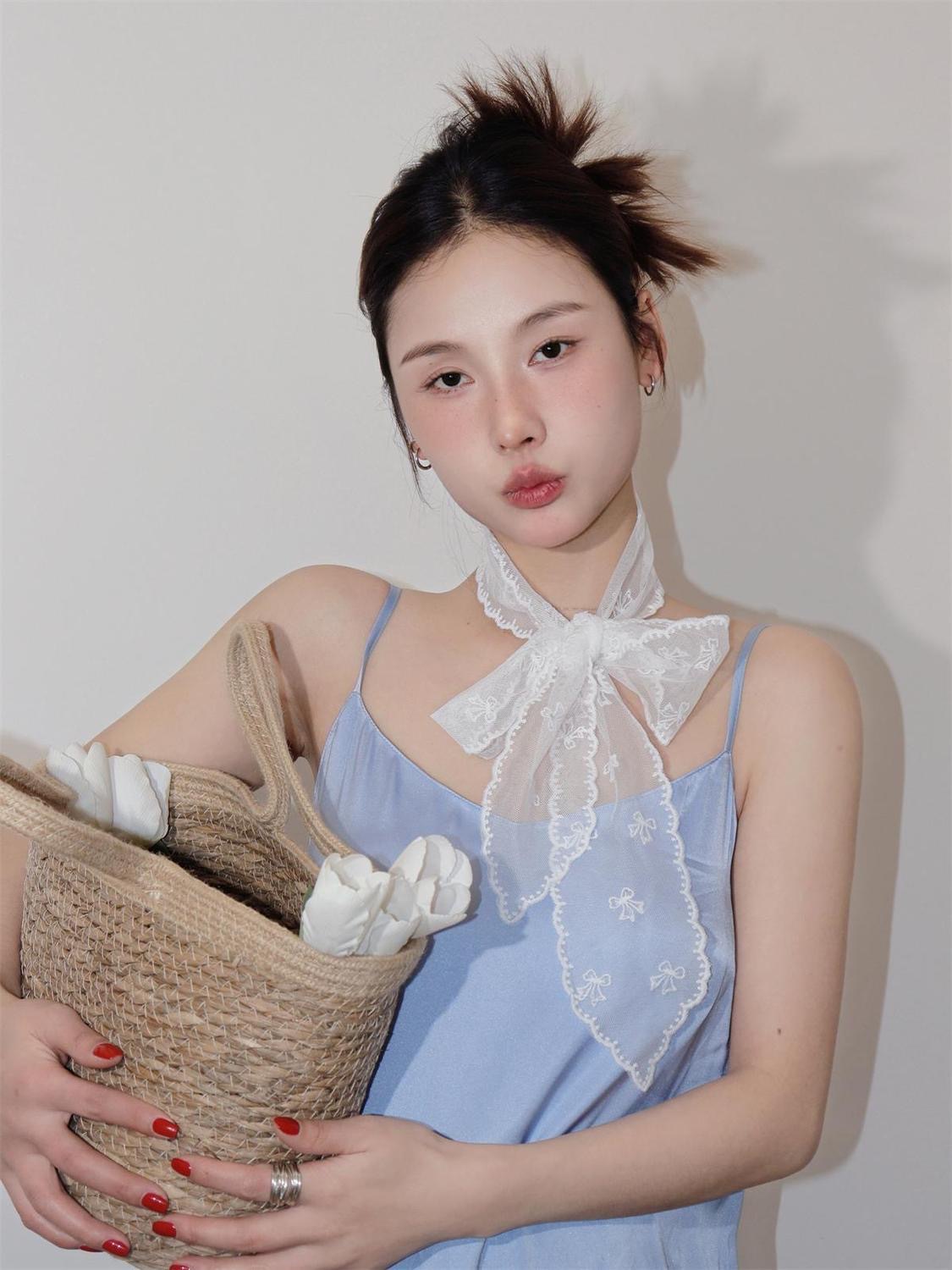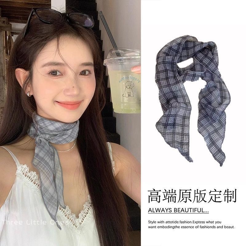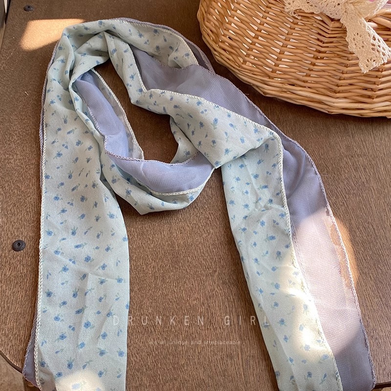 한국 녹색 꽃 실크 스카프 고급 스타일 목 예술 스타일 얇은 스카프 봄과 여름 긴 목 보호 스카프 액세서리스토어 가기