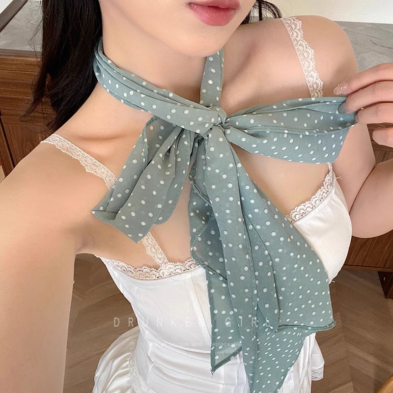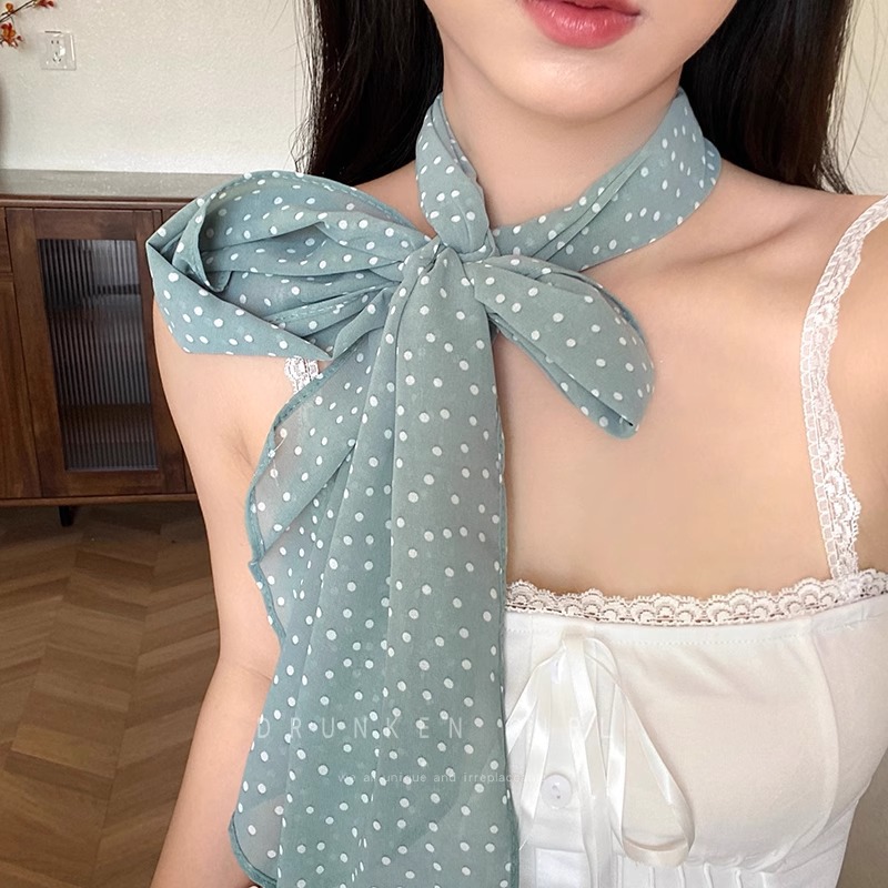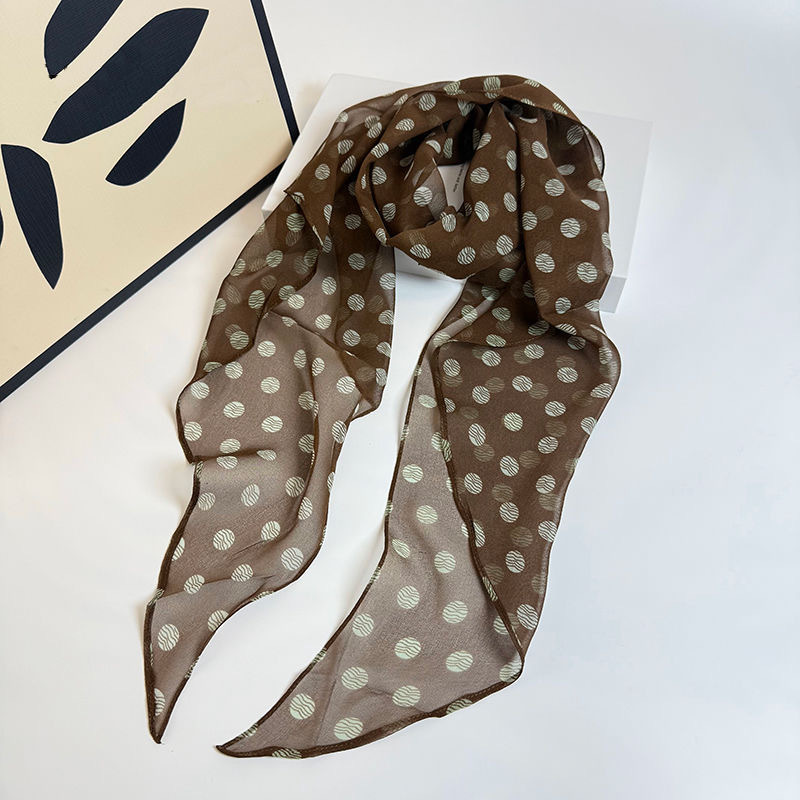 • 브라운 그린 도트 실크 스카프 약 180cm