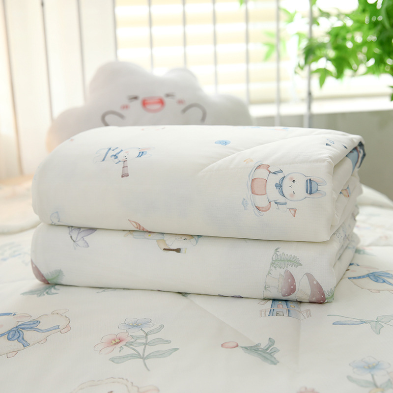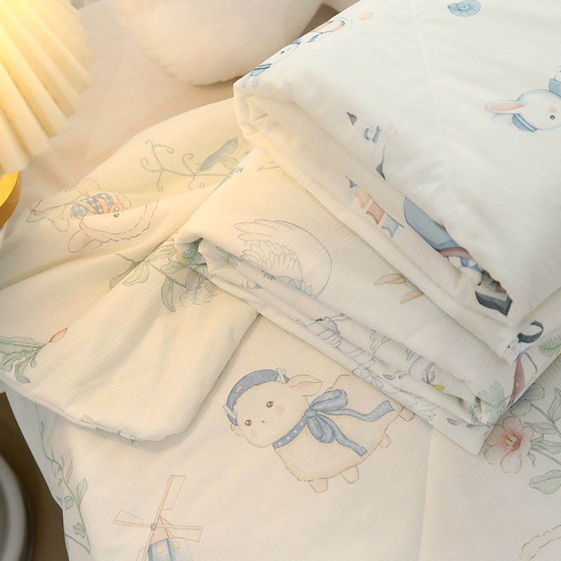 시원한 실크 여름 이불 아이스크림 에어컨 이불 여름 어린이 유치원 얼음 실크 이불 싱글 세탁 가능한 여름 이불