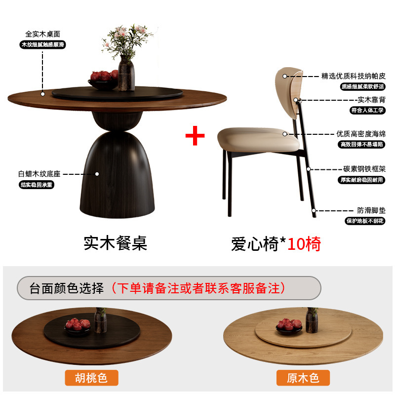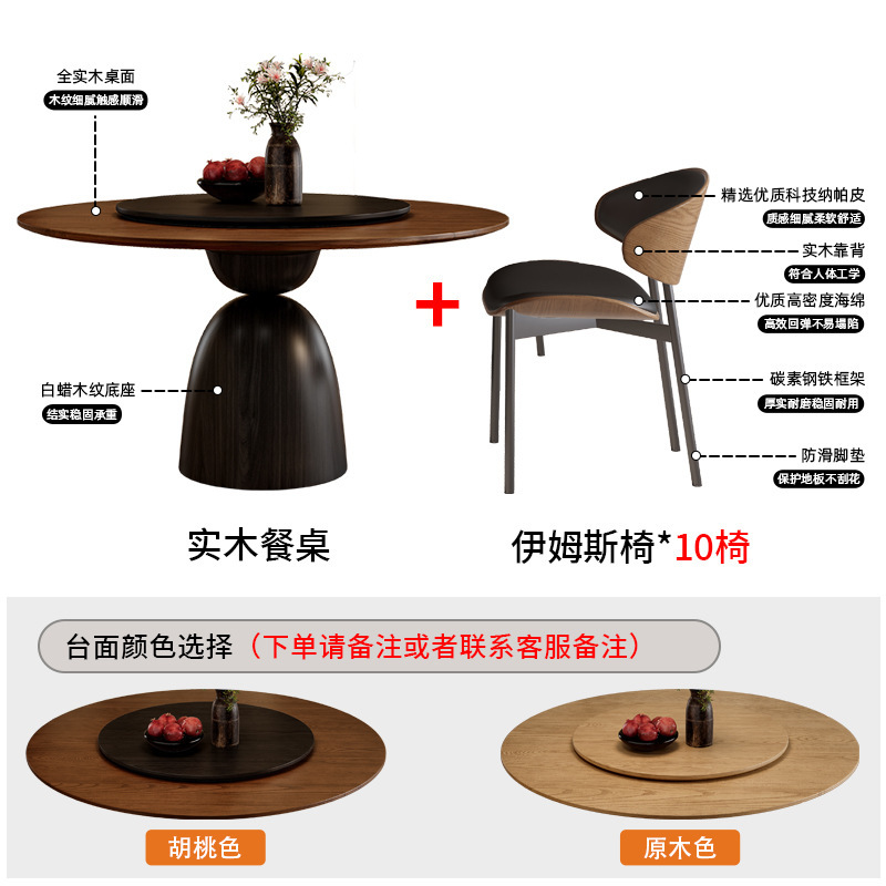 • 레트로 원목 원형 테이블 + Ganoderma lucidum 의자*10