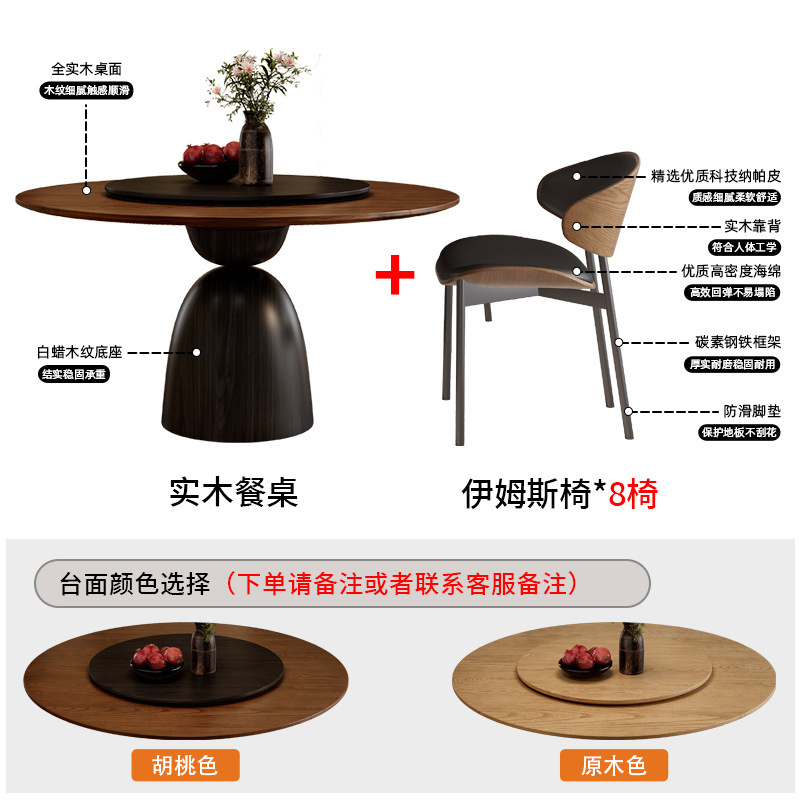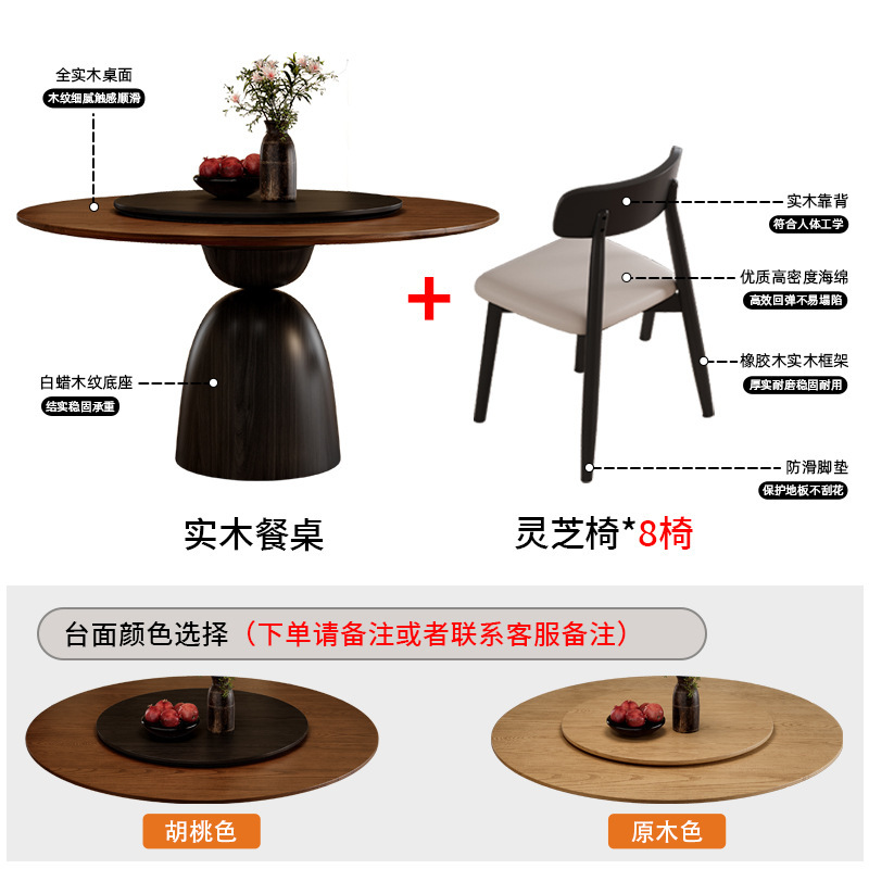 • 레트로 원목 원형 테이블 + Ganoderma lucidum 의자*8