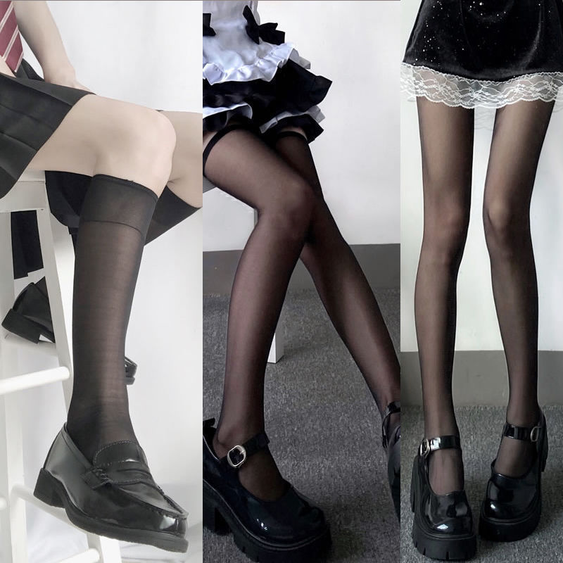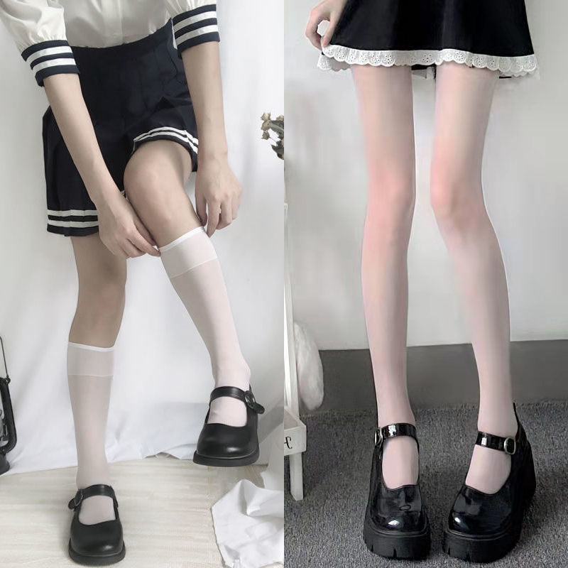 화이트 실크 화이트 실크 스타킹 여성 loli jk 섹시한 종아리 양말 여름과 가을 얇은 안티 훅 실크 무릎 높이 허벅지 스타킹 팬티 스타킹스토어 가기