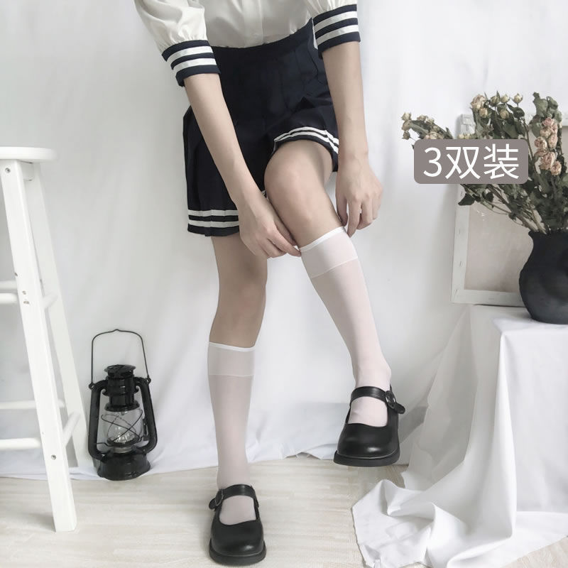 화이트 실크 화이트 실크 스타킹 여성 loli jk 섹시한 종아리 양말 여름과 가을 얇은 안티 훅 실크 무릎 높이 허벅지 스타킹 팬티 스타킹