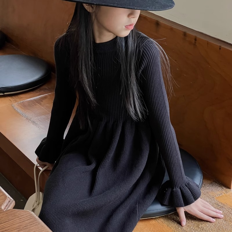 소녀 유행 한국 스웨터 2024 새로운 어린이 스웨터 세련된 원피스 높은 탄성 울 원피스스토어 가기