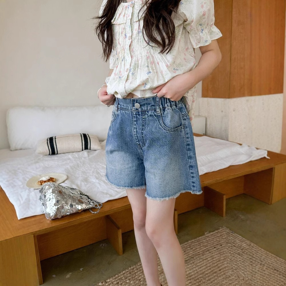 소녀 여름 청바지 어린이 서양식 찢어진 반바지 2025 새로운 대형 어린이 핫 캐주얼 바지스토어 가기