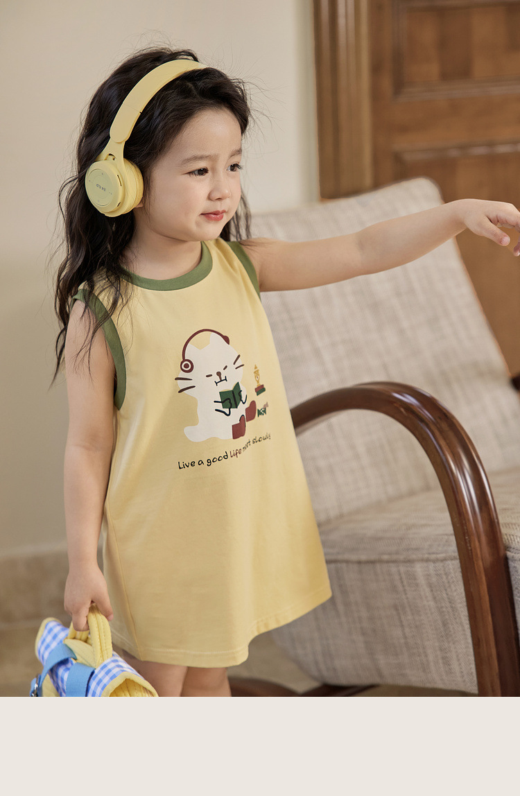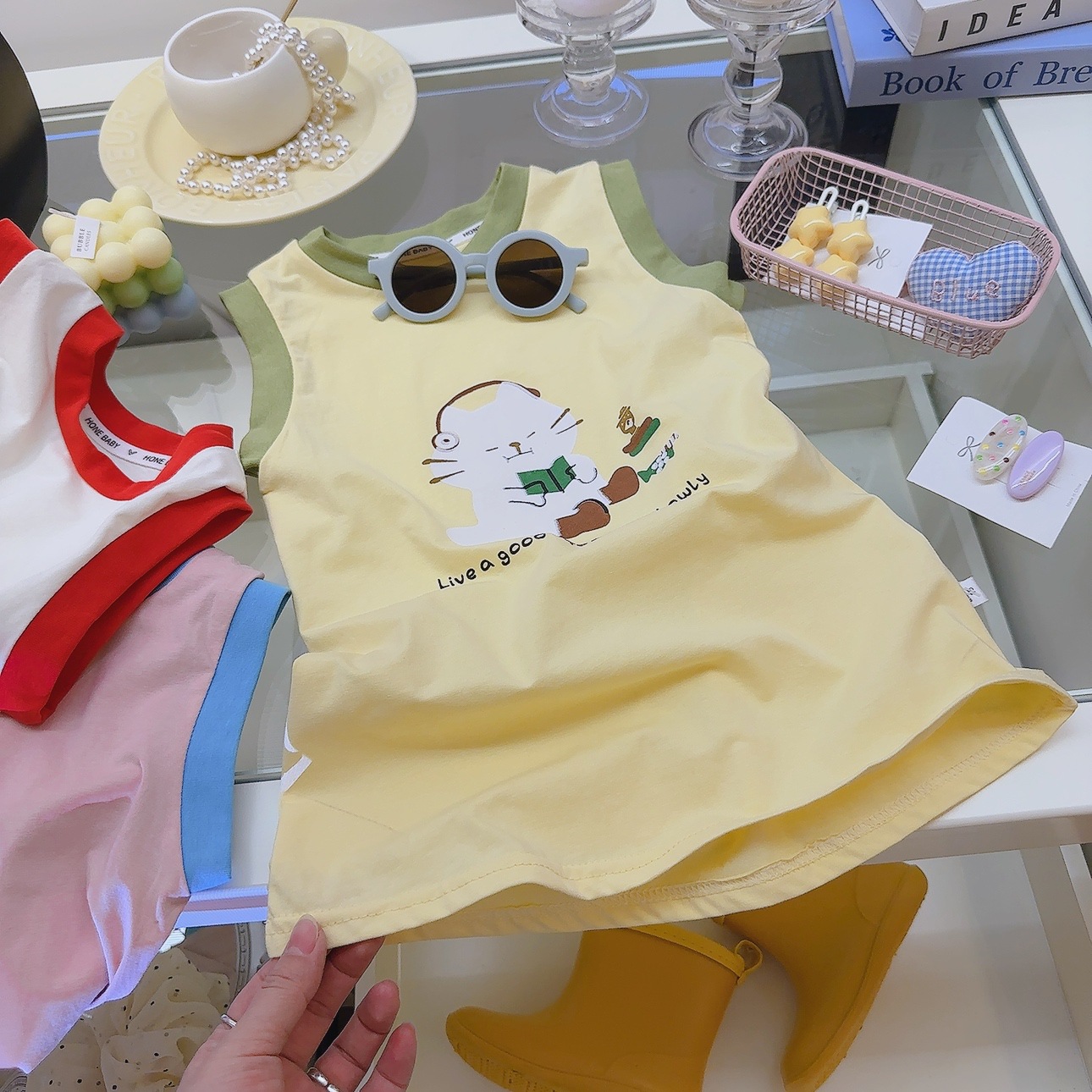 아기 조끼 치마 여성의 긴 잠 못 이루는 치마 2025 여름 아기 멋진 얼음 도자기 면화 원피스 머리카락 세대스토어 가기