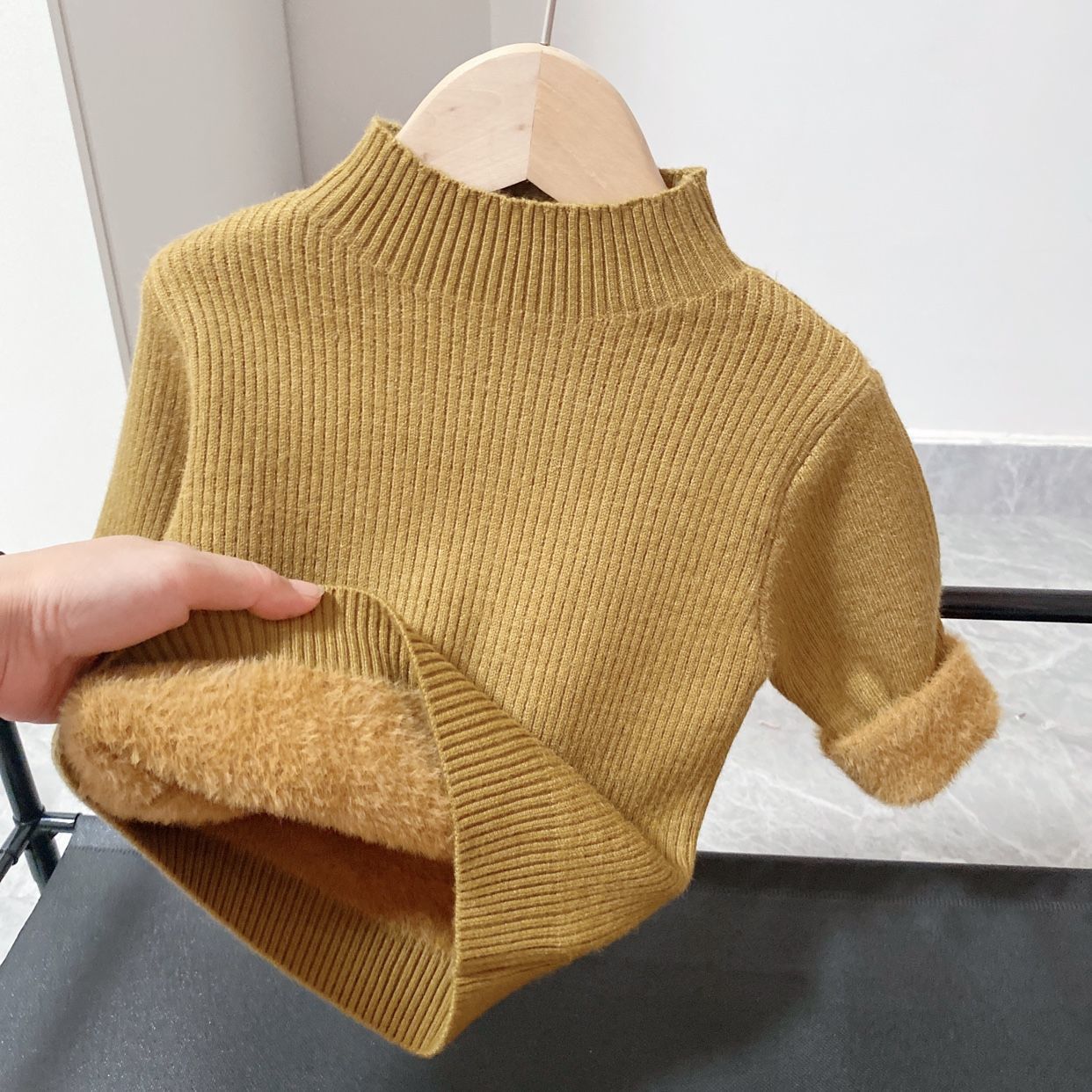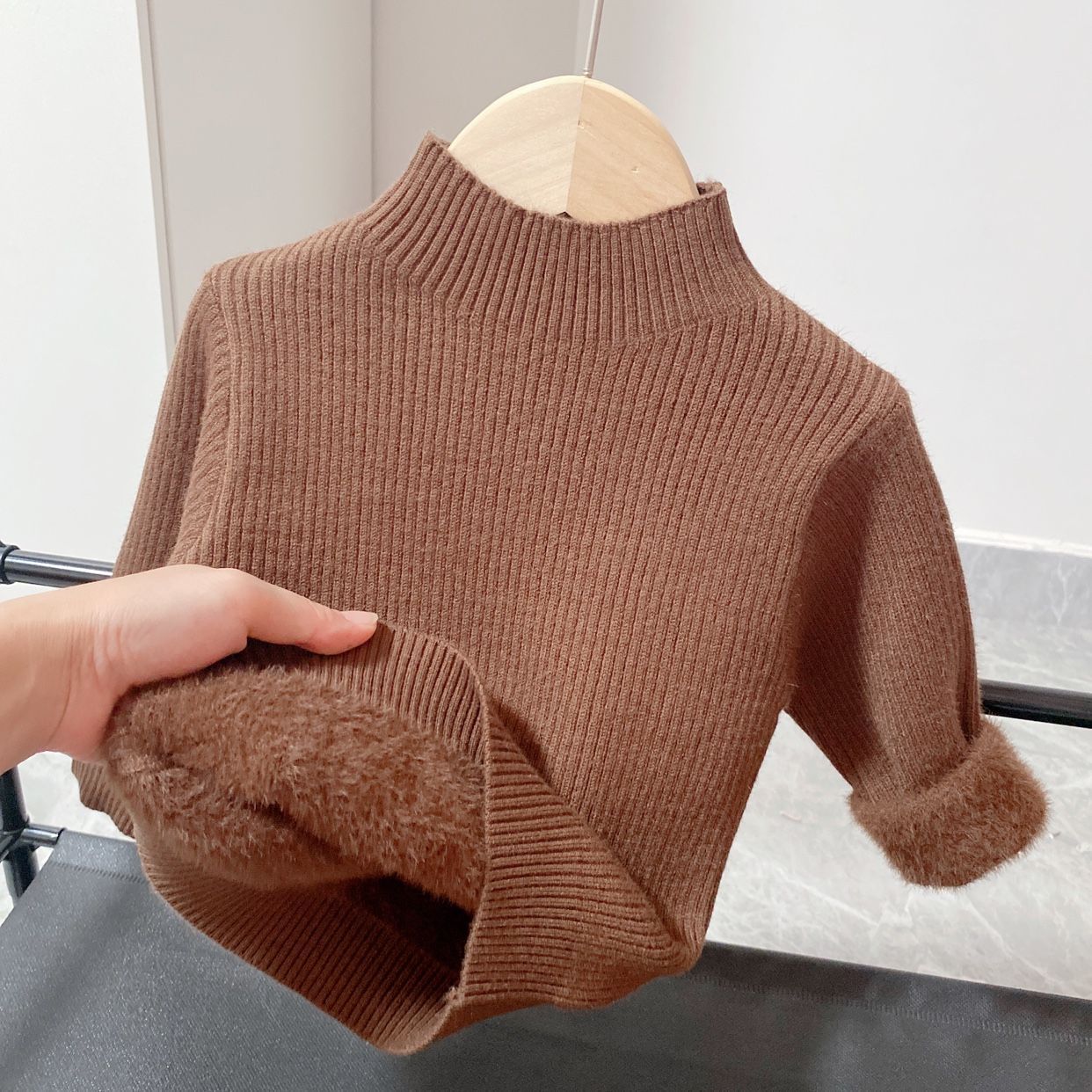 [재고] 소년 소녀 반 터틀넥 스웨터 원피스 벨벳베이스 셔츠 어린이 탄성 셔츠 새로운 따뜻한 가을과 겨울스토어 가기