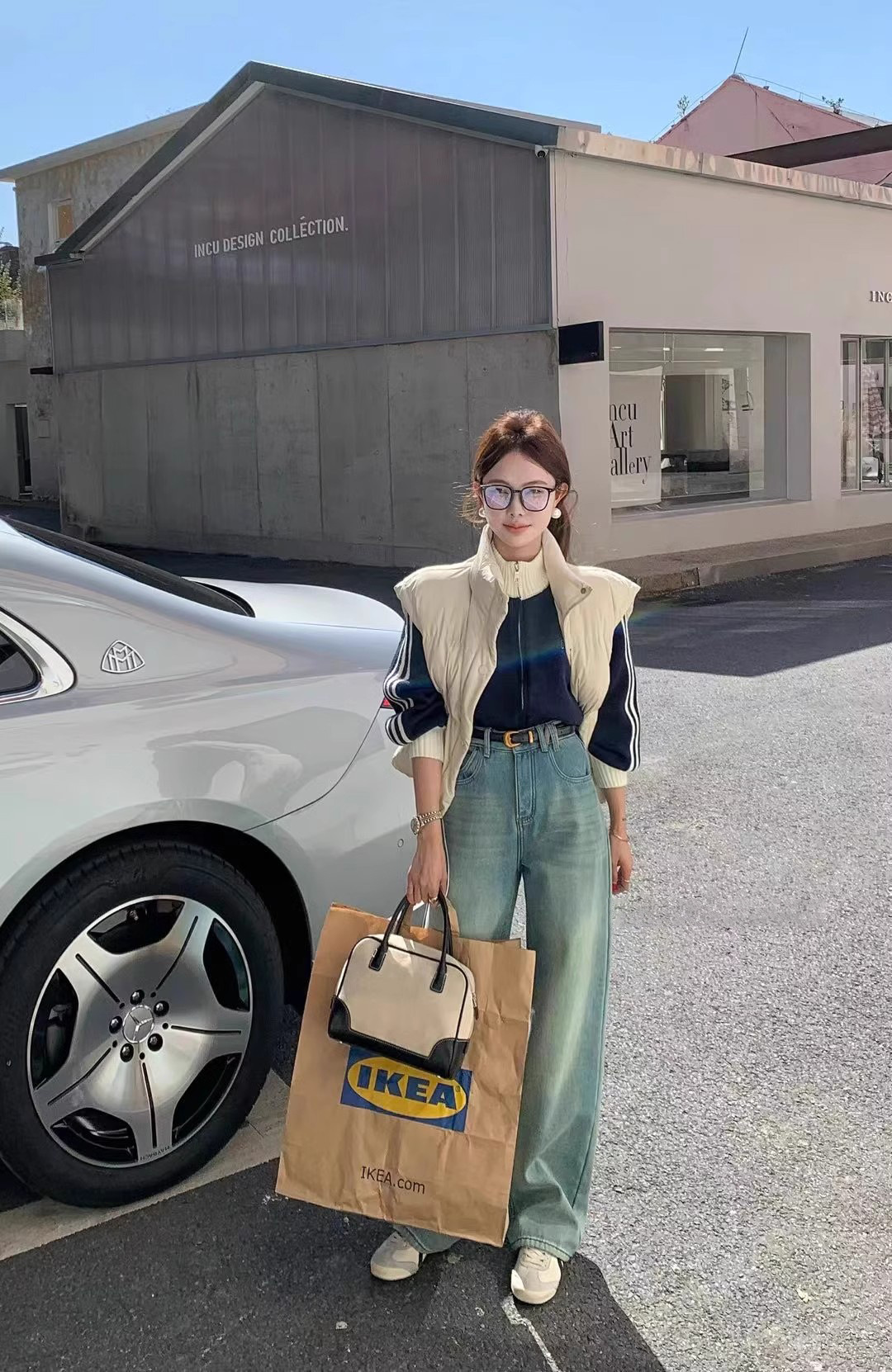 밝은 색 스트레치 스트레이트 청바지 여성용 봄 2024 새로운 한국 스타일 간단한 패션 느슨한 넓은 다리 바지스토어 가기