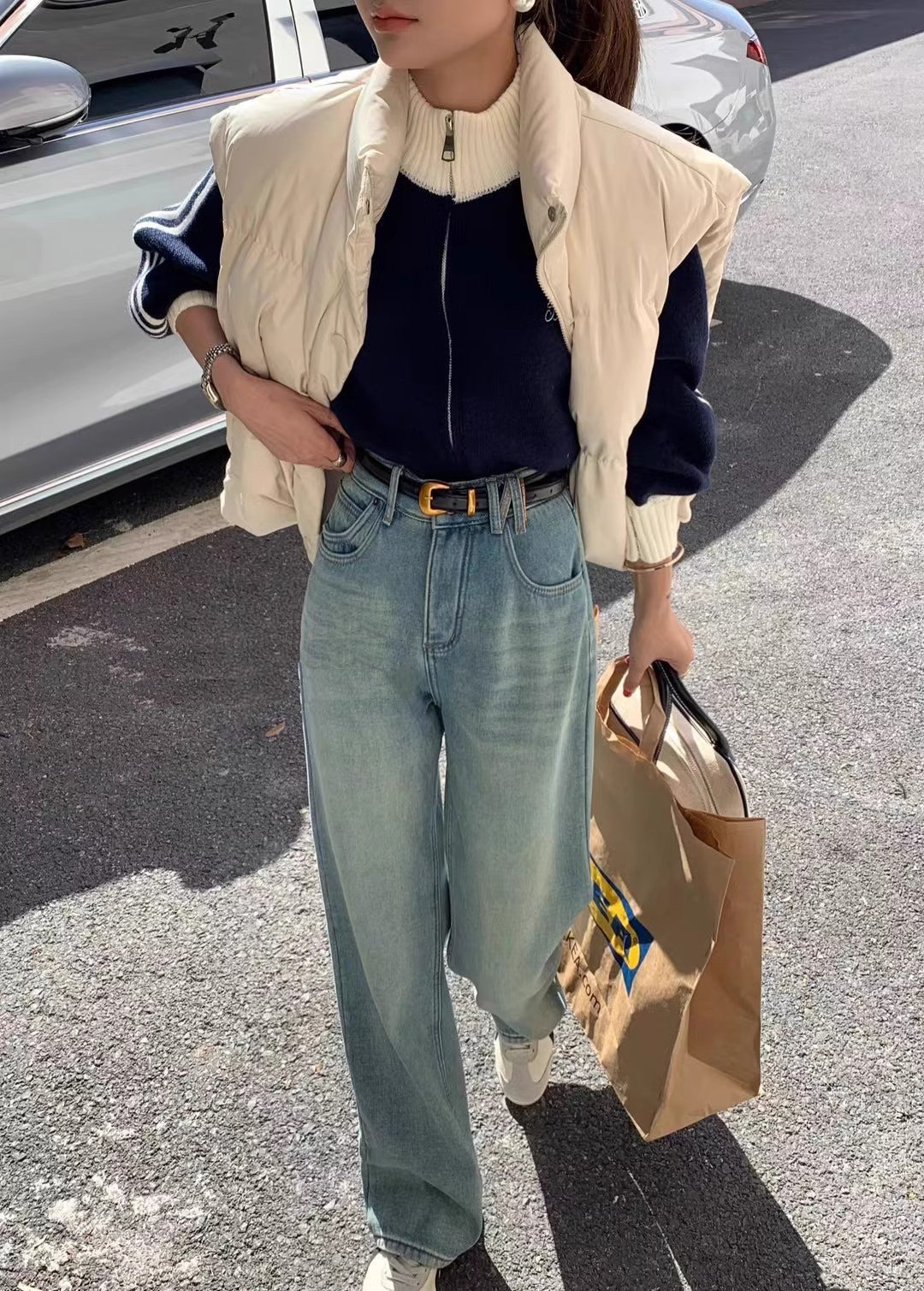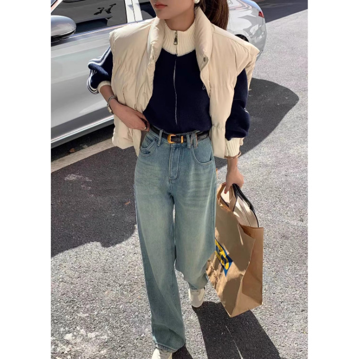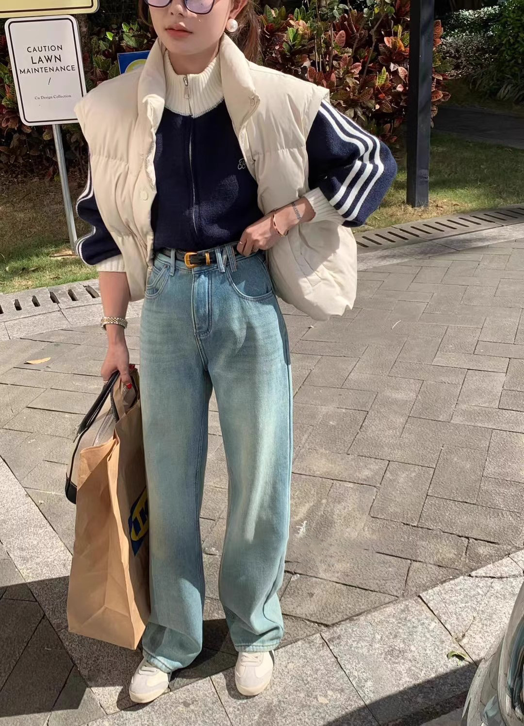 밝은 색 스트레치 스트레이트 청바지 여성용 봄 2024 새로운 한국 스타일 간단한 패션 느슨한 넓은 다리 바지