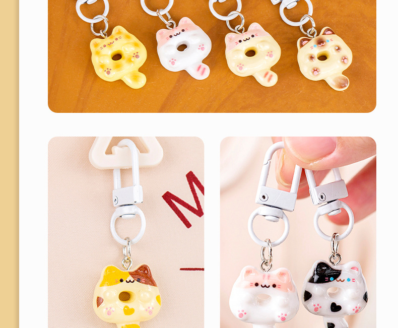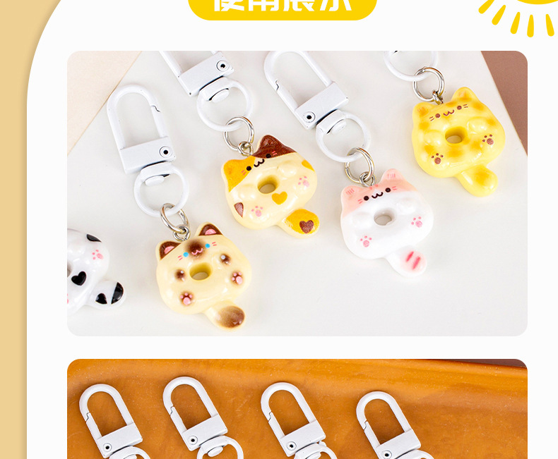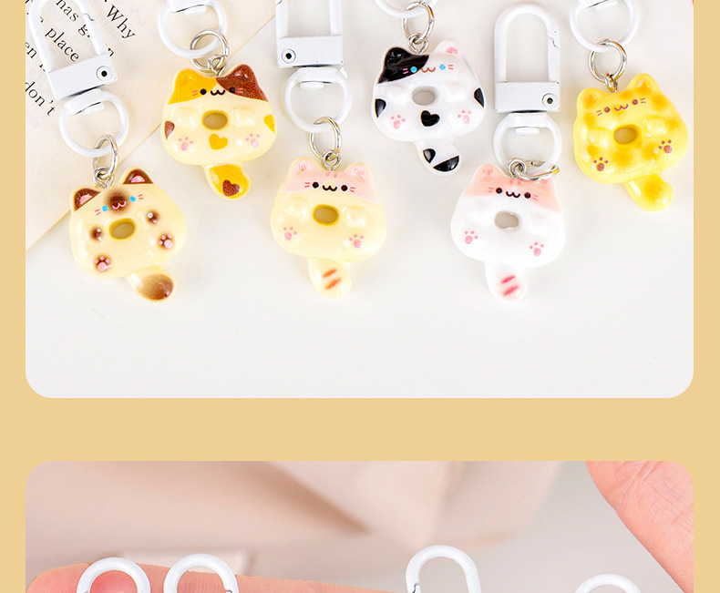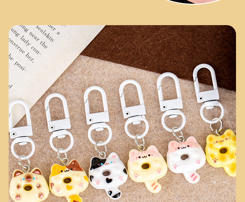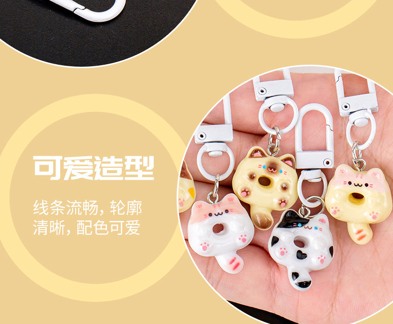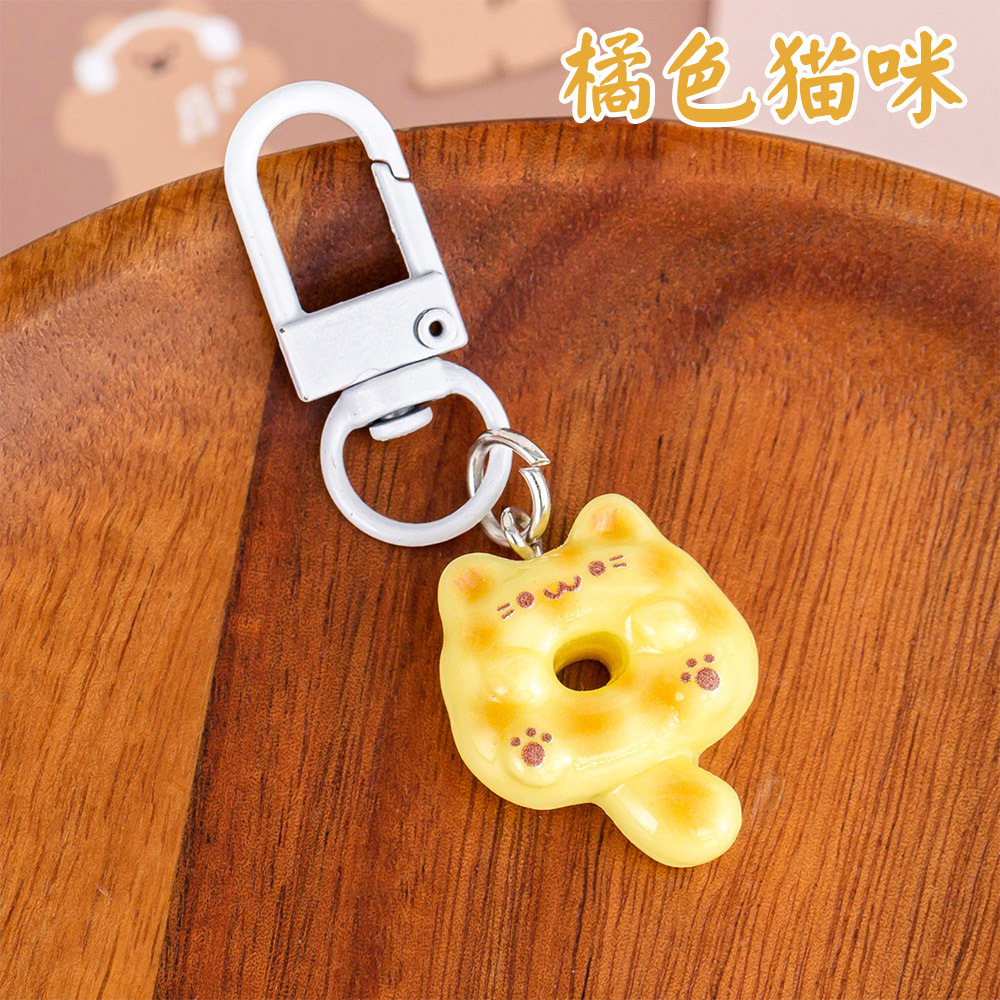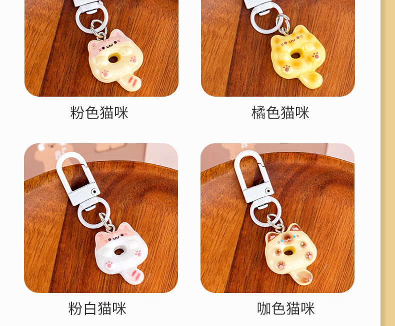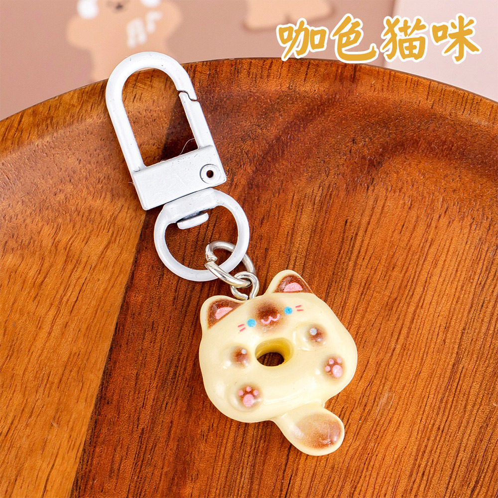 귀여운 고양이 도넛 키 체인 시뮬레이션 미니 만화 새끼 고양이 음식 놀이 헤드셋 가방 펜던트스토어 가기