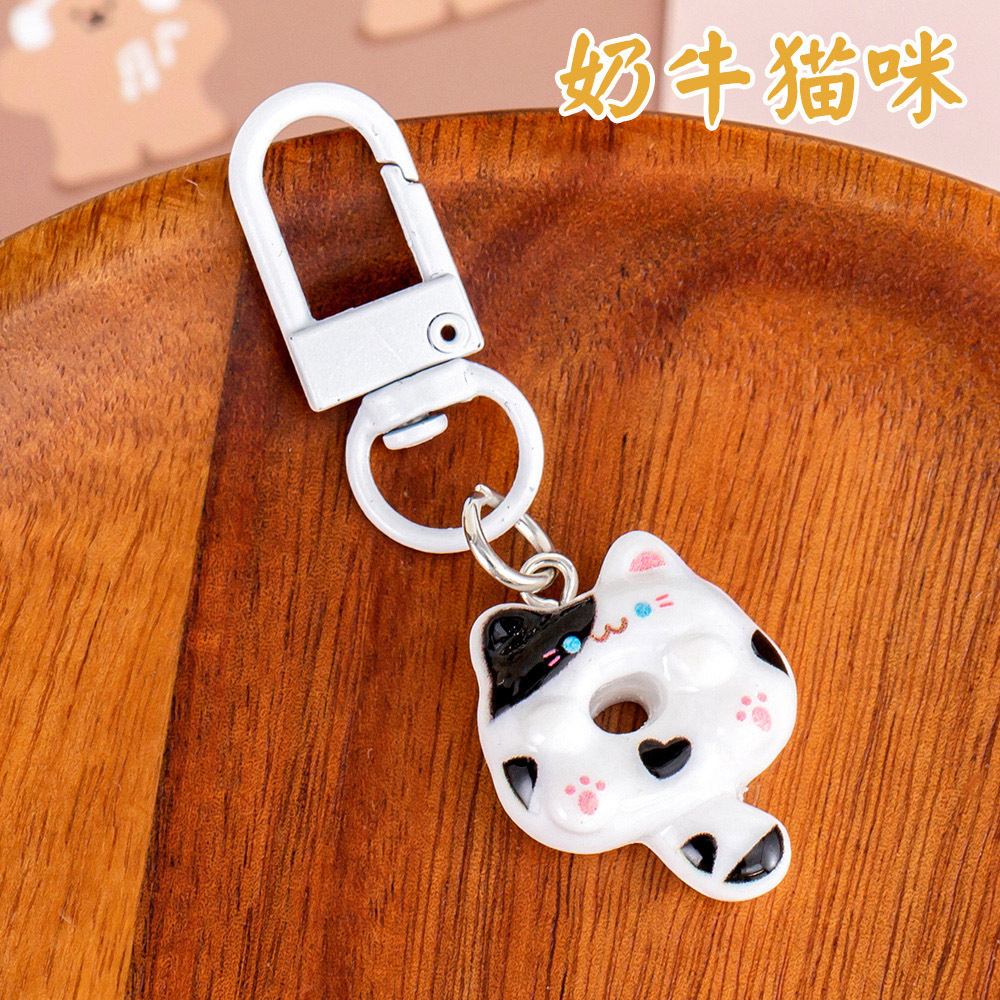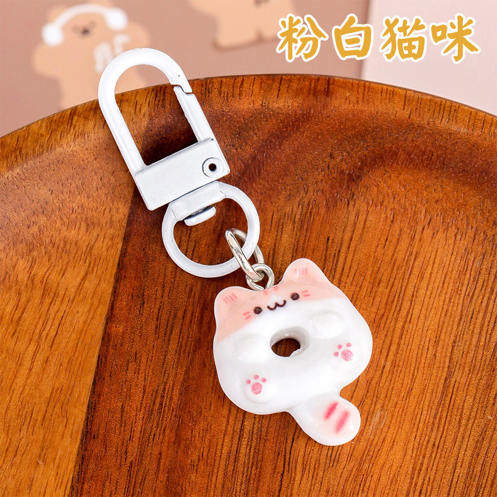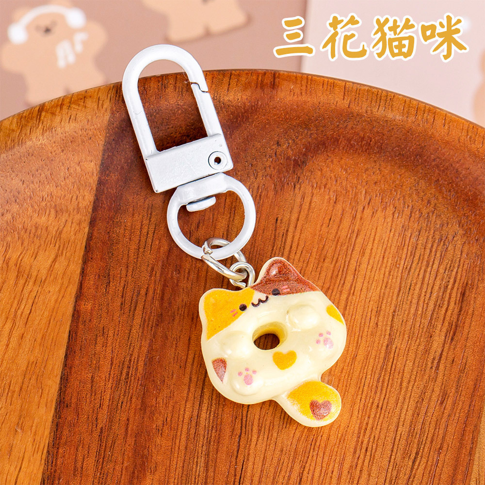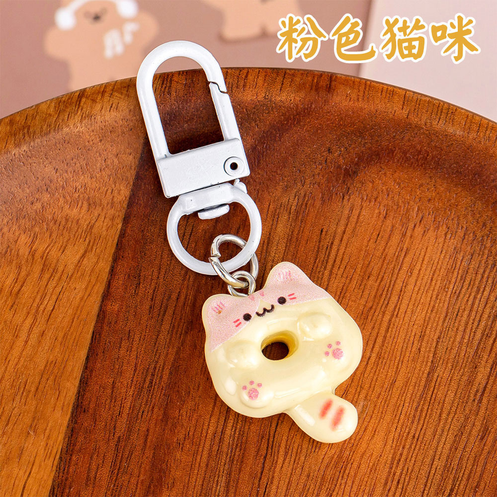 귀여운 고양이 도넛 키 체인 시뮬레이션 미니 만화 새끼 고양이 음식 놀이 헤드셋 가방 펜던트