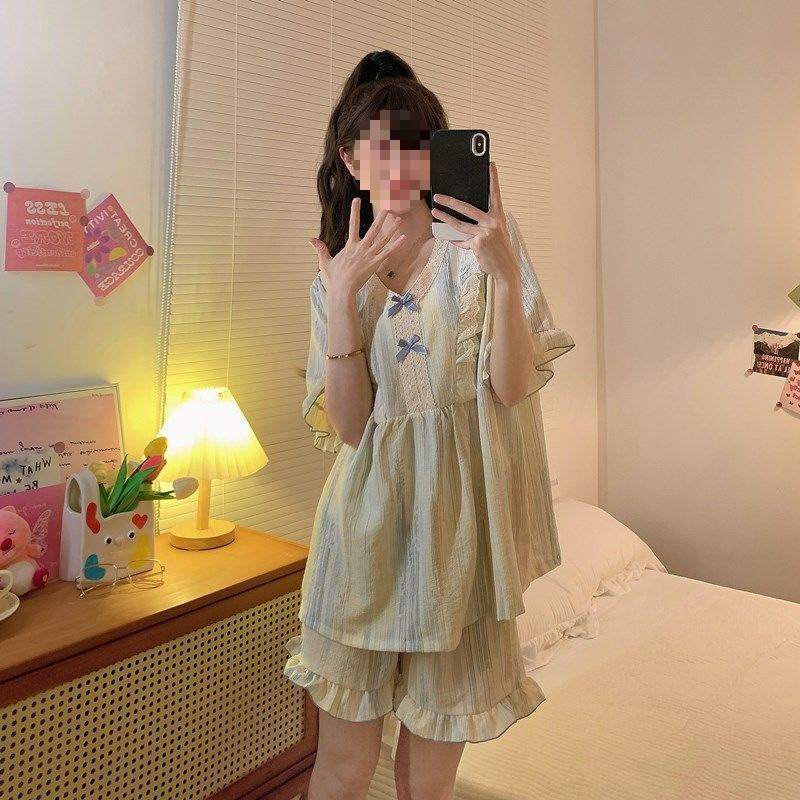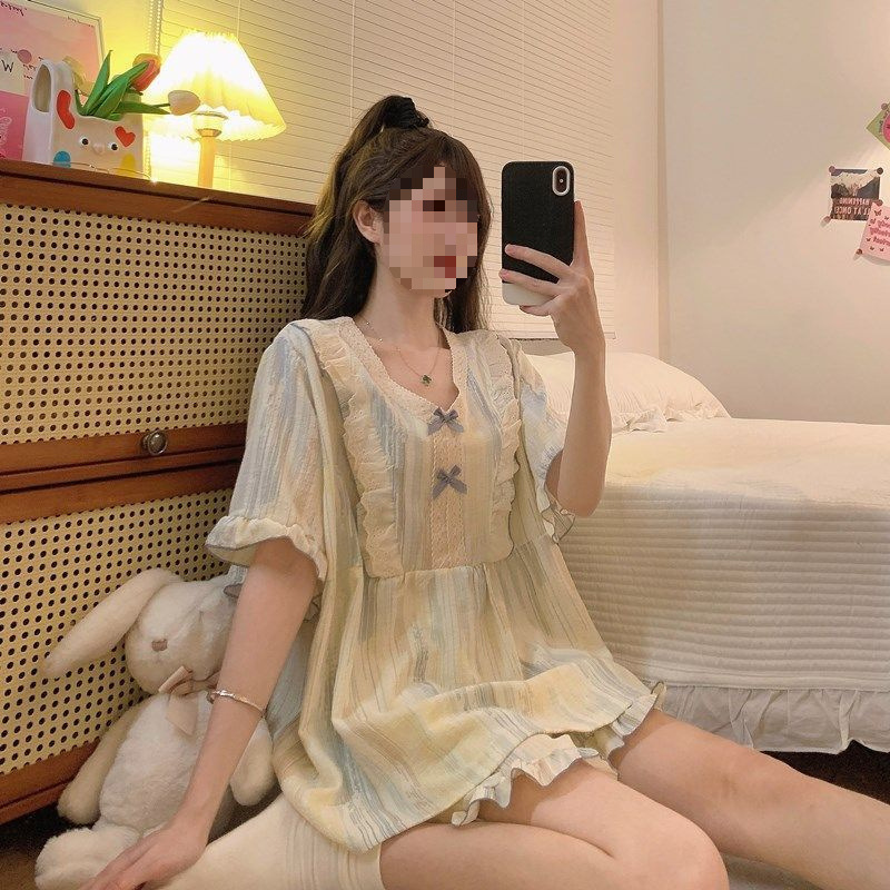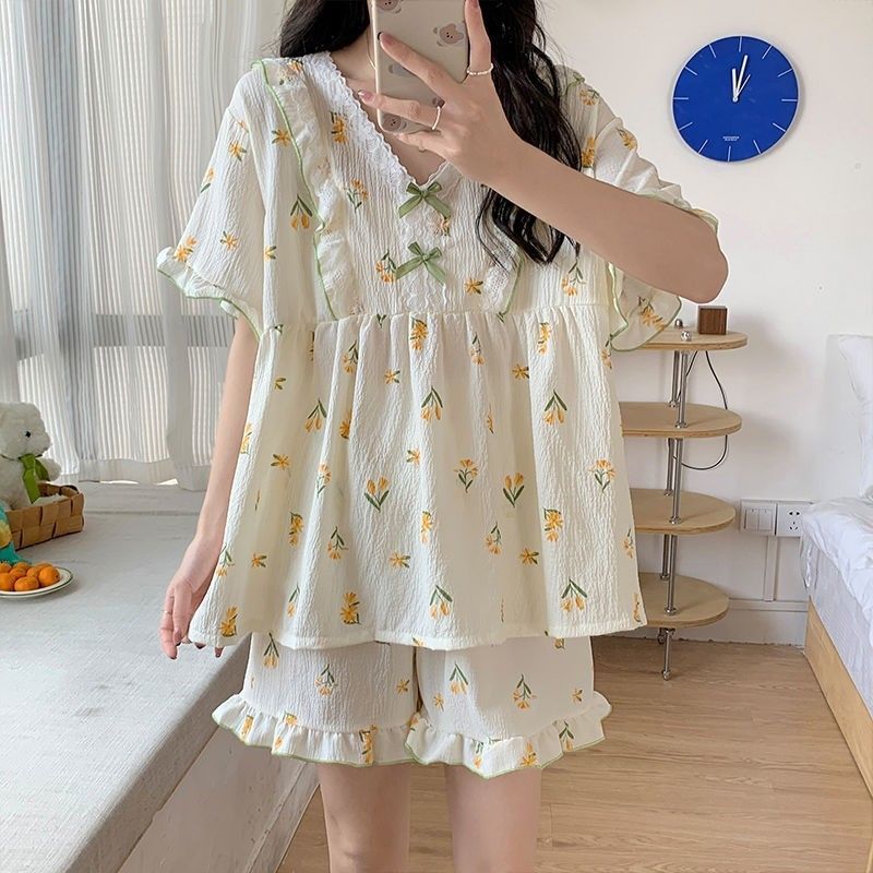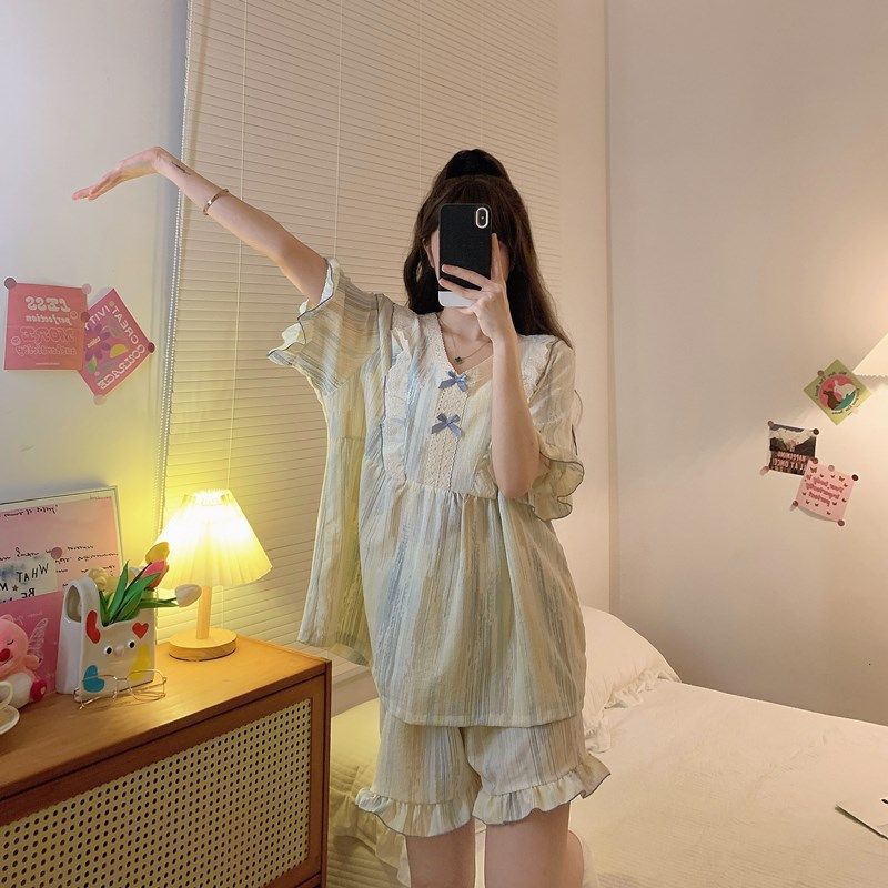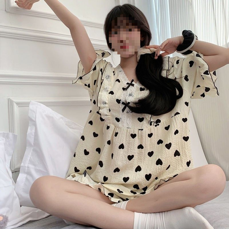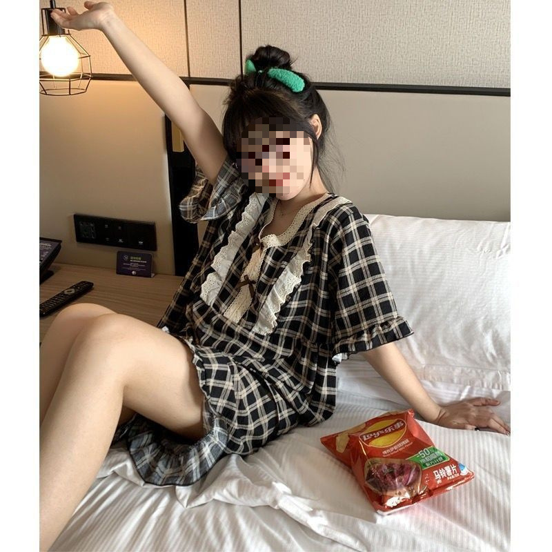 150kg 뚱뚱한 mm 플러스 사이즈 잠옷 여성 여름 얇은 ins 라이트 루즈 반팔 반바지 홈웨어 투피스 세트