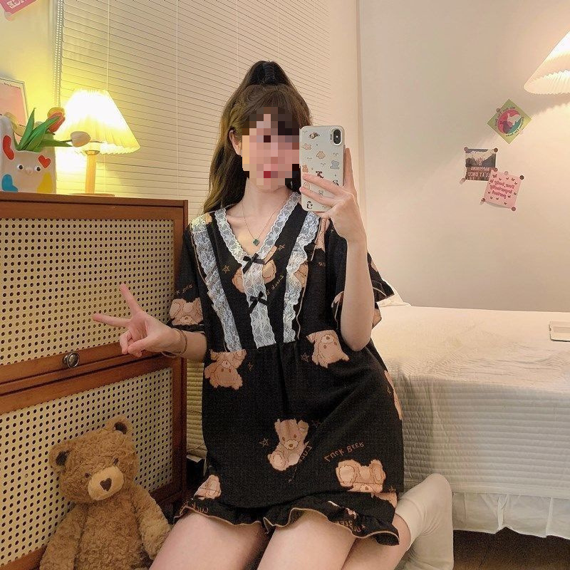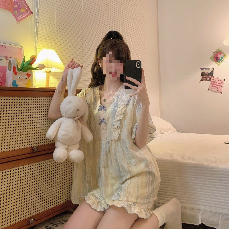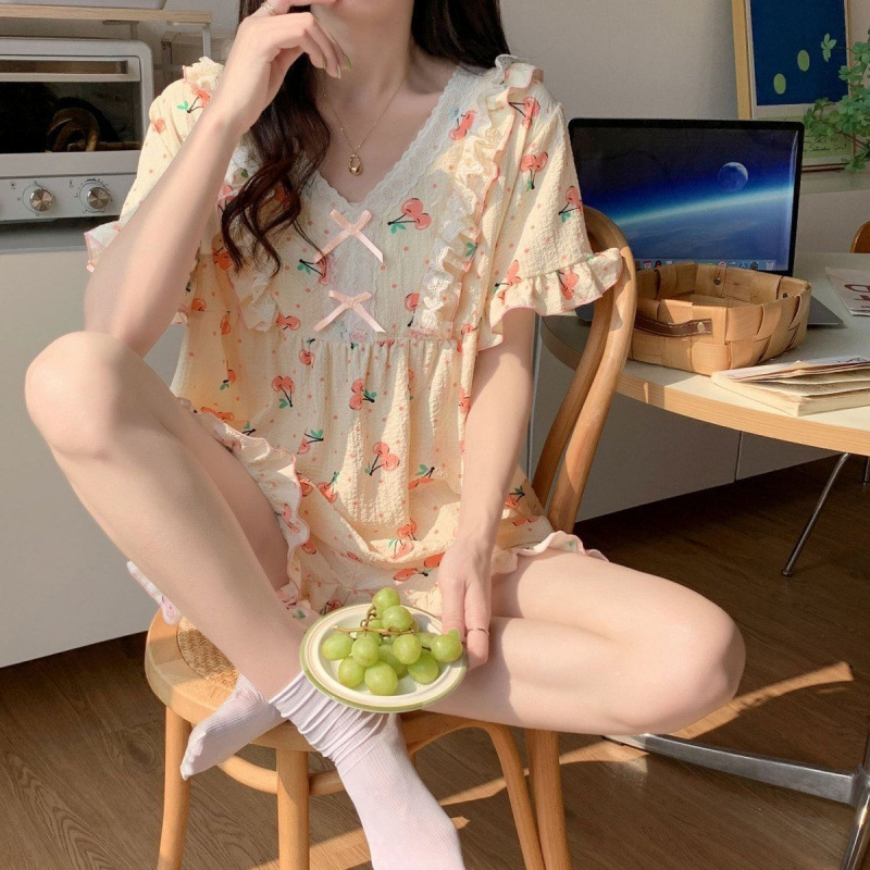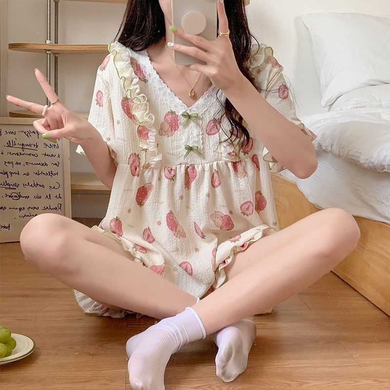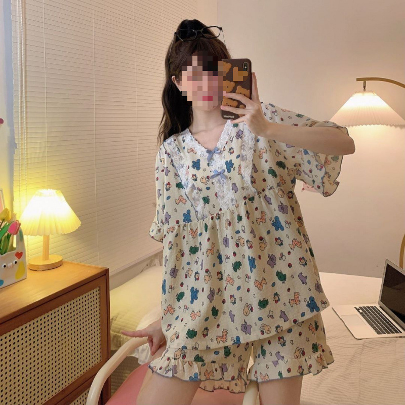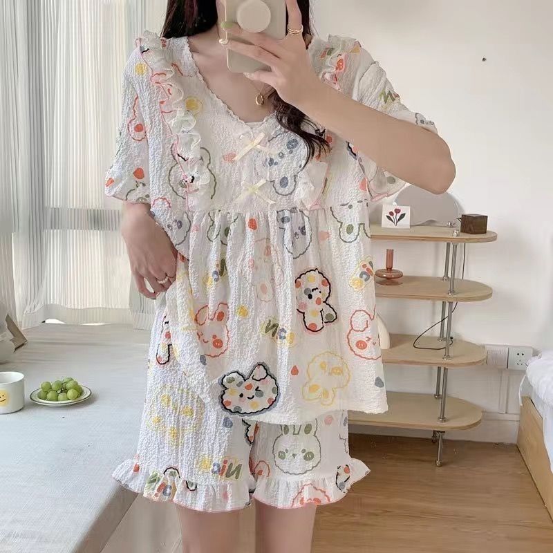 150kg 뚱뚱한 mm 플러스 사이즈 잠옷 여성 여름 얇은 ins 라이트 루즈 반팔 반바지 홈웨어 투피스 세트