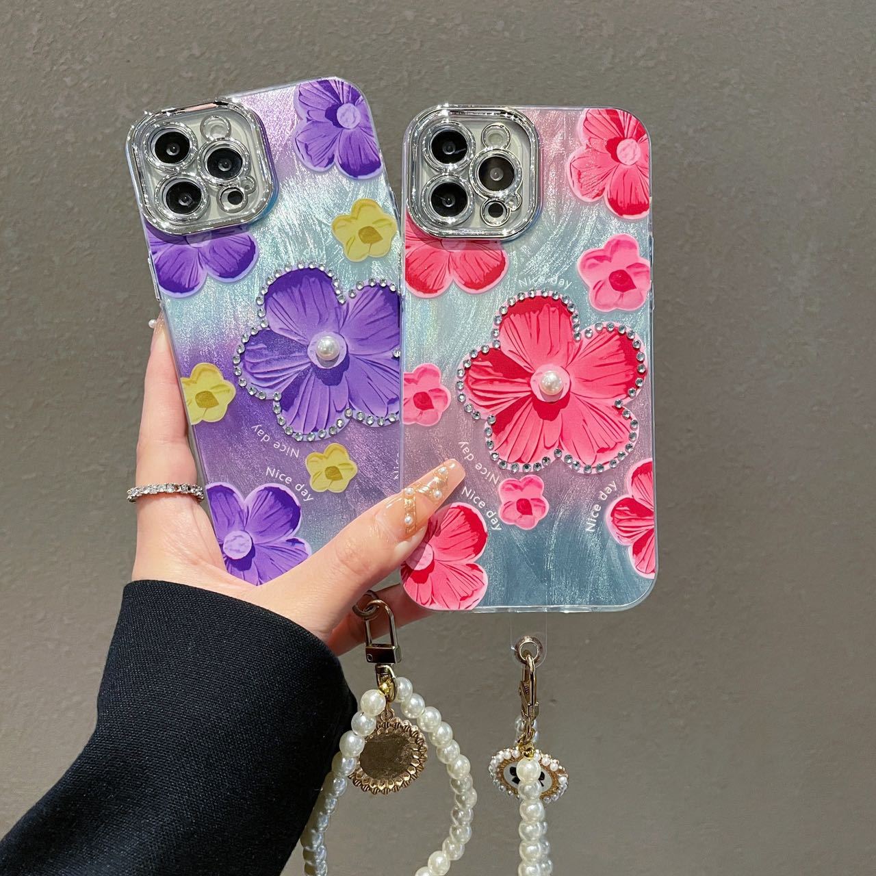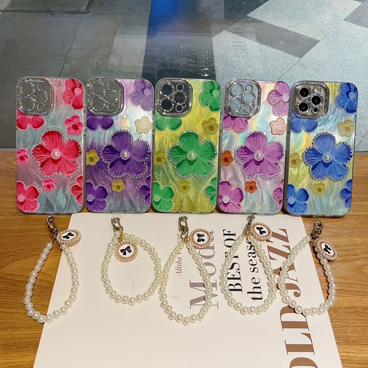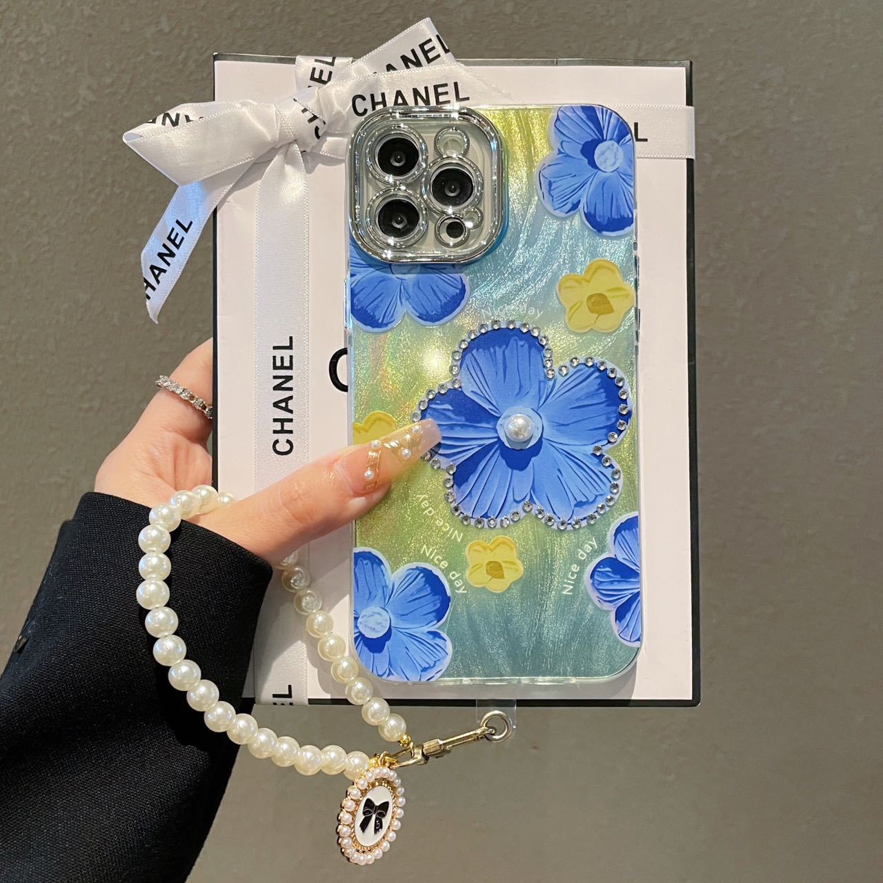 iphone15promax 휴대폰 케이스에 적합 apple 14 블루 라이트 유화 꽃 플래시 다이아몬드 13 렌즈 필름 12 세트 포함