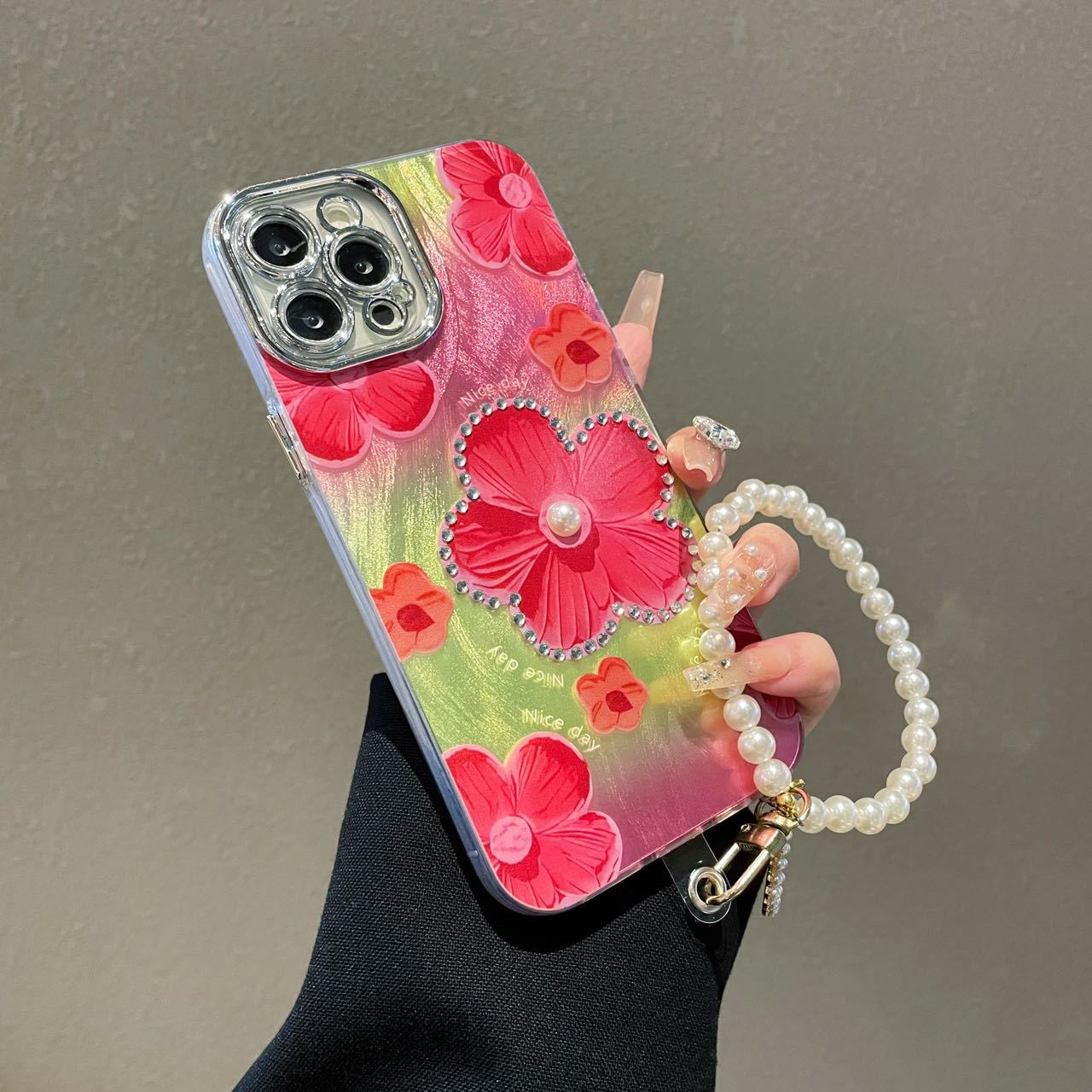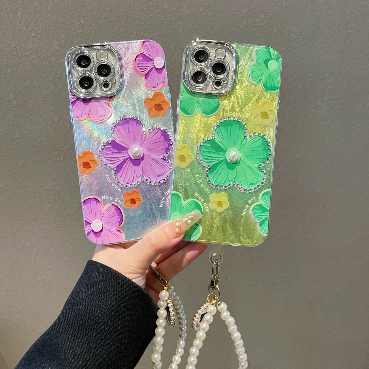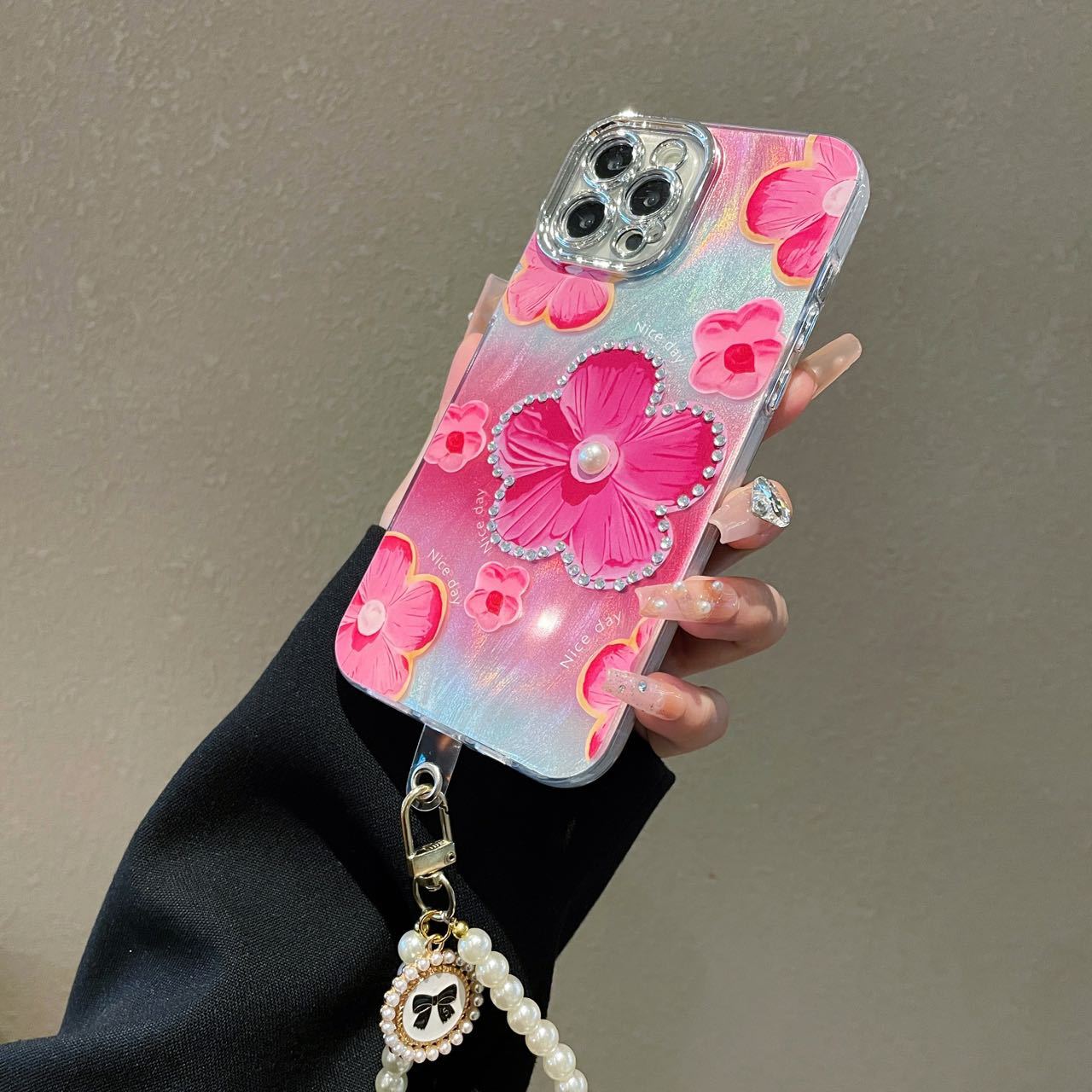 iphone15promax 휴대폰 케이스에 적합 apple 14 블루 라이트 유화 꽃 플래시 다이아몬드 13 렌즈 필름 12 세트 포함