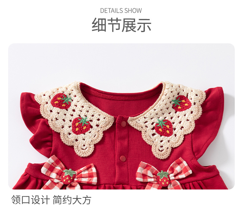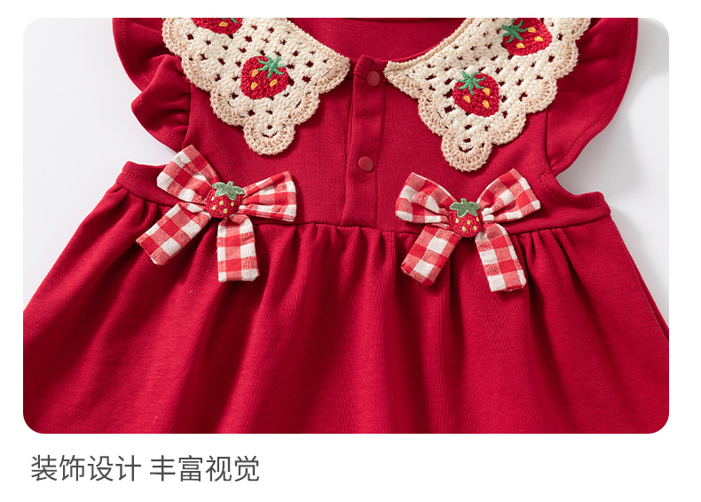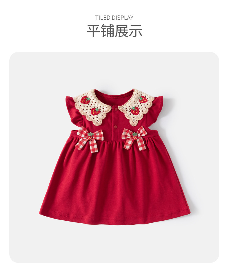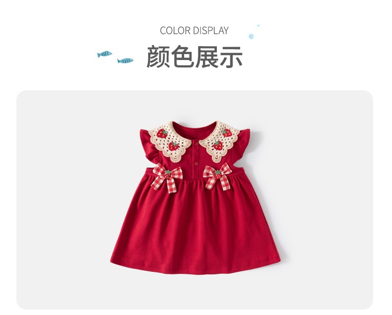 어린이 착용 2025 새로운 소녀 원피스 여름 아이 아기 소녀 활 딸기 인형 칼라 공주 치마