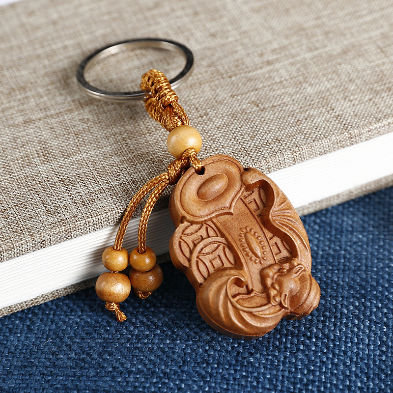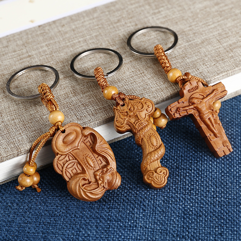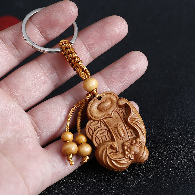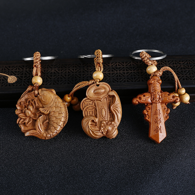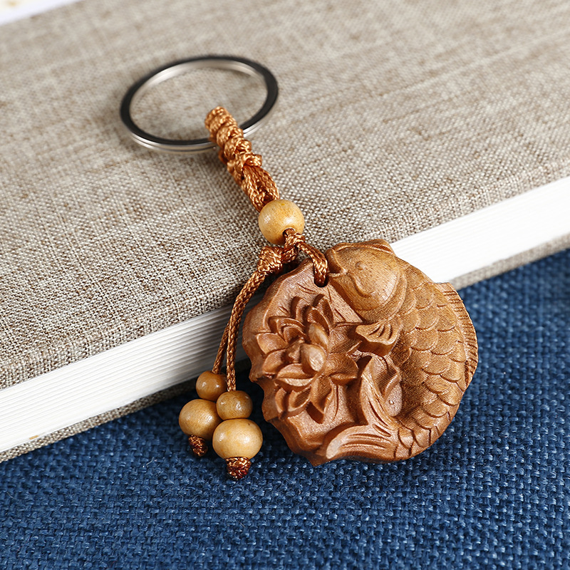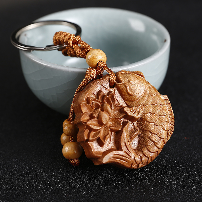 참피나무 열쇠고리 도매 브러시 피쉬 로터스 자동차 열쇠고리 펜던트 금상 열쇠고리 소형 상품스토어 가기