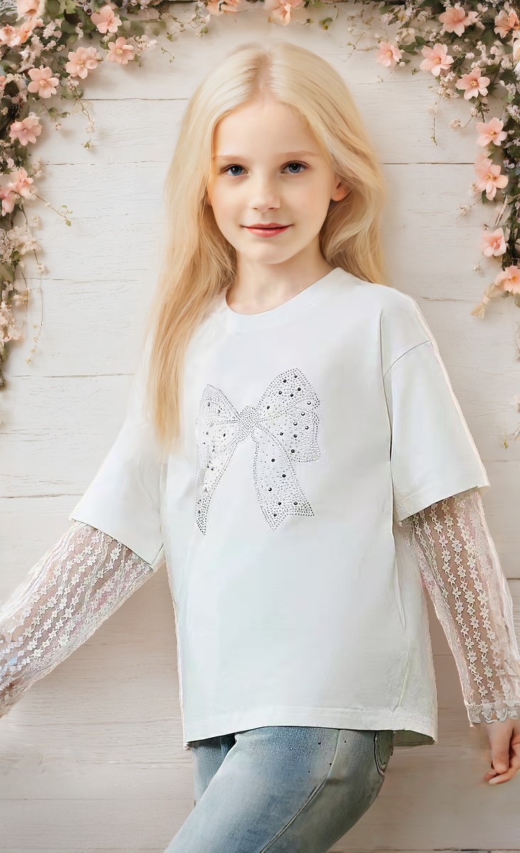 • 화이트 T [보타이 핫 다이아몬드 + 레이스 소매]